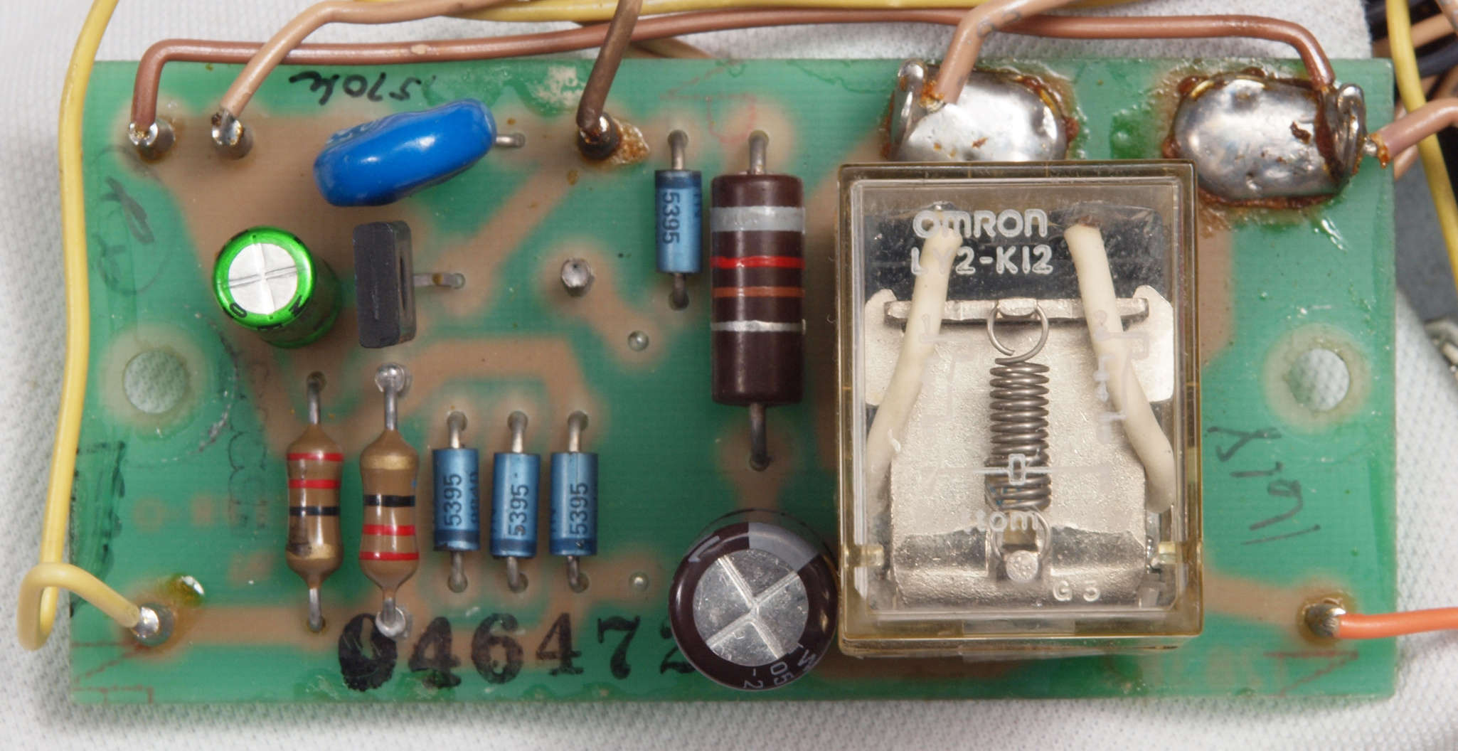 CA2. 修理後 電源投入リレー基板。 電解コンデンサー2個、リレー1個交換。