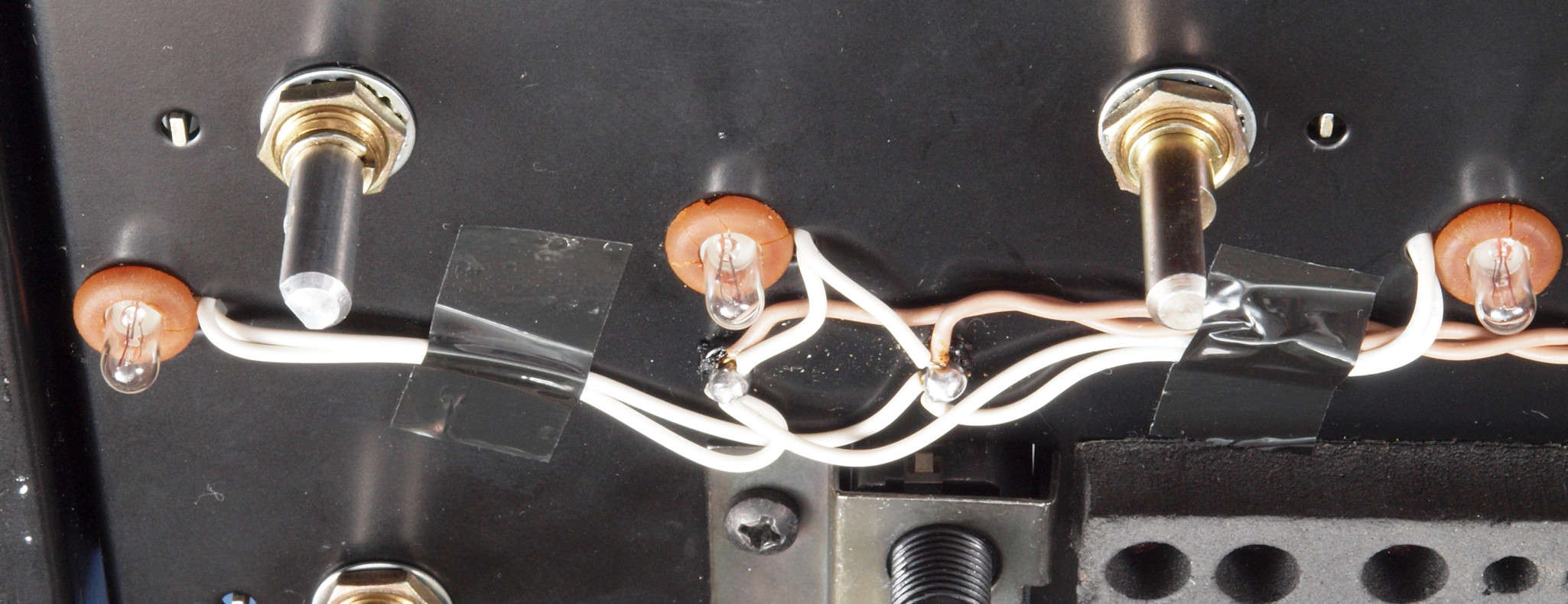 CB4. 修理中 前面パネルを取り修理中。 右側パネル表示ランプ、経年劣化で真っ黒。