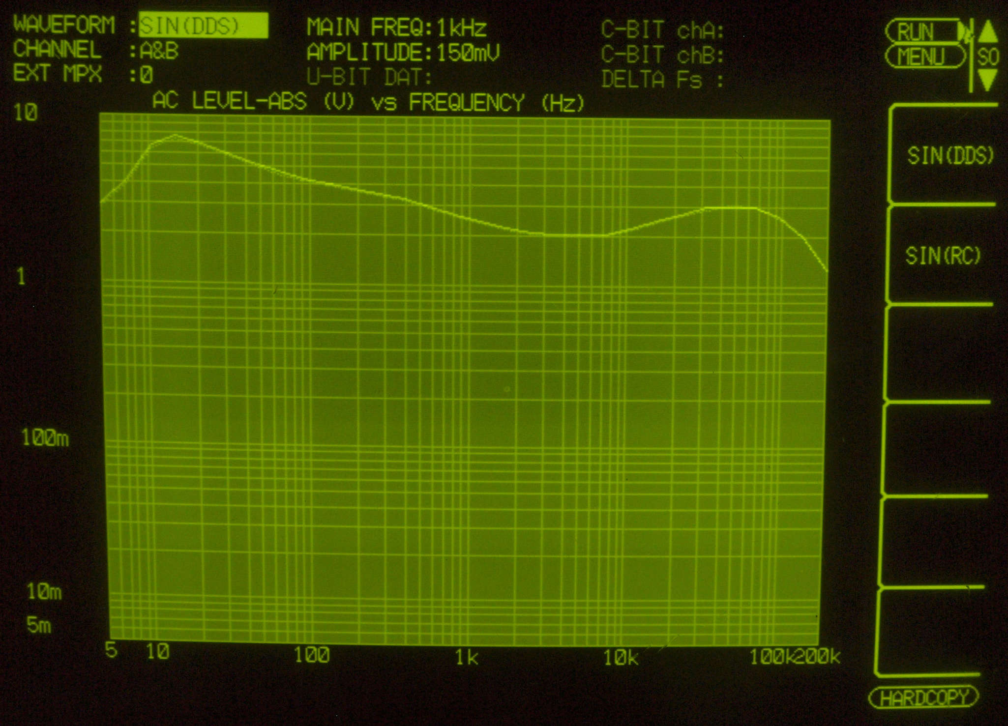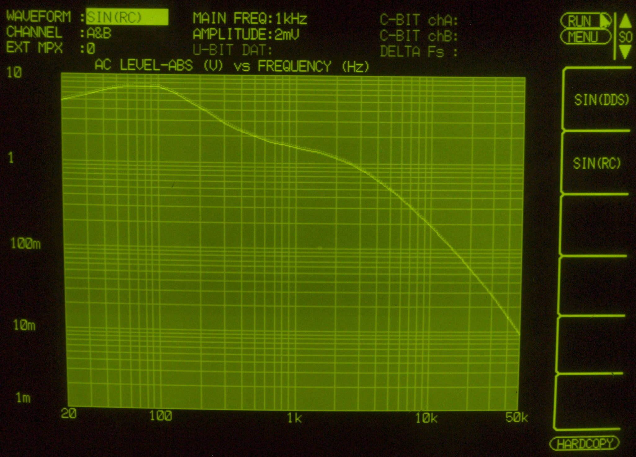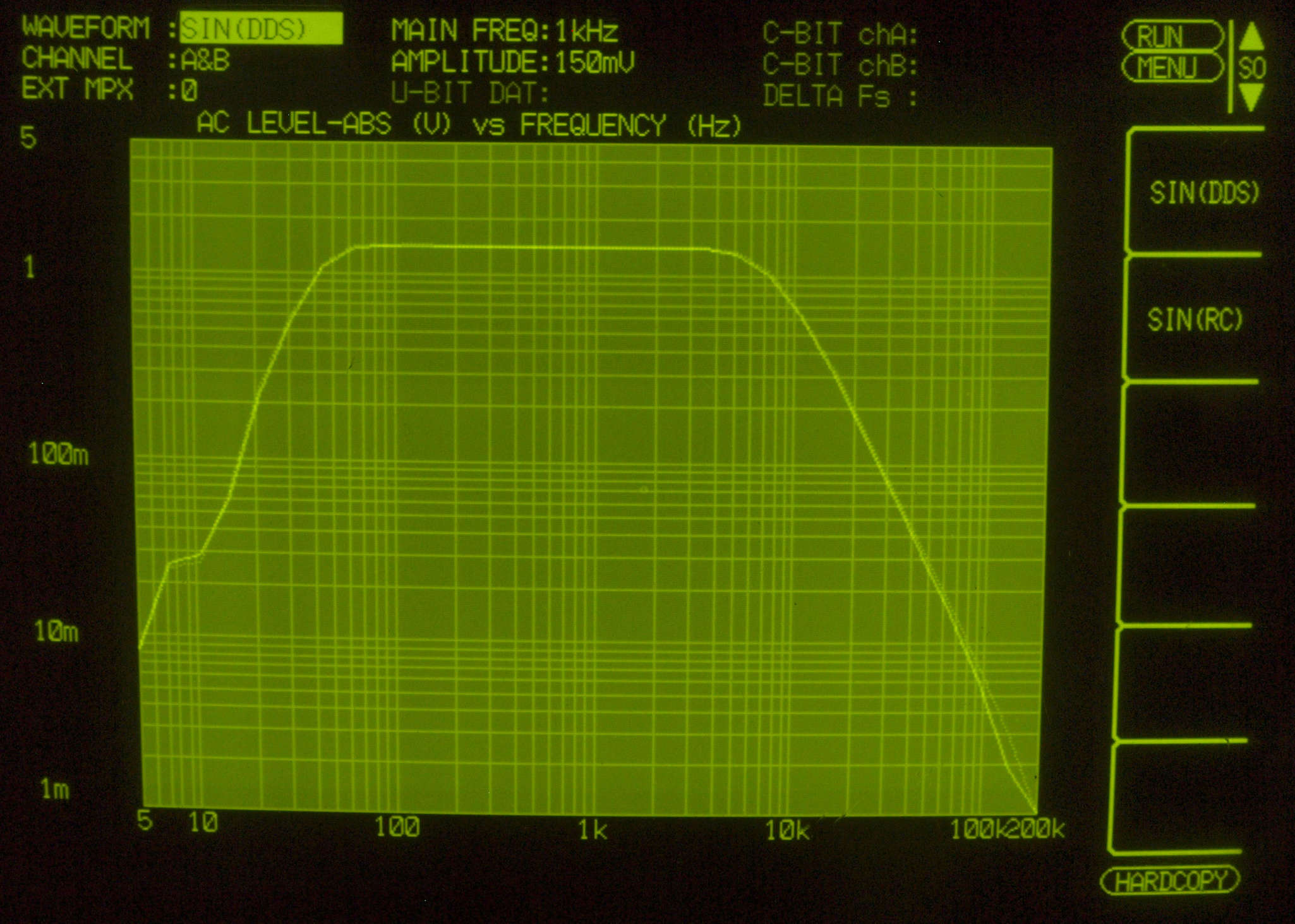 真空管AMPの組み合わせの為か、この下の周波数(30kHz)からフイルターが効いている。
