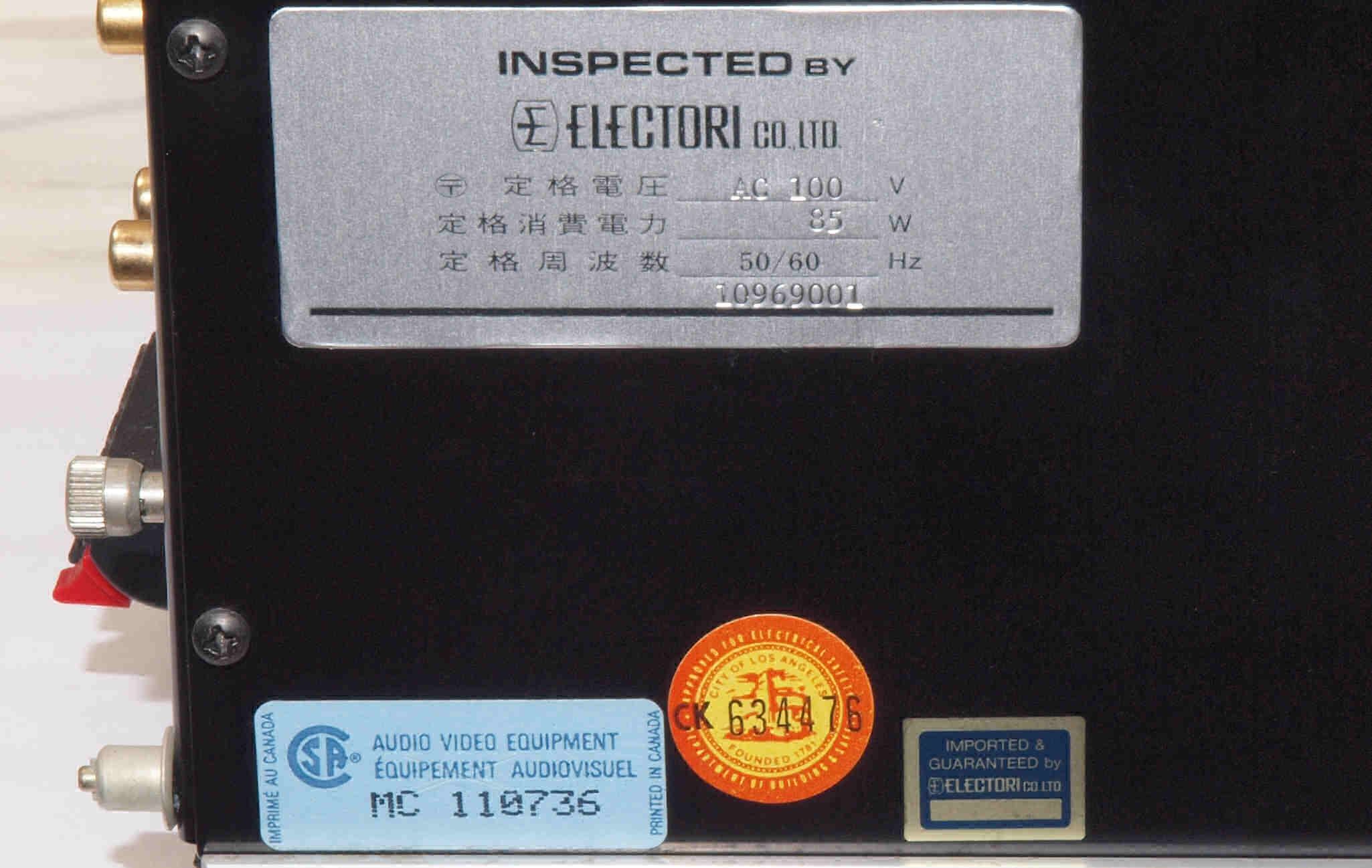 入力感度 Phono=2mV(2.5V出力時、IHF0.4mV)
