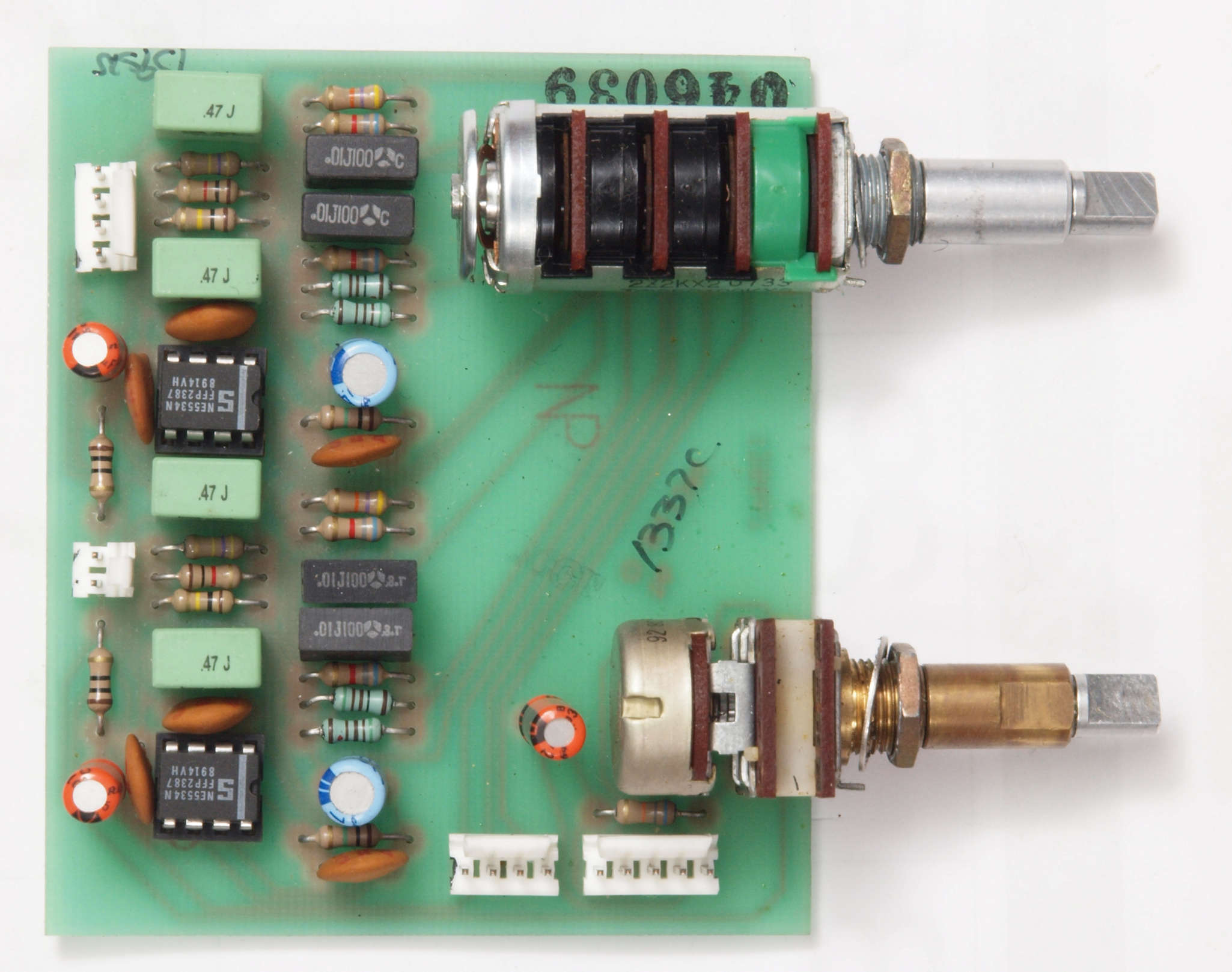C62. 修理後 Loudness & Balance基板。 電解コンデンサー5個交換。