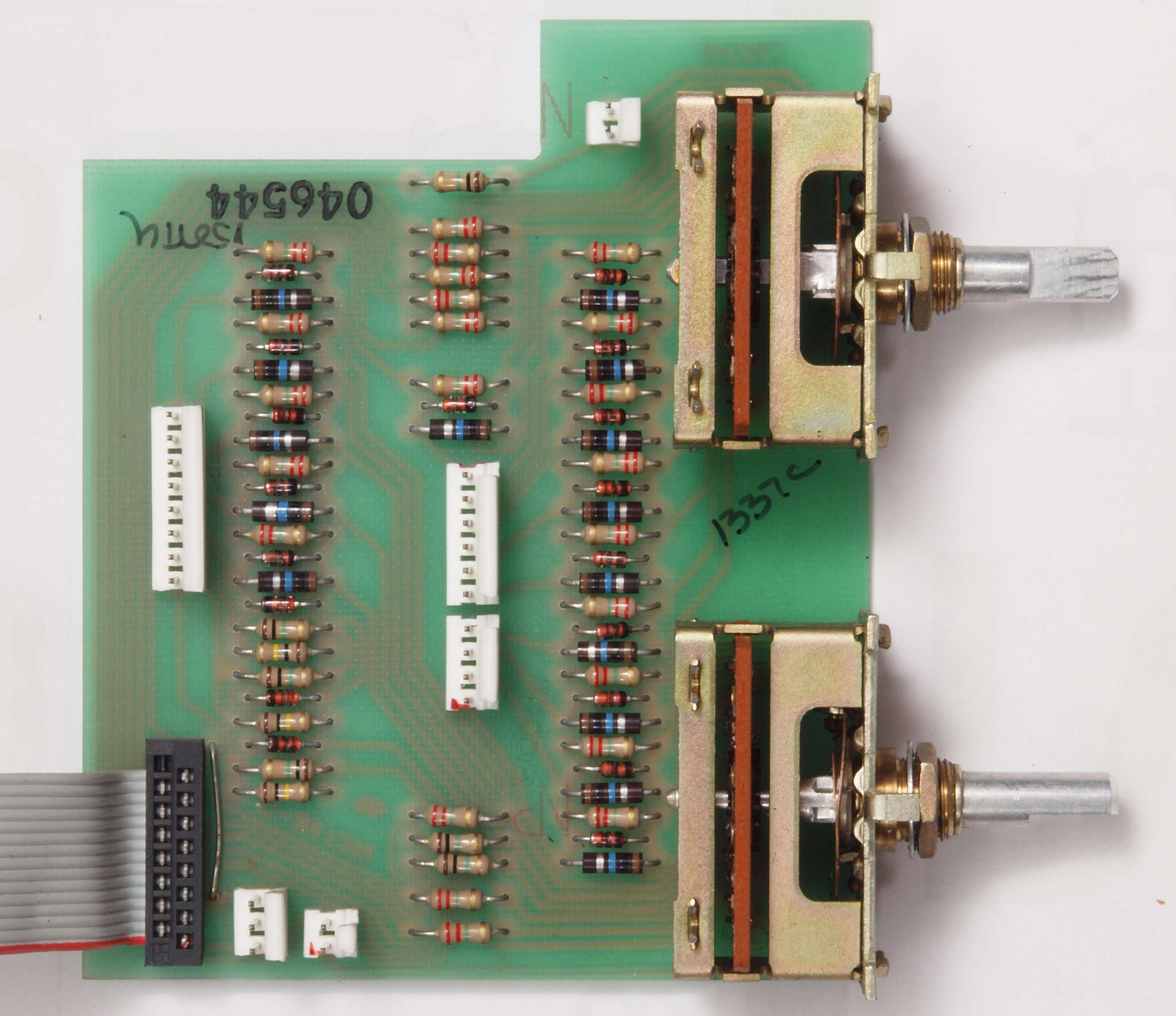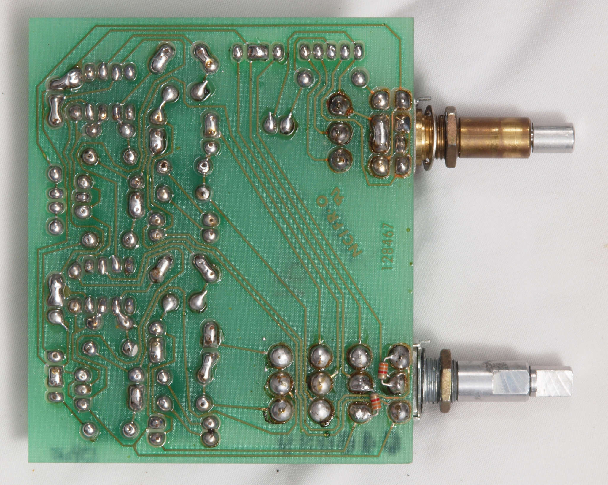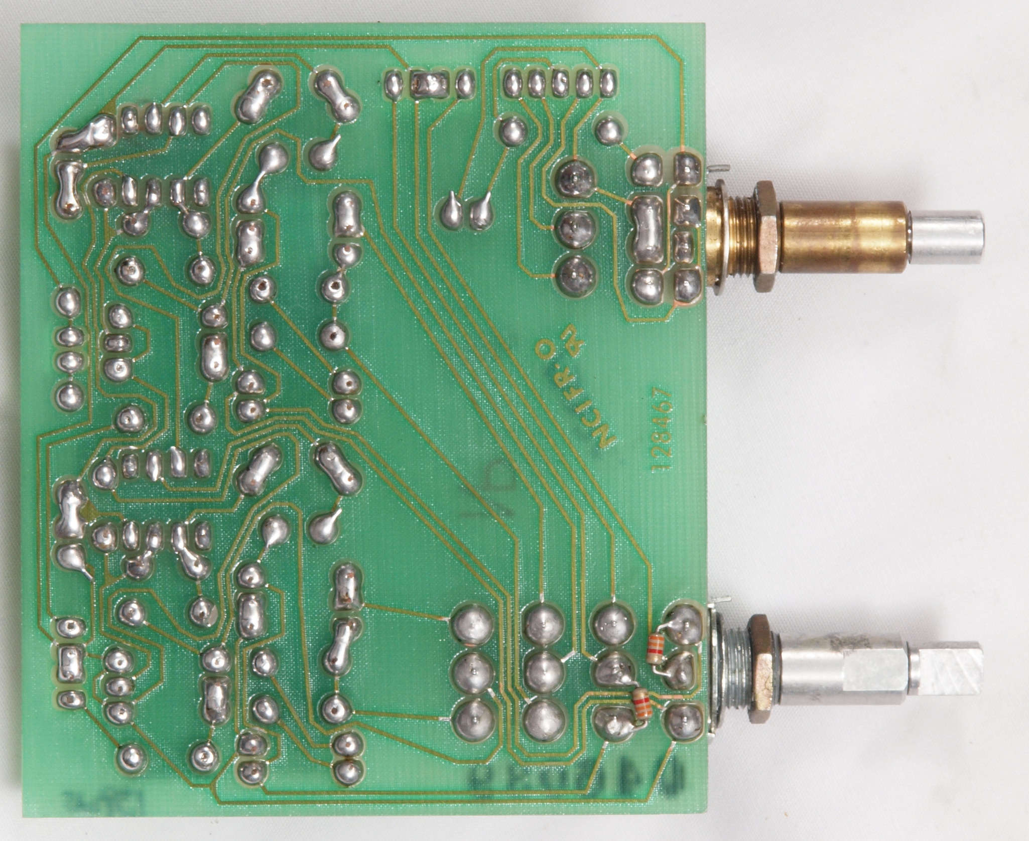 C64. 修理修理(半田補正)後 Loudness & Balance基板裏。 半田を全部やり直す。抵抗2個追加。