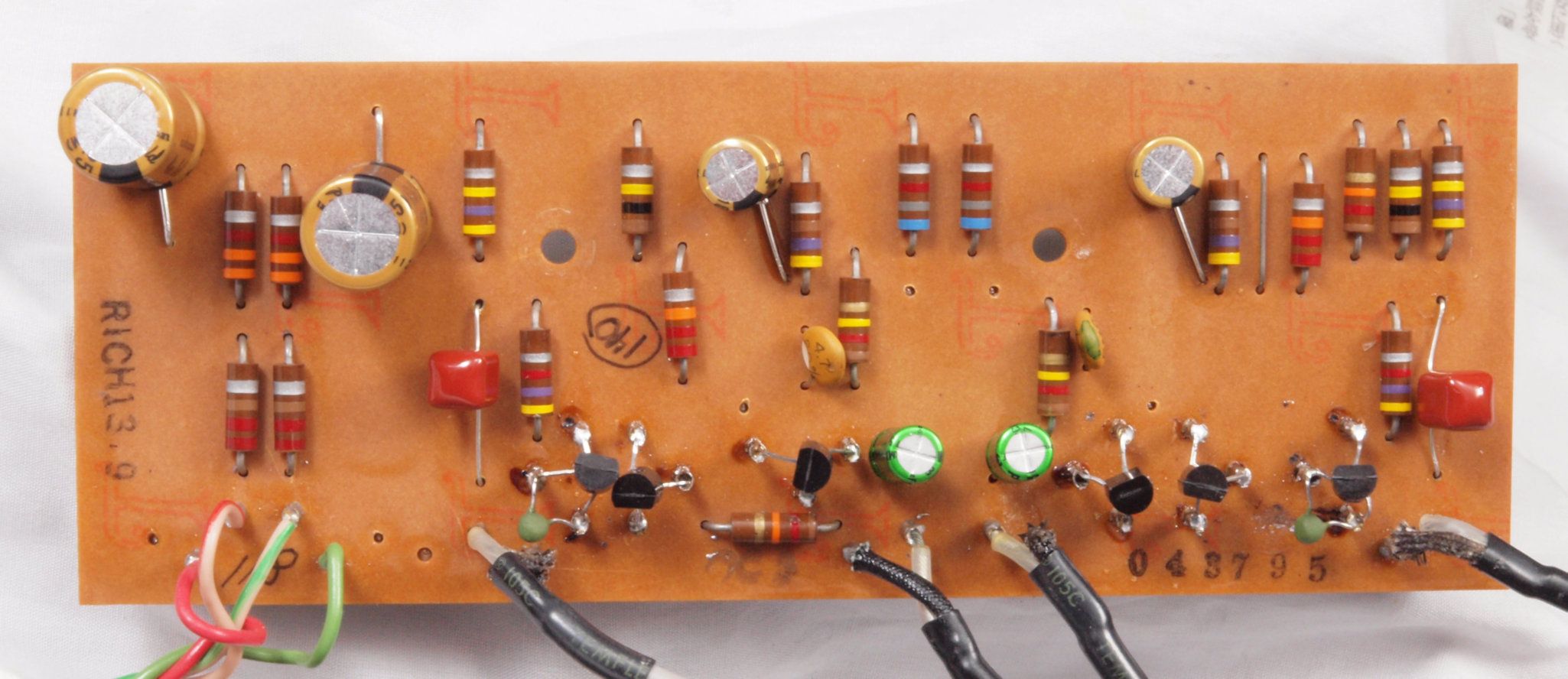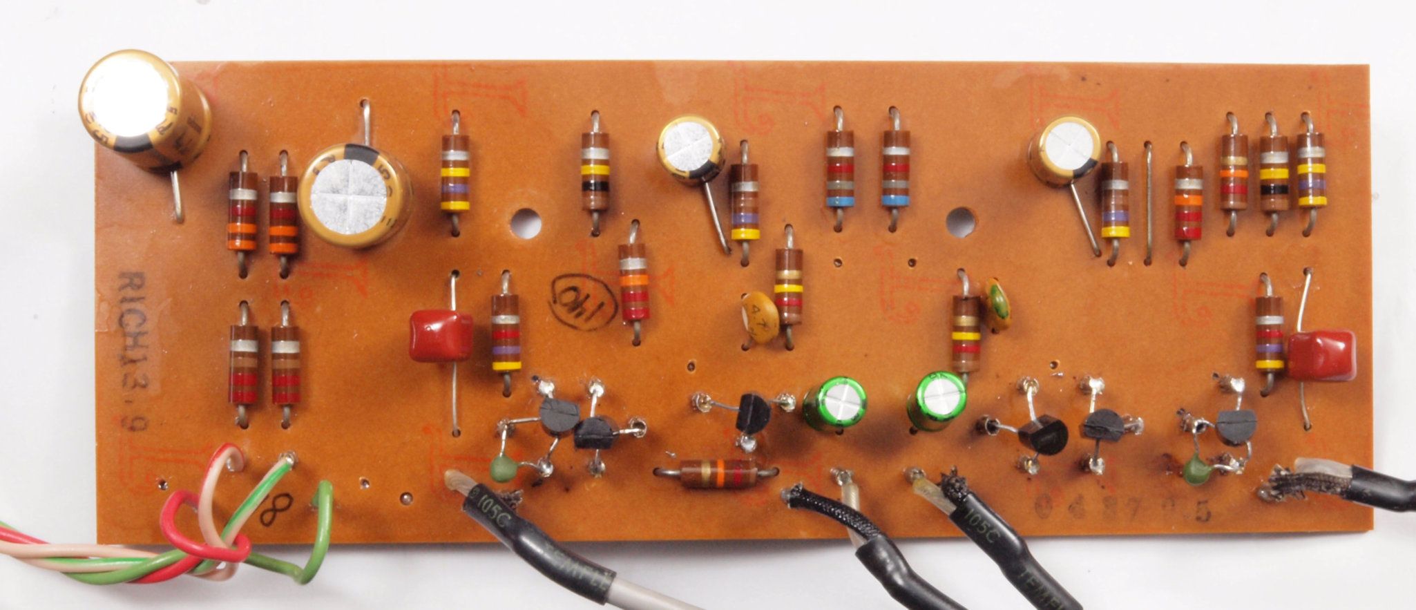 | C32. 修理後 プリAMP基板 電解コンデンサー6個、TR(トランジスター)6個、フイルムコンデンサー2個交換 | ||||||||||||||||||||||||||||||