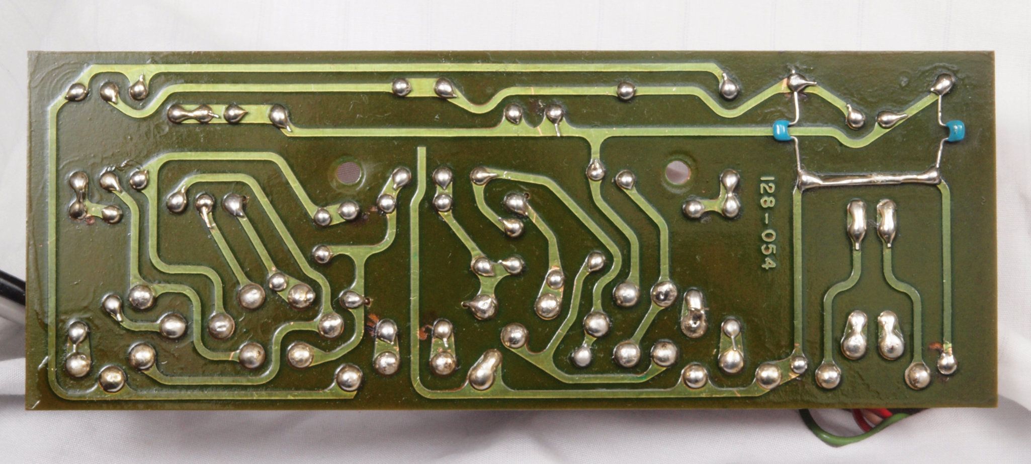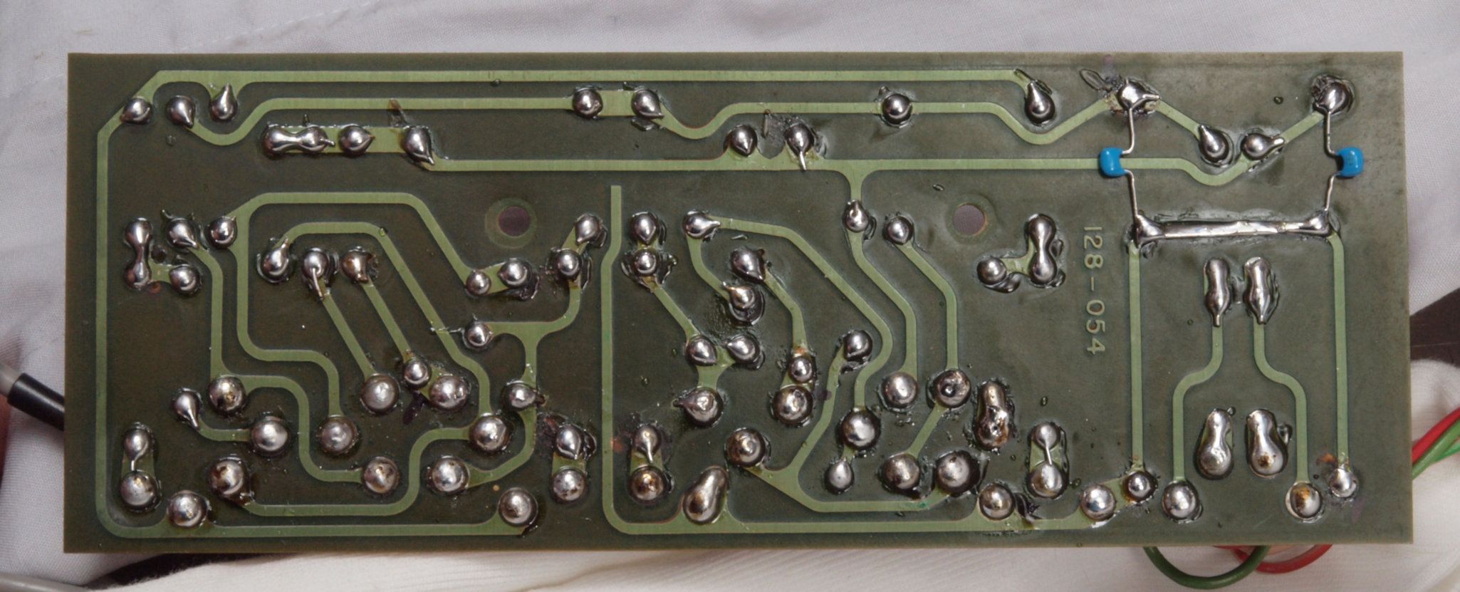 | C34. 修理(半田補正)後 プリAMP基板裏。 半田を全部やり直す。セラミックコンデンサー2個追加。 | ||||||||||||||||||||||||||||||