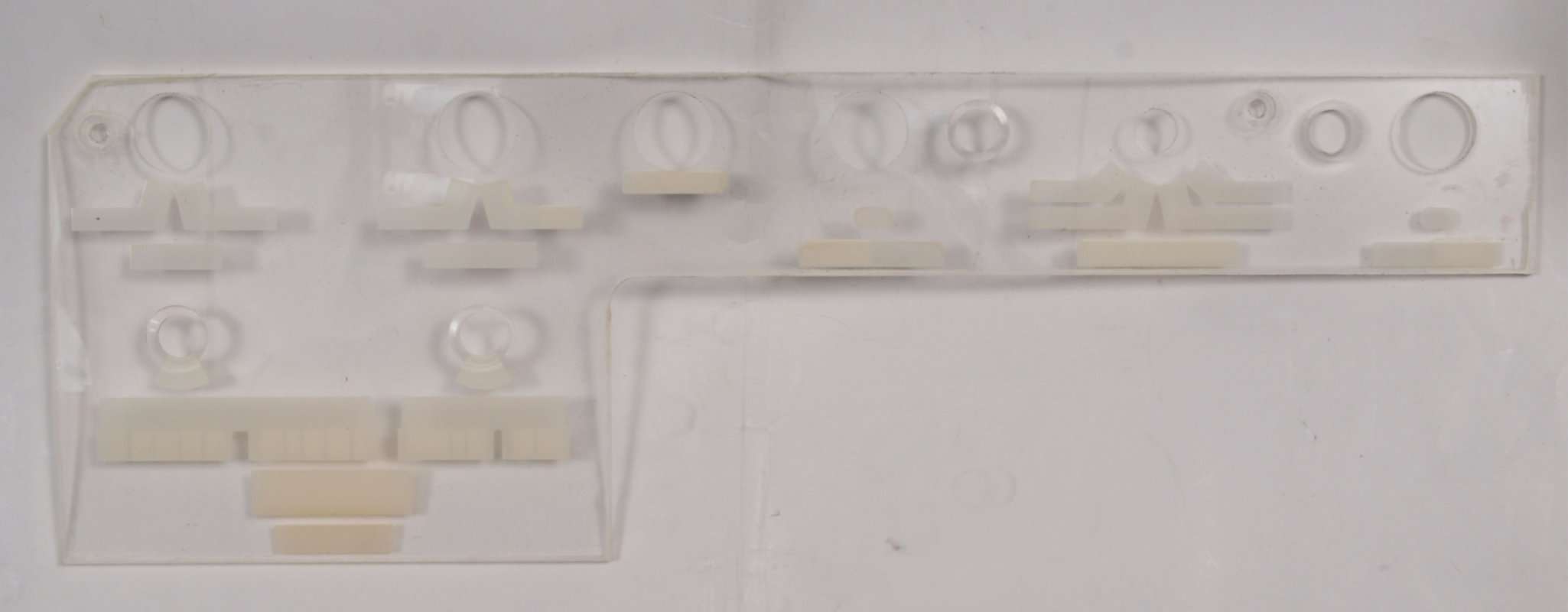 | C81. 修理前 交換された入力VR、軸がプラスチック製でツマミに接着してある。前のVRの端子がそのまま。メインパネル裏の配光板 | ||||||||||||||||||||||||||||||