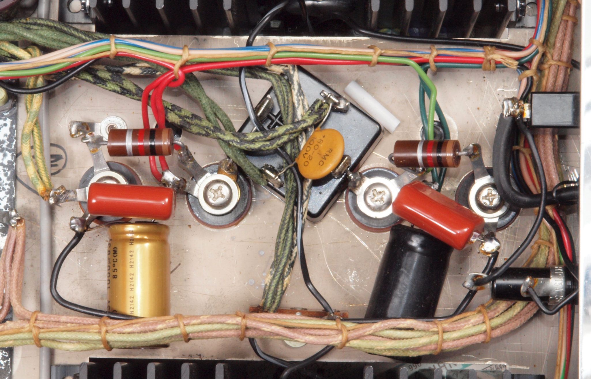 | C62. 修理後 電源整流器、ブロック電解コンデンサー下。電解コンデンサー2個、フイルムコンデンサー2個追加。 | ||||||||||||||||||||||||||||||