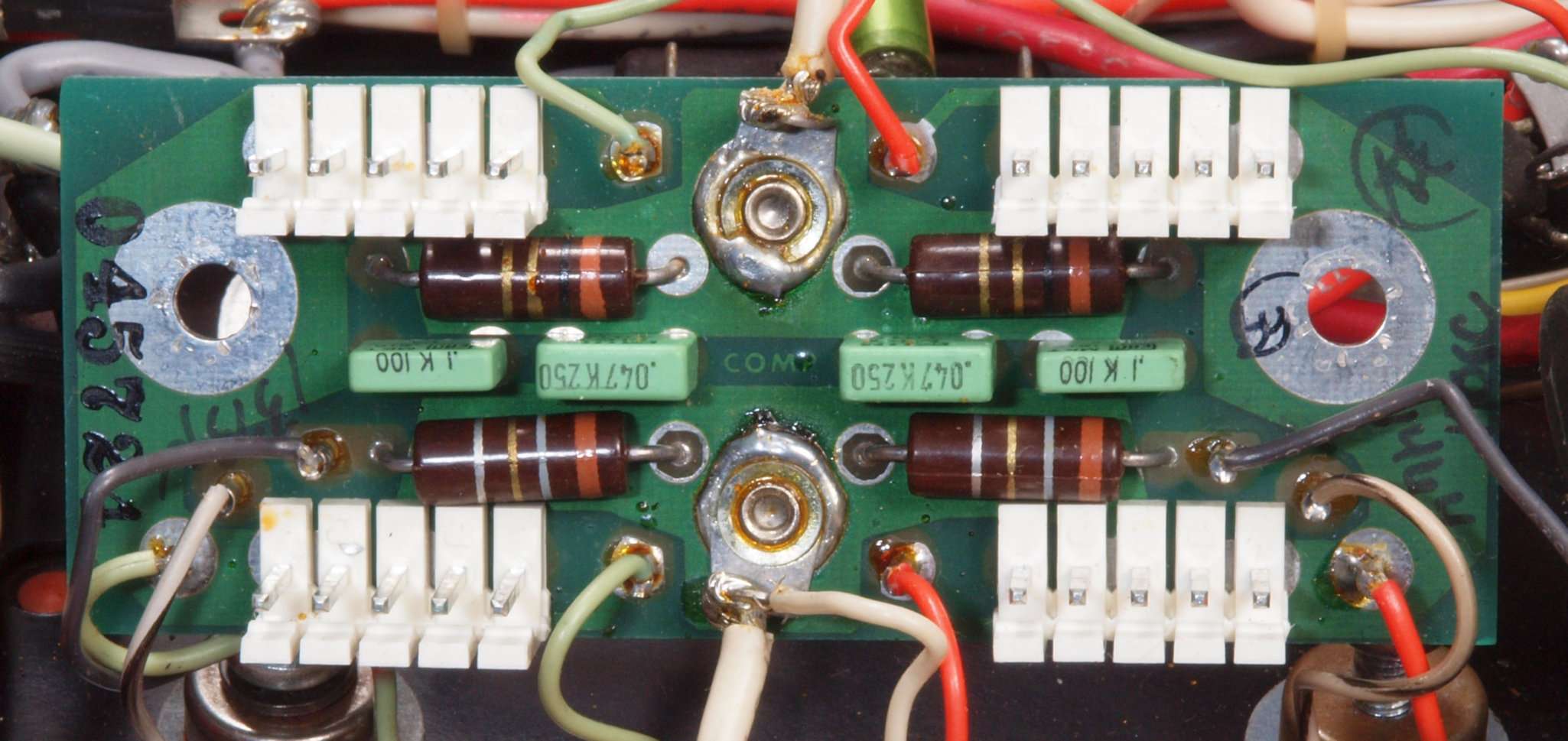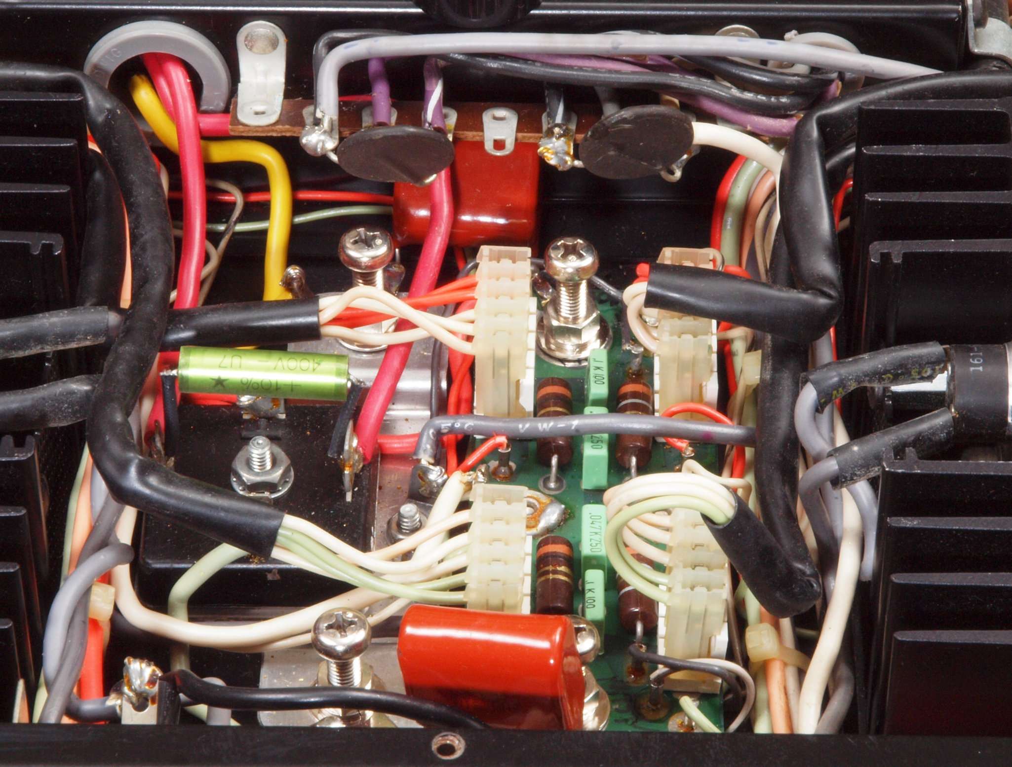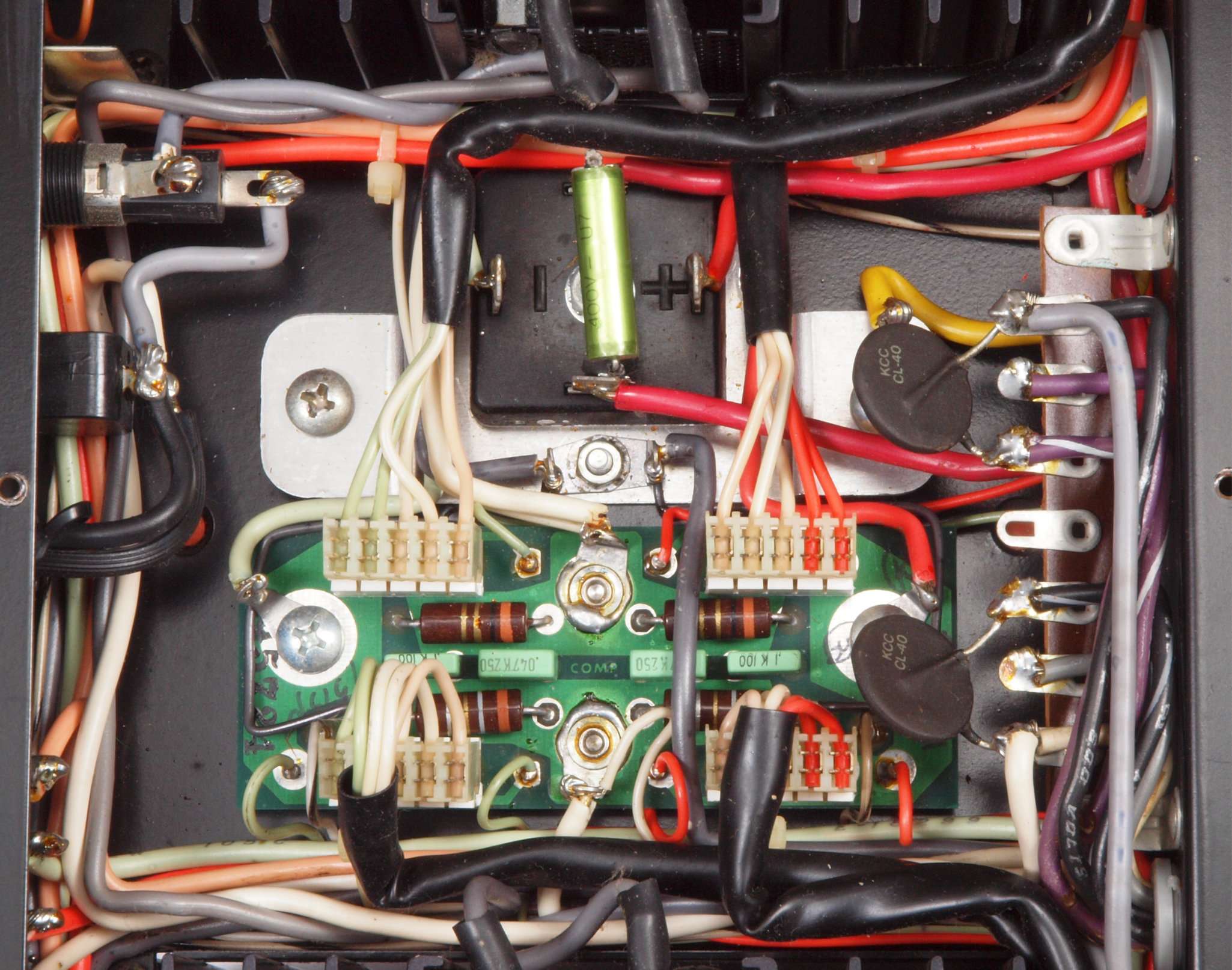 | CB2. 修理後 電源・整流部分、 フイルムコンデンサー2個追加。ブロック電解コンデンサーの電極止めビス4本真鍮製に交換。 | ||||||||||||||||||||||||||||||||||