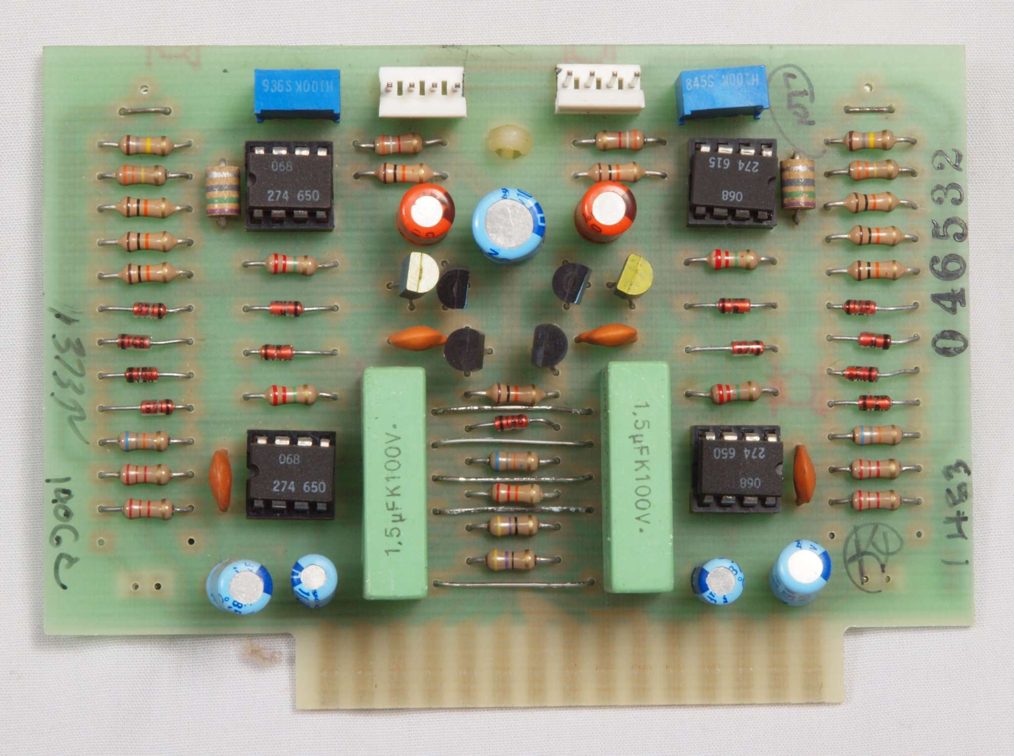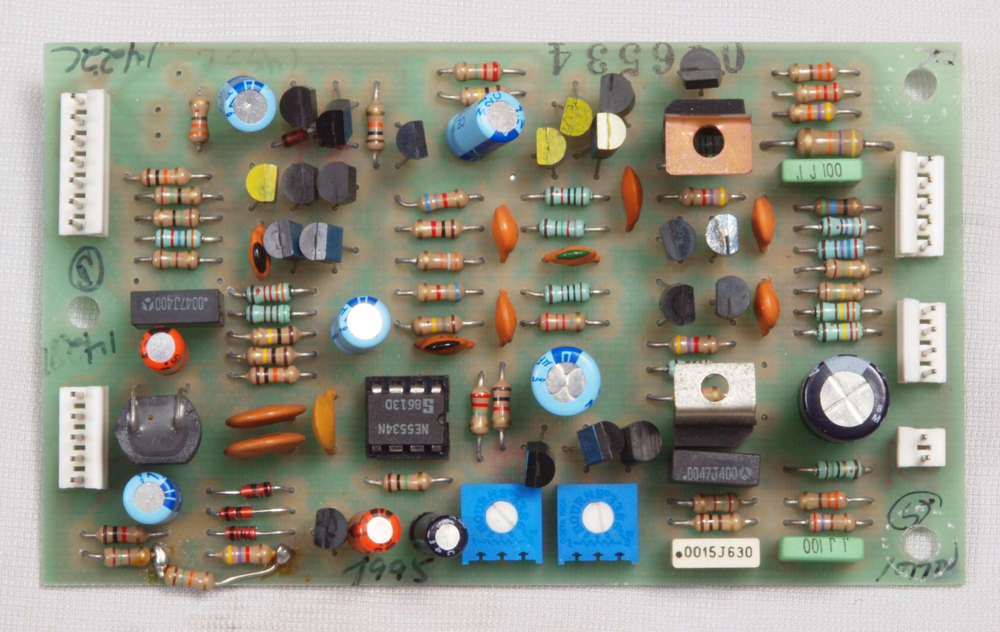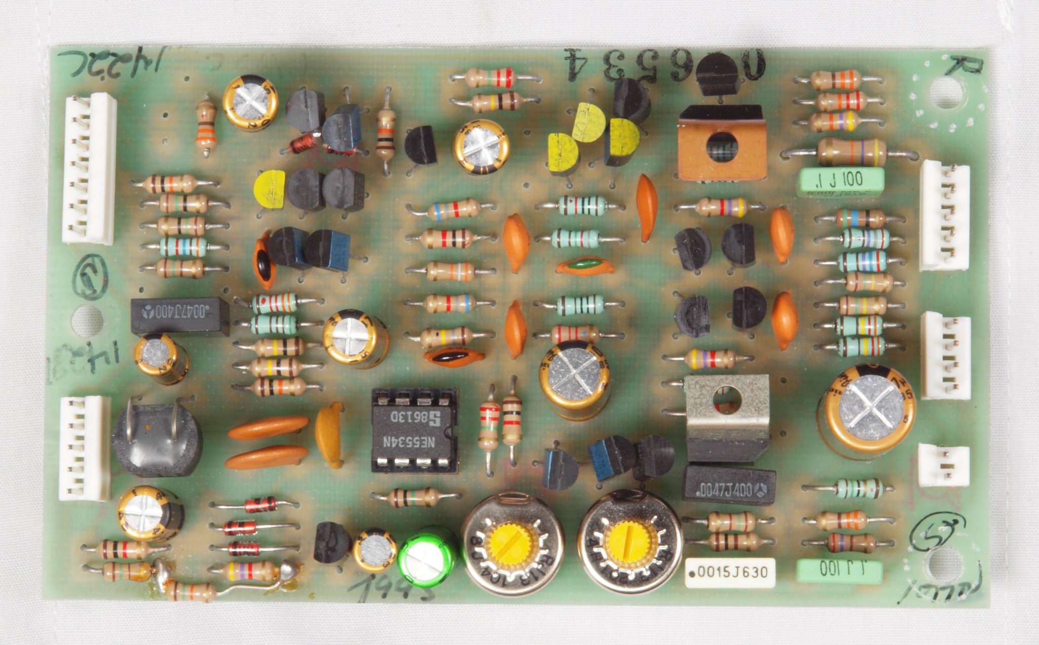 | C22. 修理後 左側AMP基板 組み込み時日本製OP−AMP、電解コンデンサー9個、半固定VR2個交換 | ||||||||||||||||||||||||||||||||||