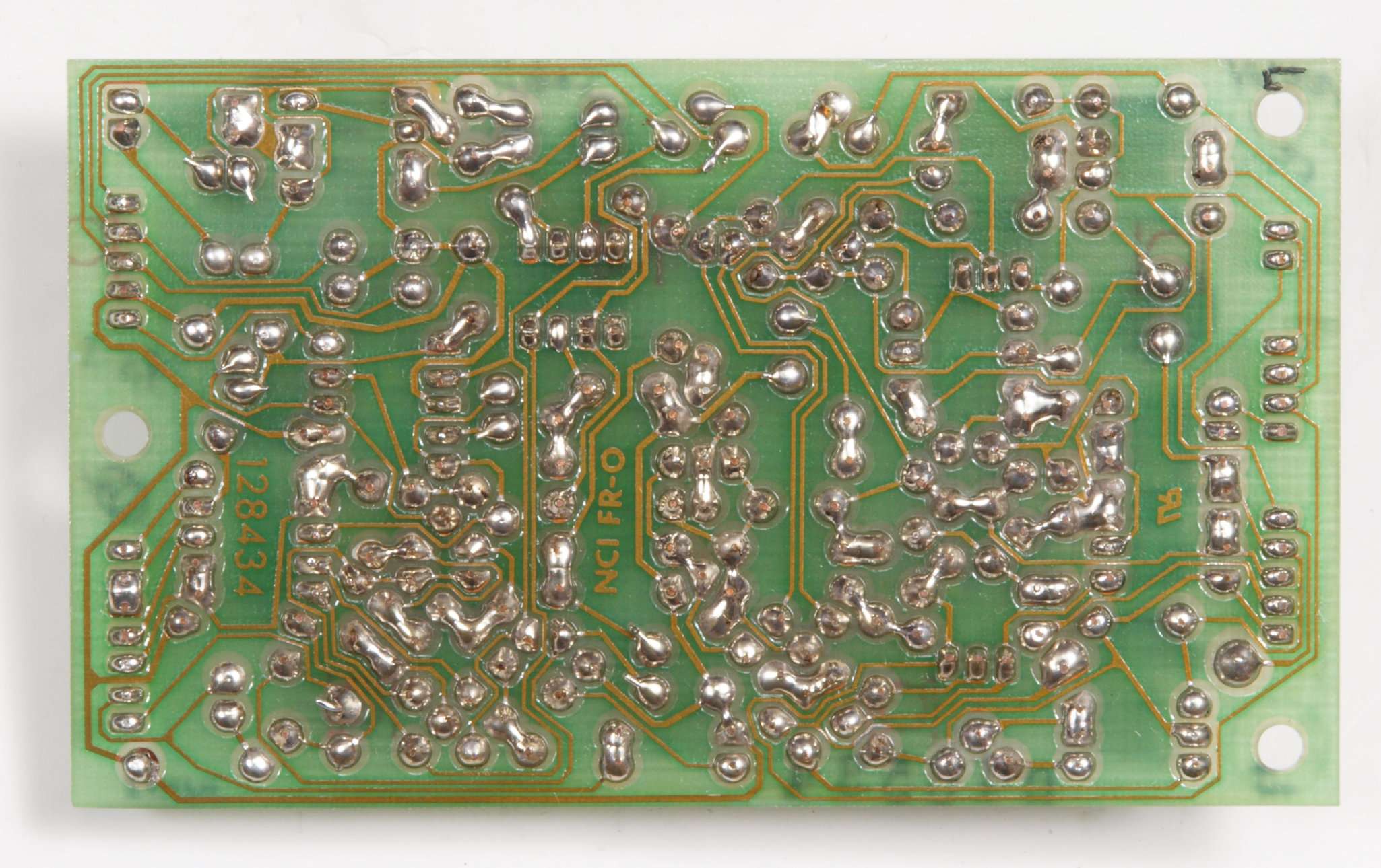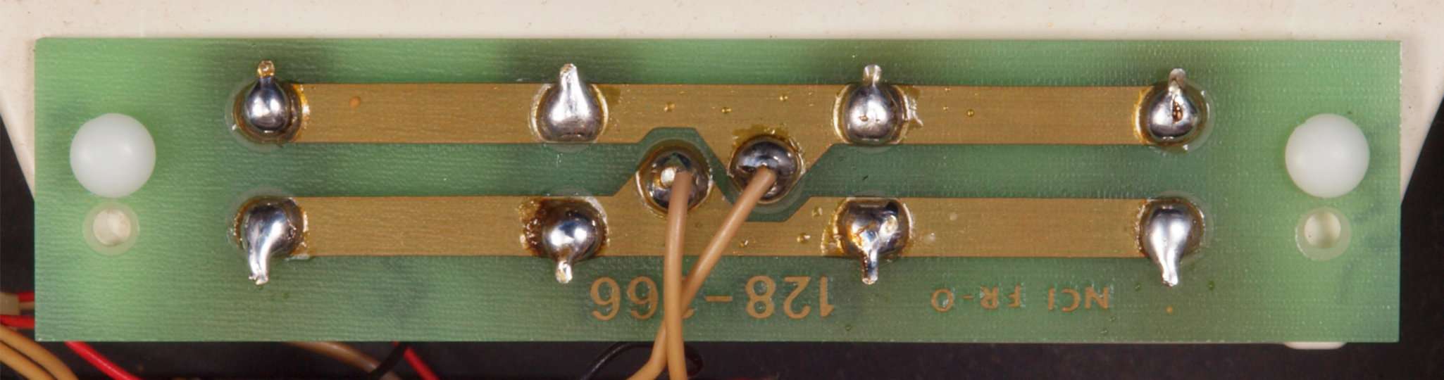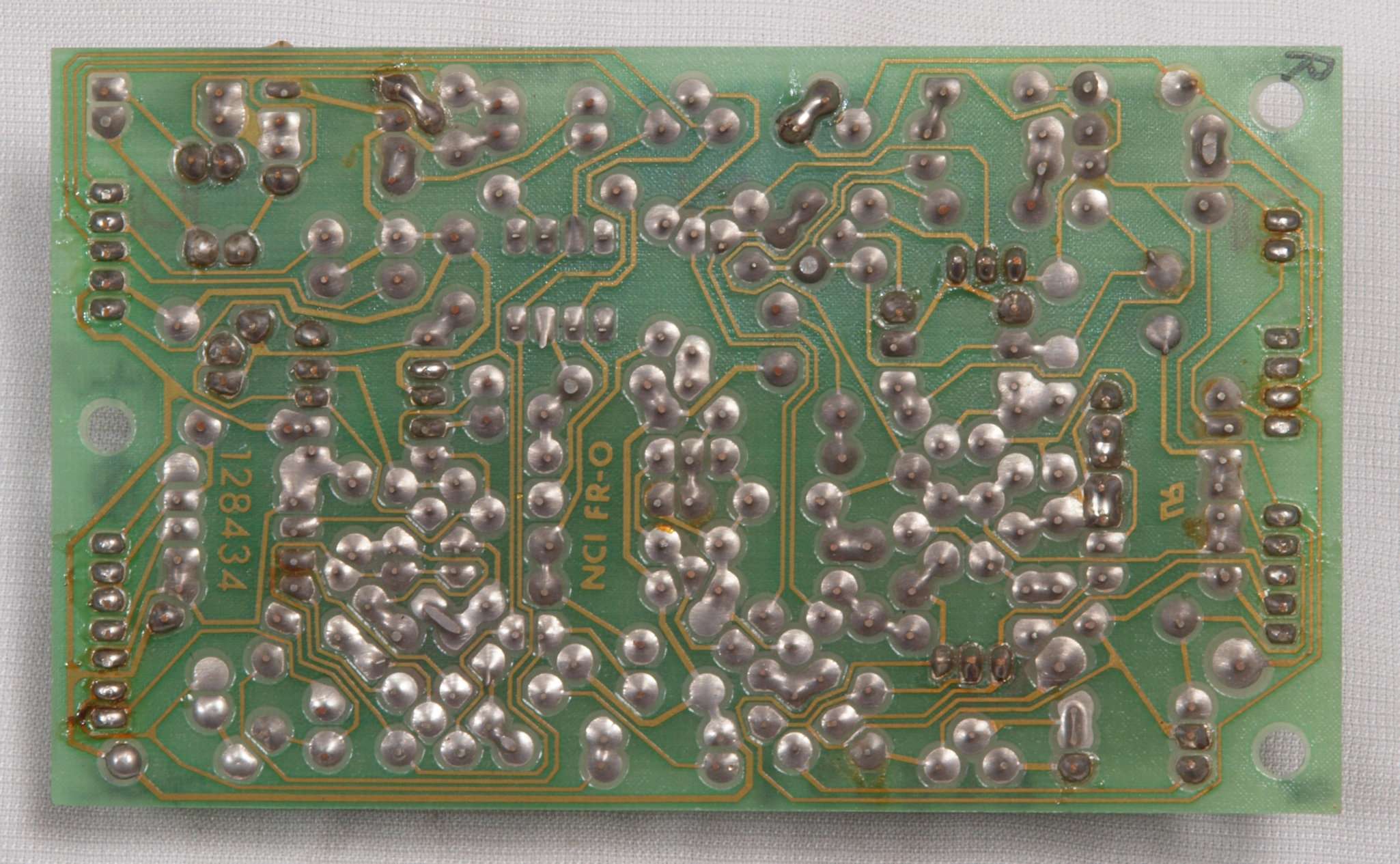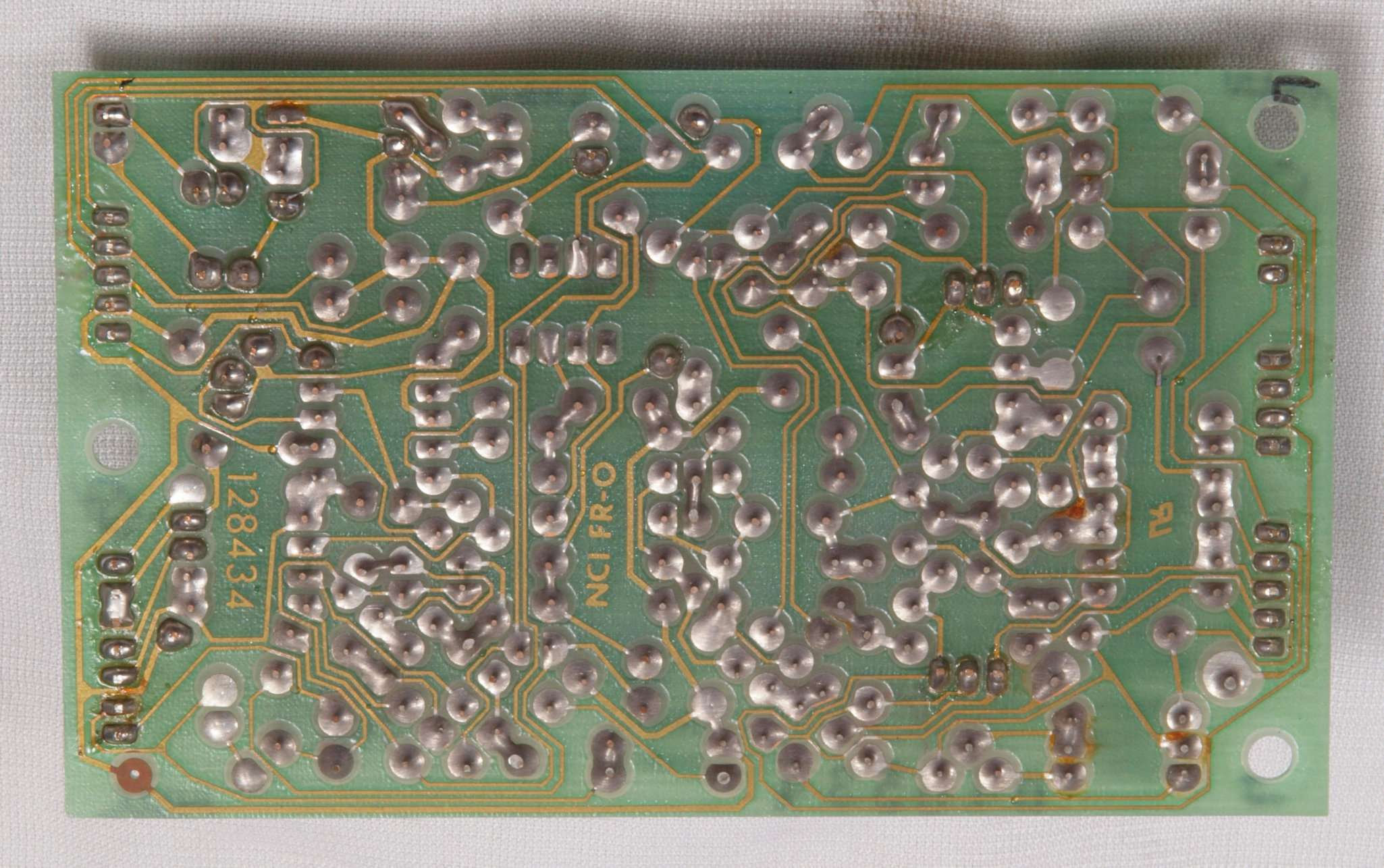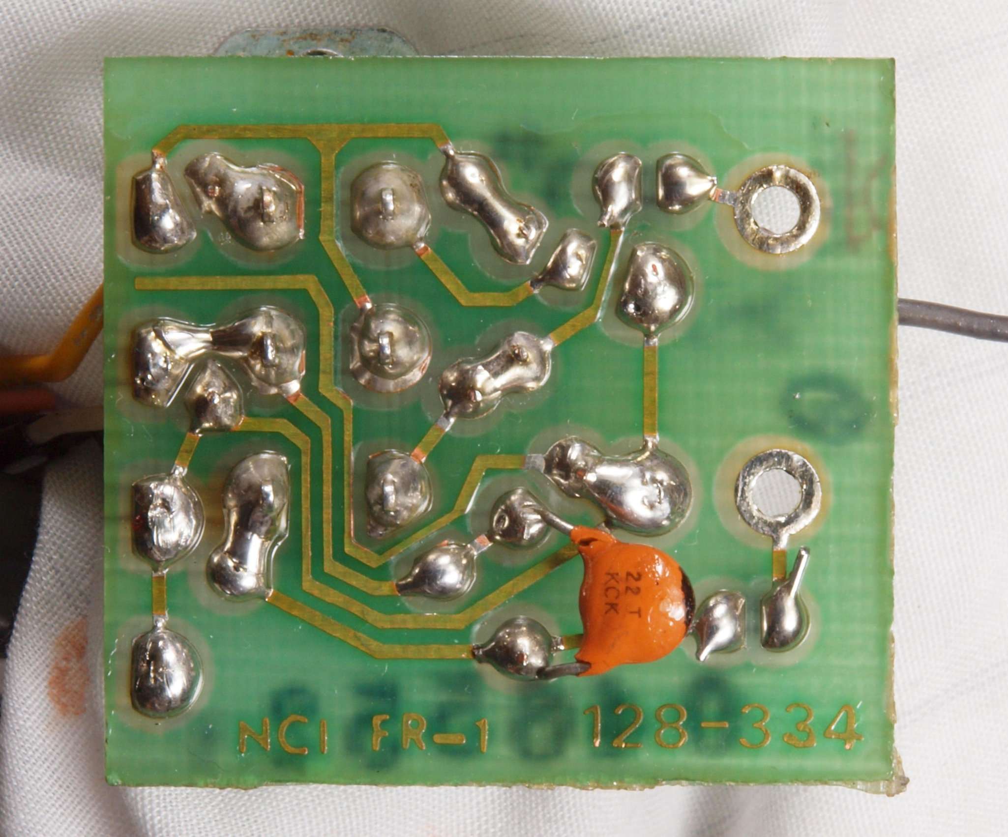 | CB4. 修理前 ブロック電解コンデンサー・ジョイント基板裏。ドブ付け半田方式。 | ||||||||||||||||||||||||||||||||||