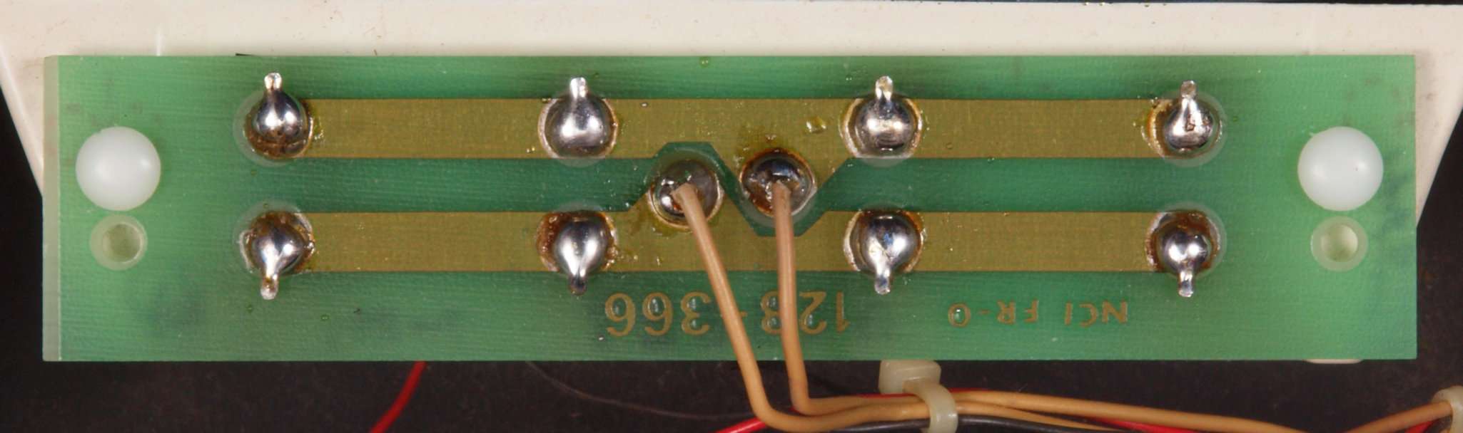 | C54. 修理(半田補正)後 左側メータ・イルミネーション・ランプ基板裏。 全半田やり直す。 | ||||||||||||||||||||||||||||||||||