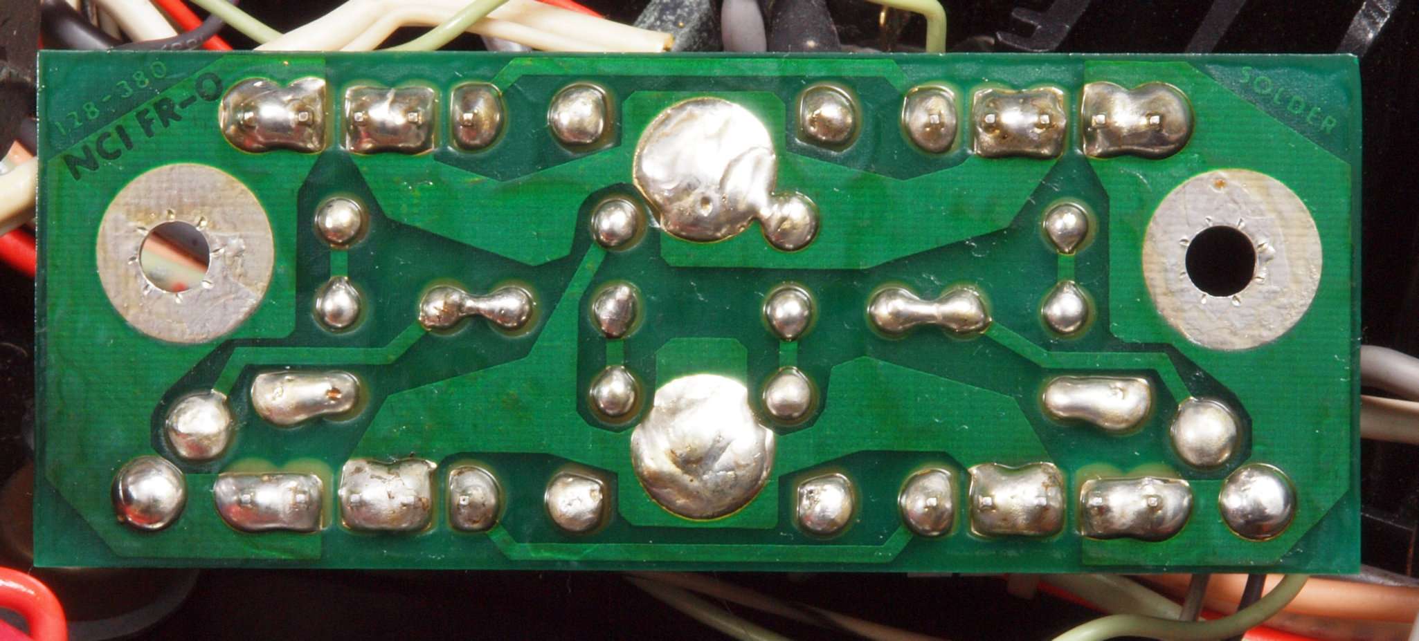 | C74. 修理(半田補正)後 入力切替SW基板裏。 全半田やり直す。 | ||||||||||||||||||||||||||||||||||