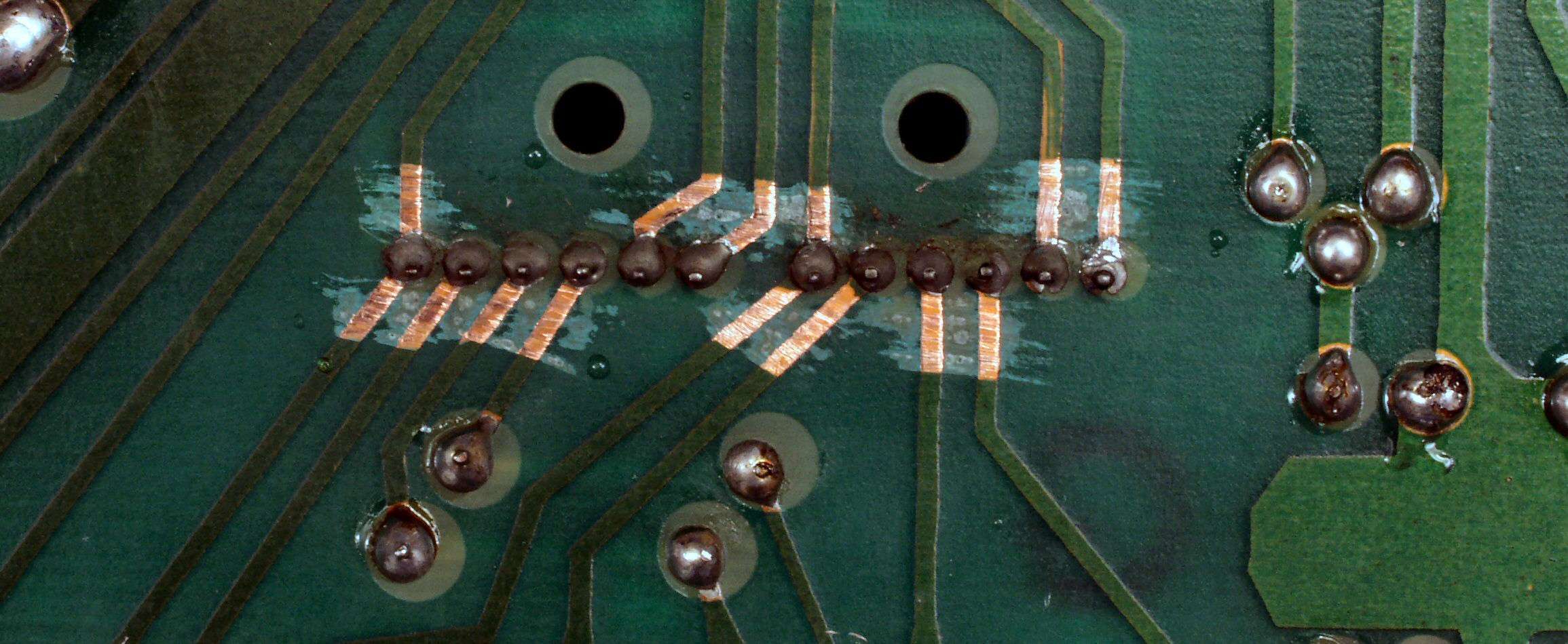 C1D. 修理(半田補正)後 基板裏、 半田を全部やり直す。