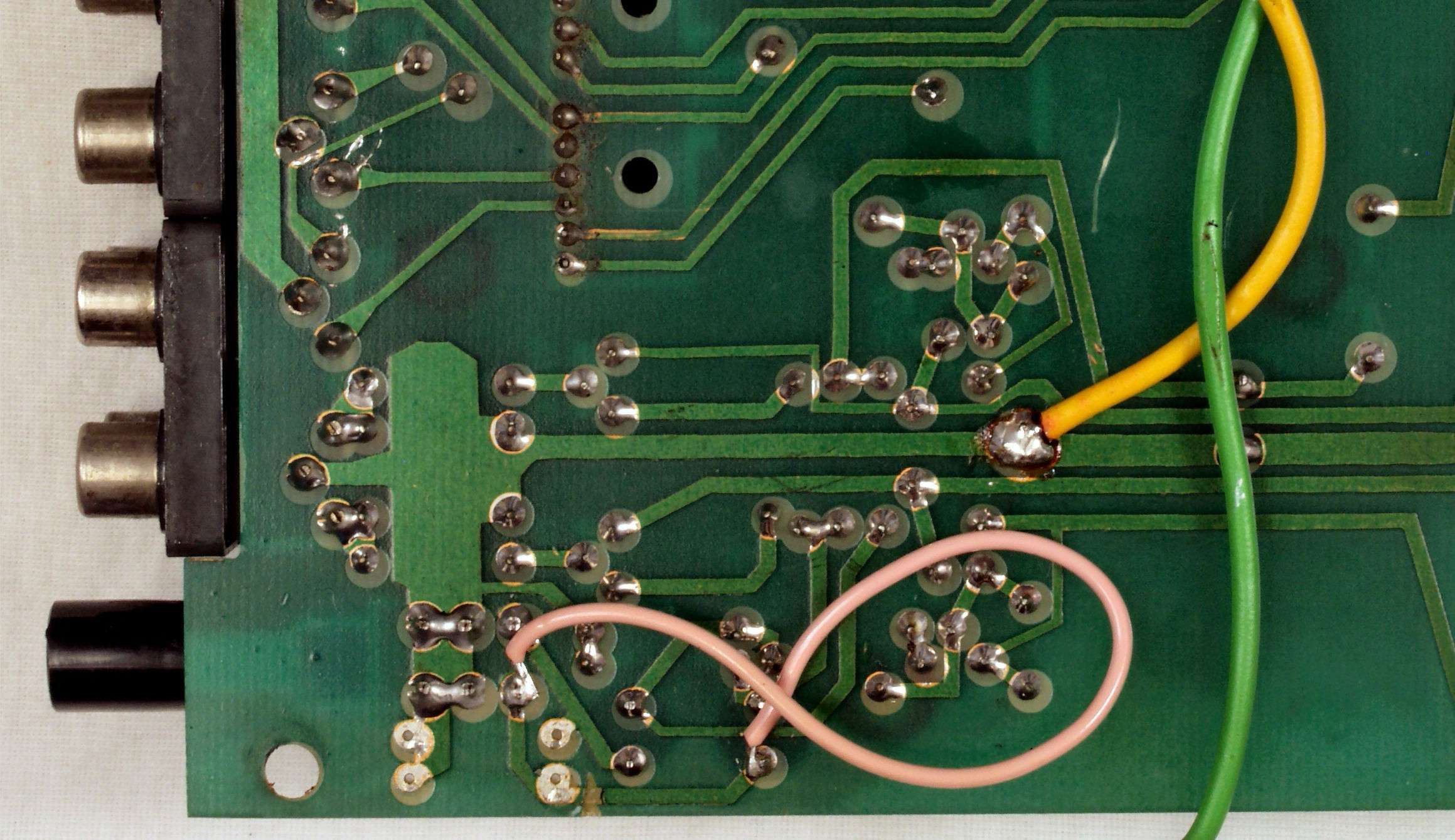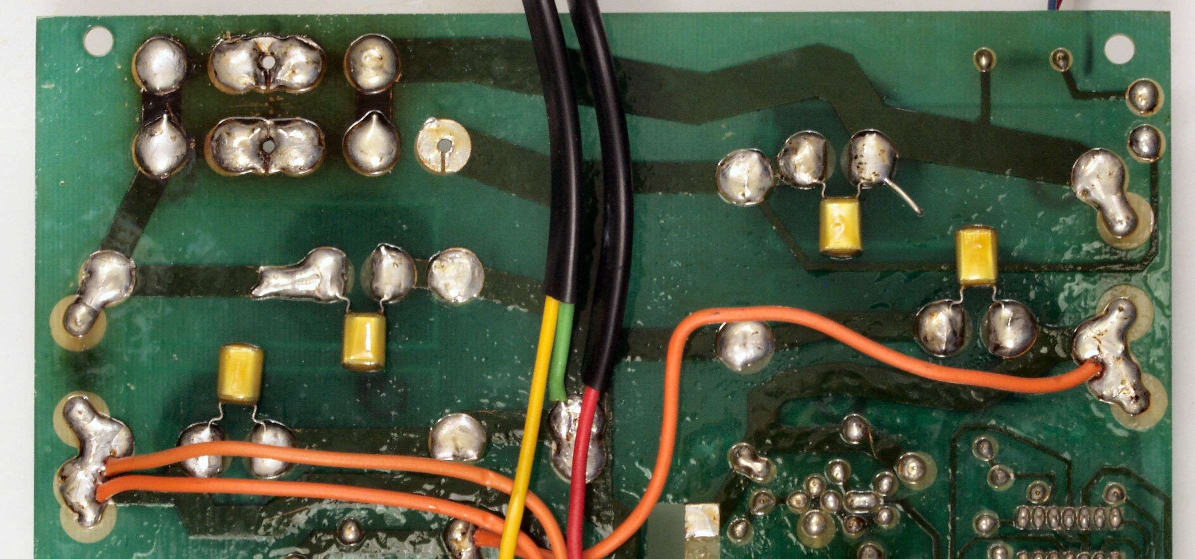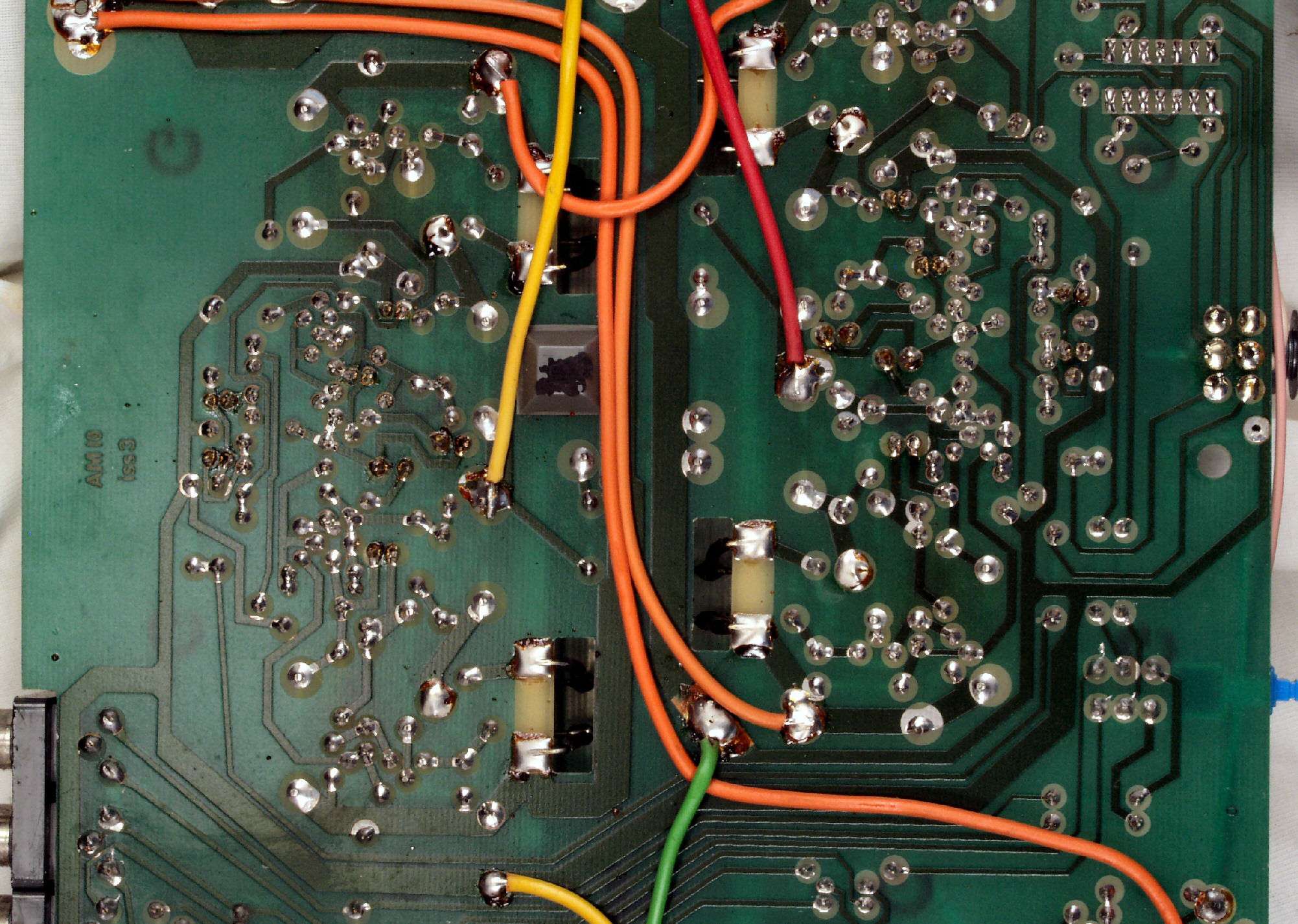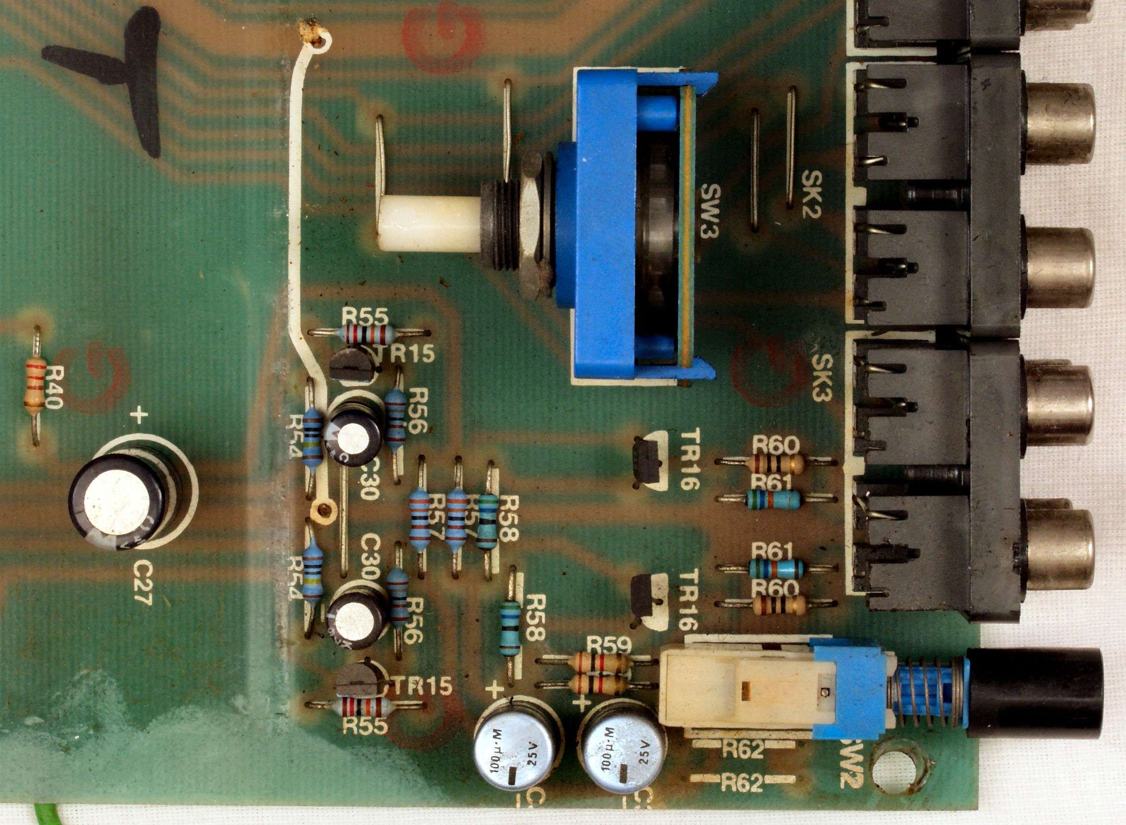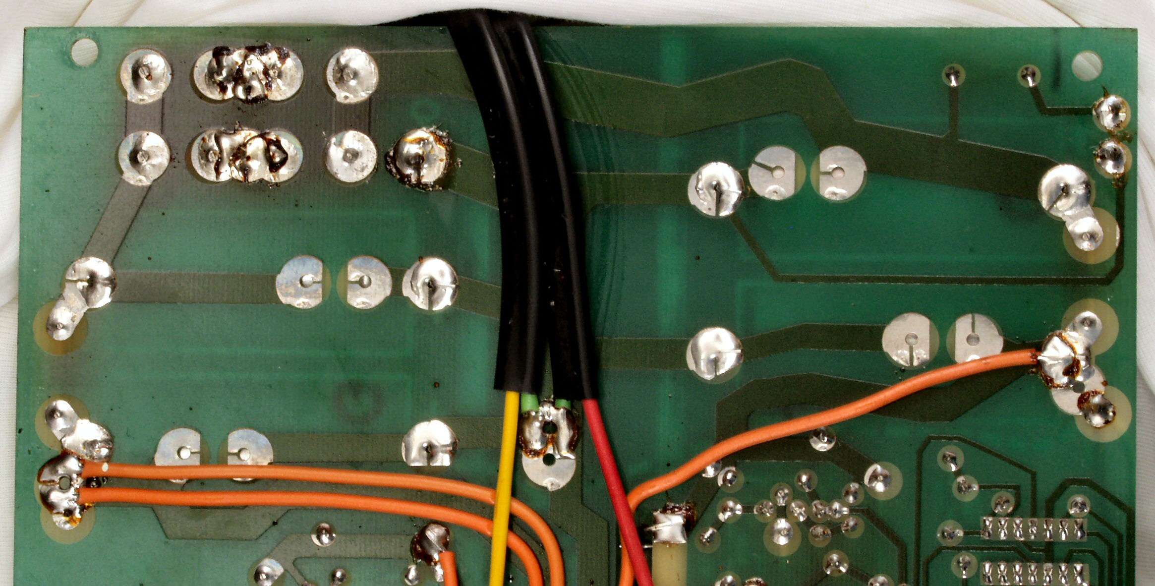 C4C1. 修理前  MC基板裏、入力切り替えSWの端子半田部分ののりしろを増やす。