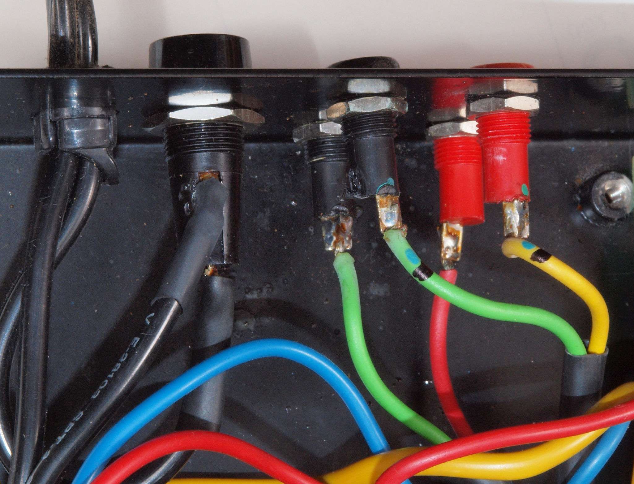 CB2. 修理(交換)後 入出力RCA端子、太いケーブルを使用出来るよう、接着材を使用する。