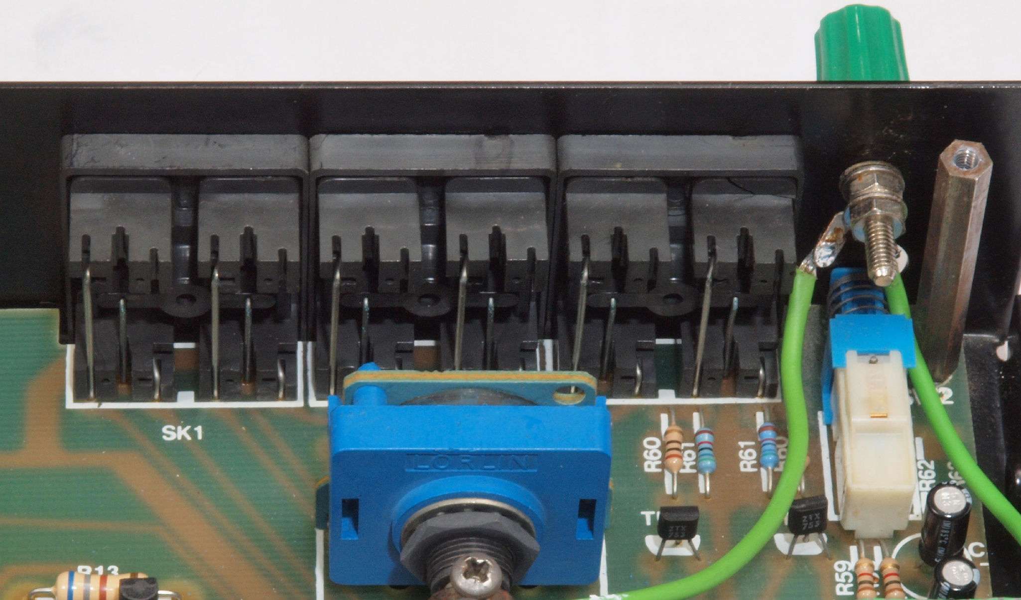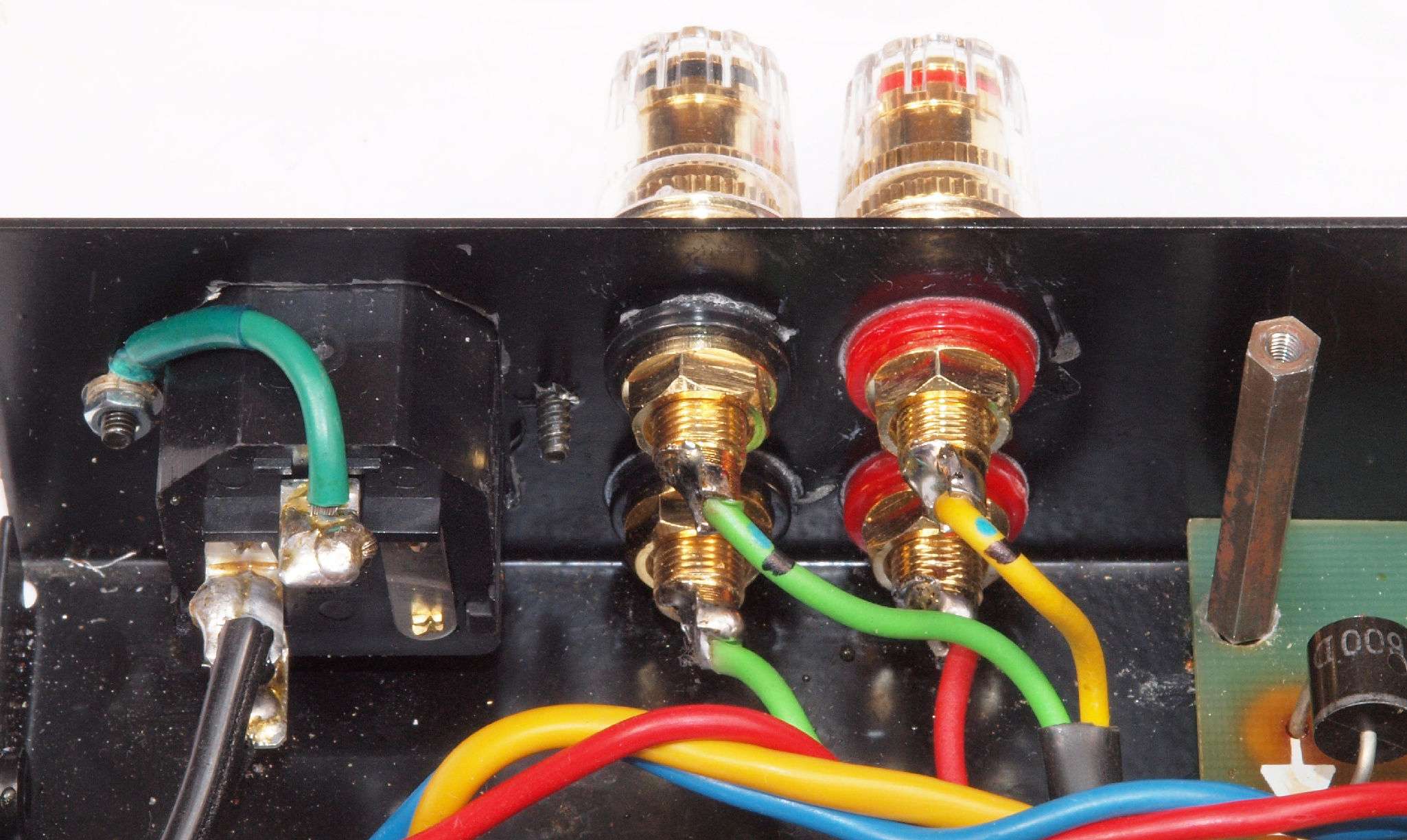 CC4. 修理後 SP接続端子交換、端子の穴は横向き。 電源コードをインレットソケットに交換。