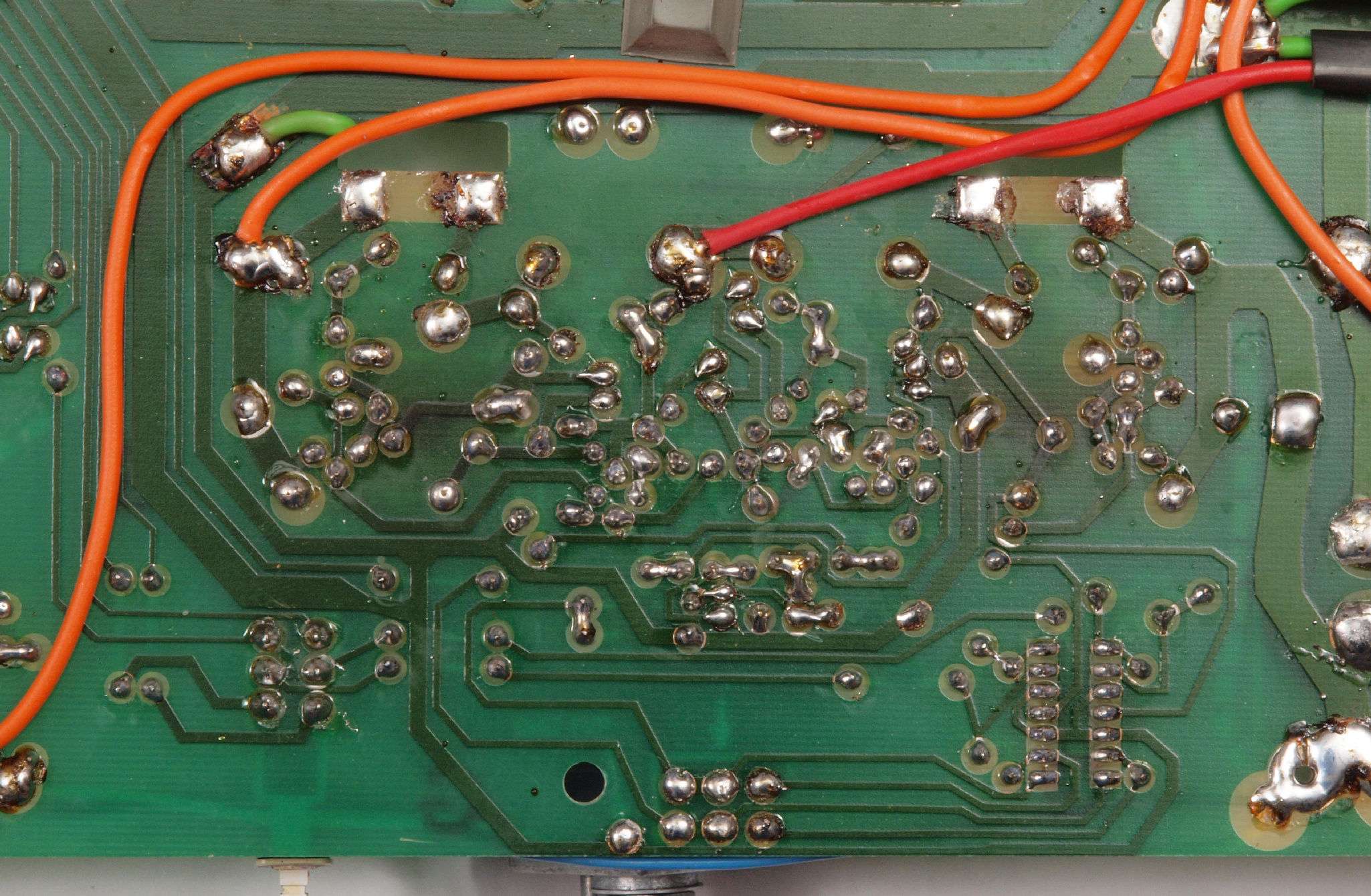 C64. 修理(半田補正)後  MC基板裏、 半田を全部やり直す。 フイルムコンデンサー1個追加。