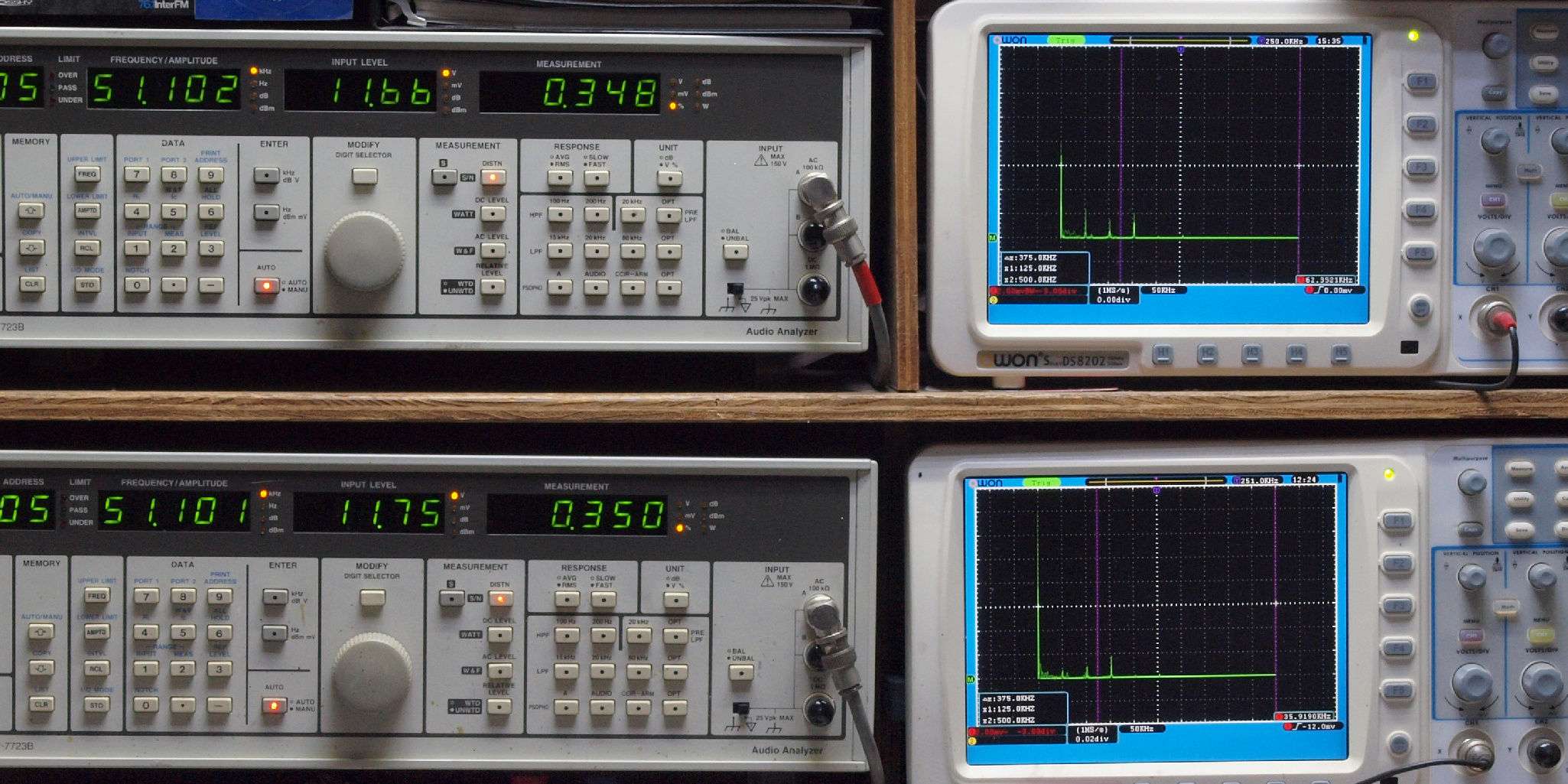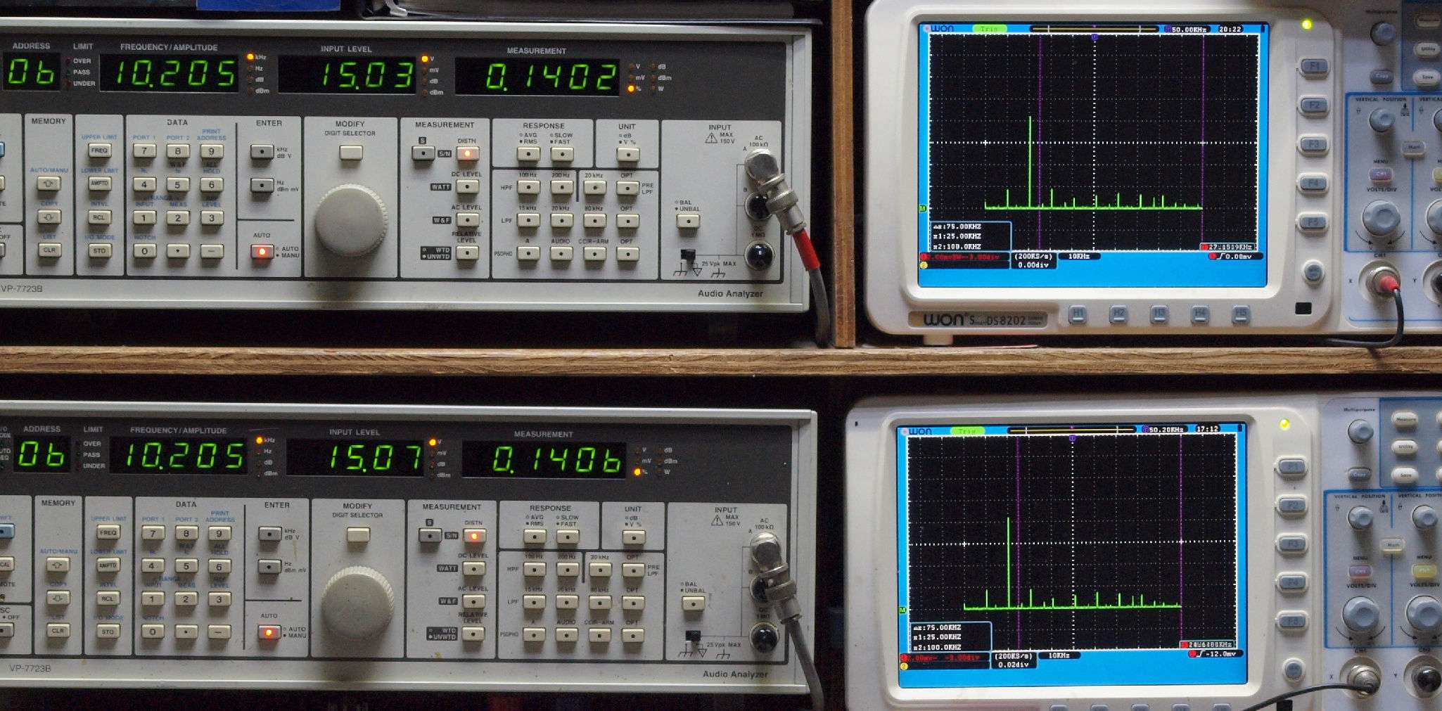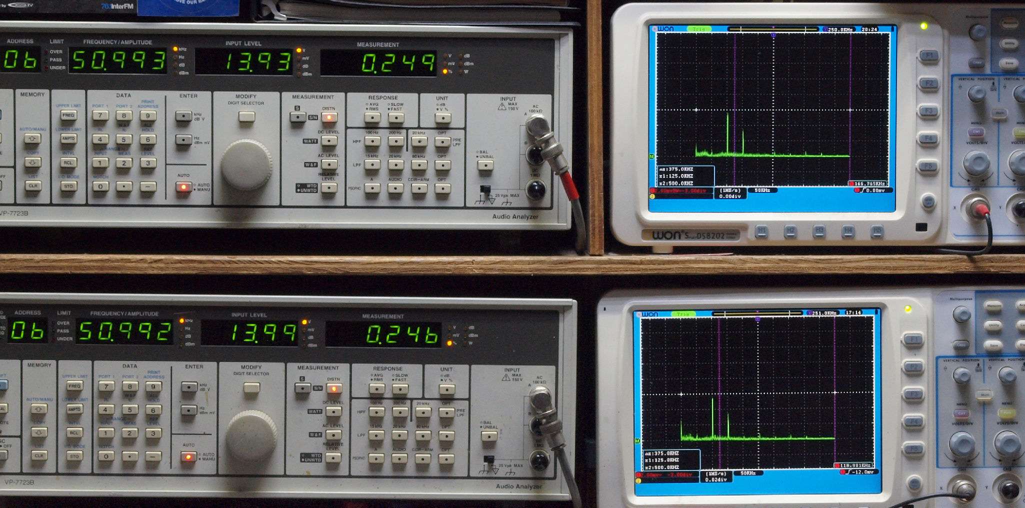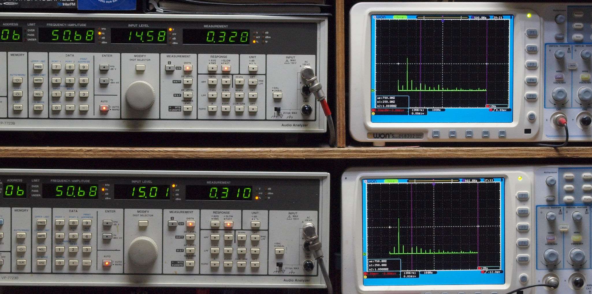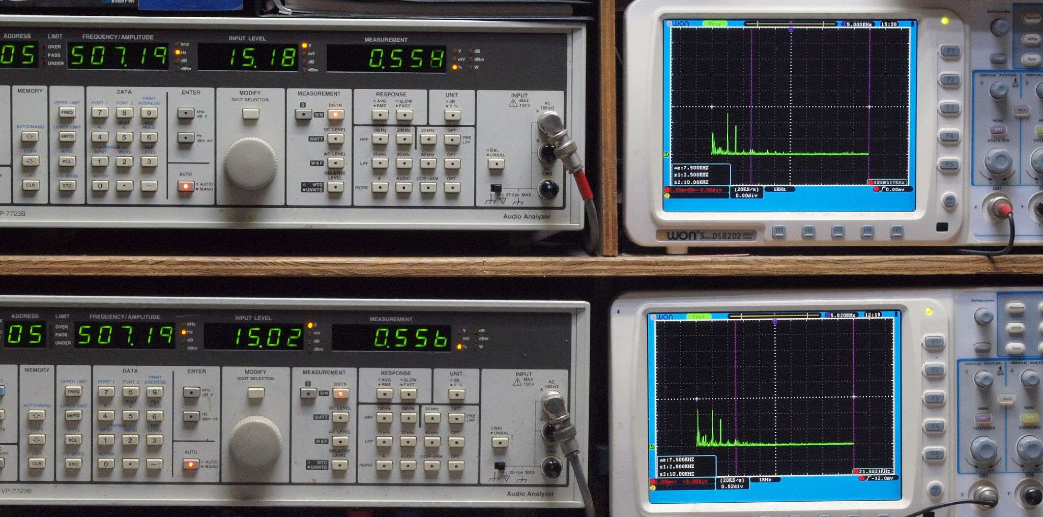 よって、ダイアル設定出力レベルより低くなります。測定機器の仕様や整備の様子はこちら、「VP−7723B」「VP−7201A」。 FFT画面の見方はこちら。