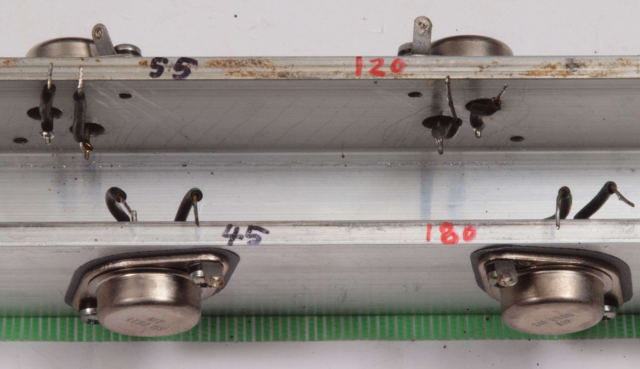 A33. 点検中、 左側終段TR(トランジスター)。 左右で異なる。