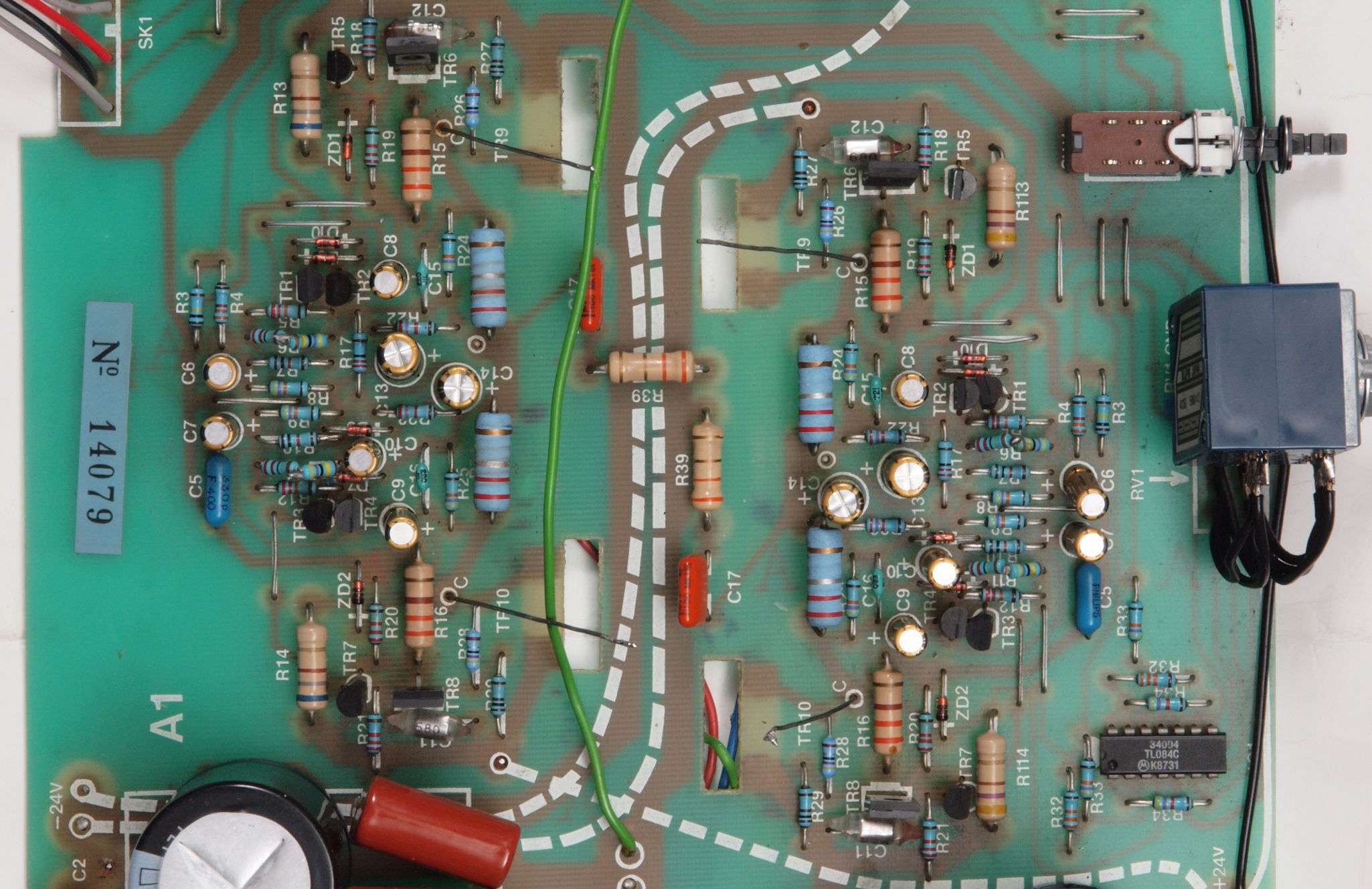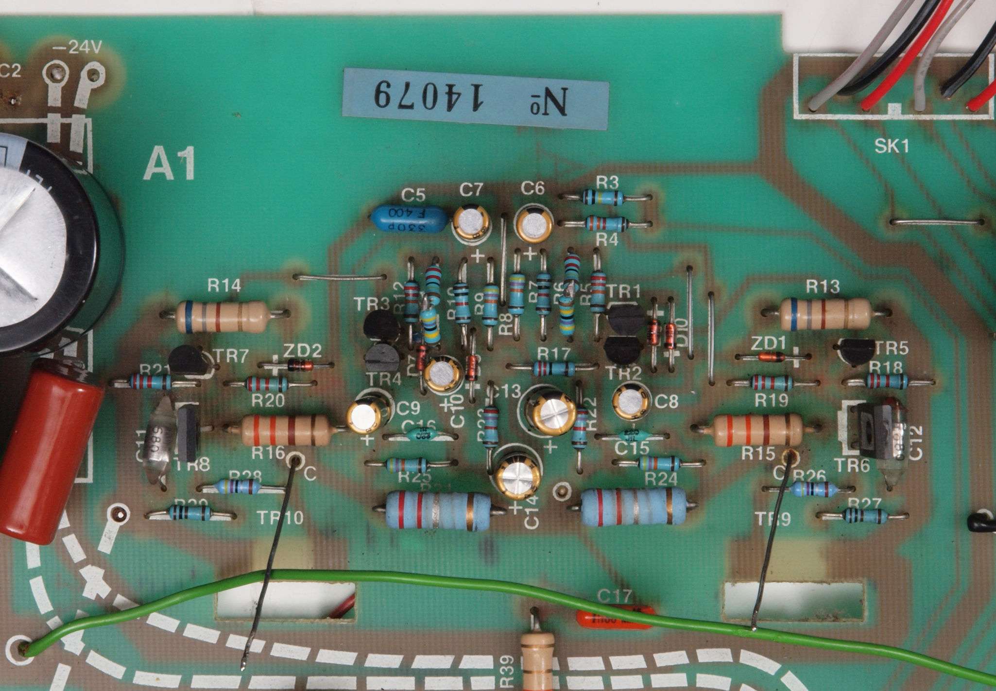 A81. 終段TR(トランジスター)のエミッター抵抗(低歪タイプ)は測定して選別使用。福島双羽電機(株)製。