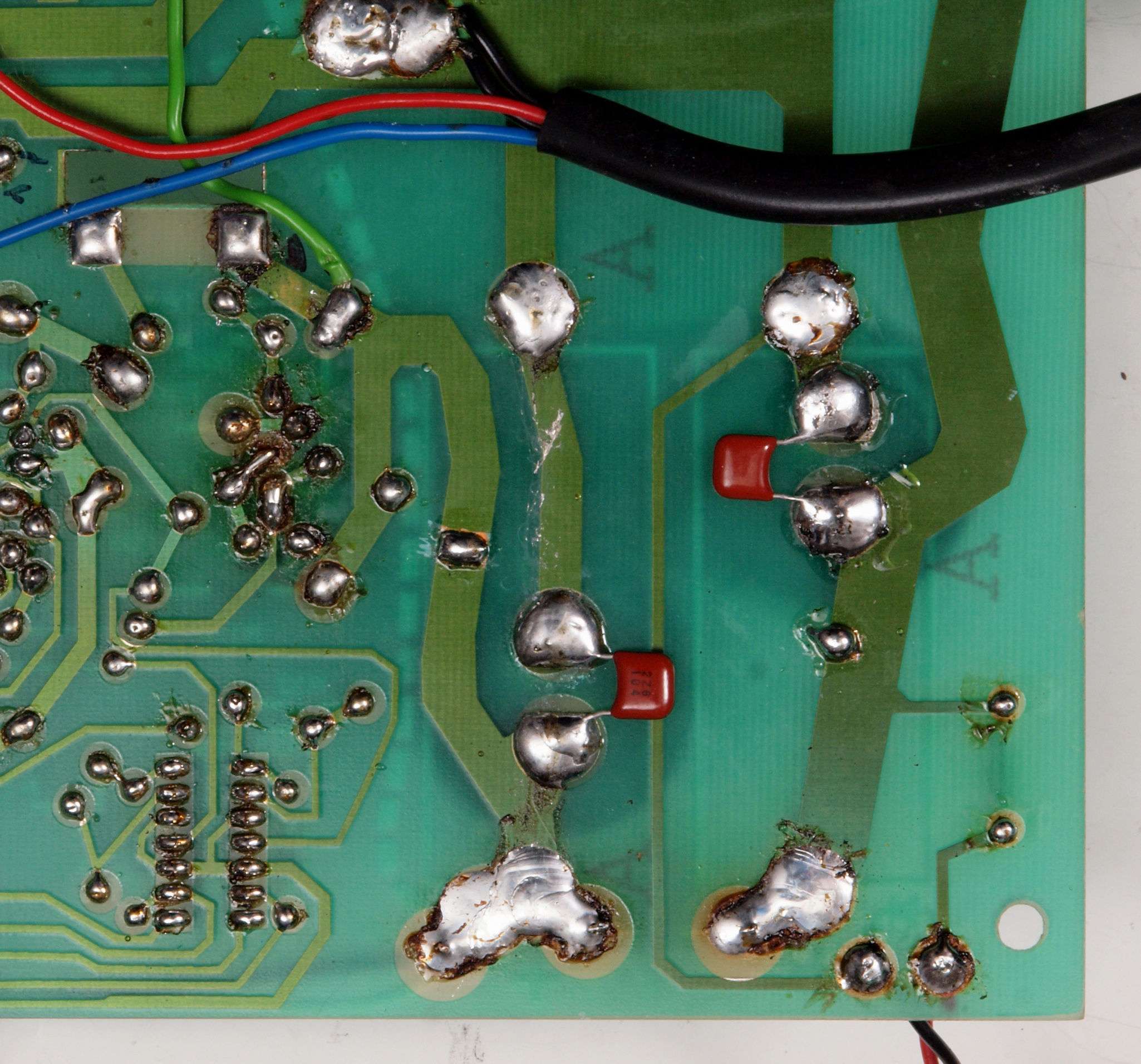 C94. 修理(半田補正)後 +側電源基板裏、 半田を全部やり直す。