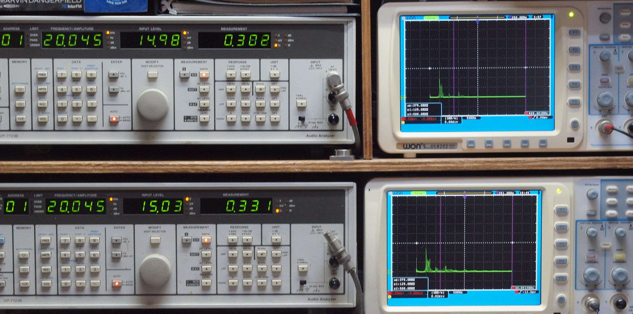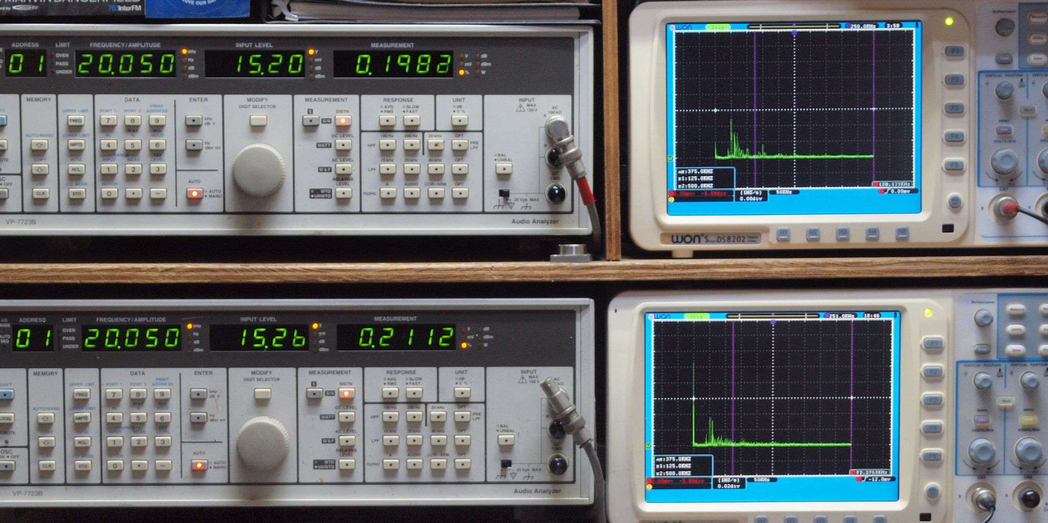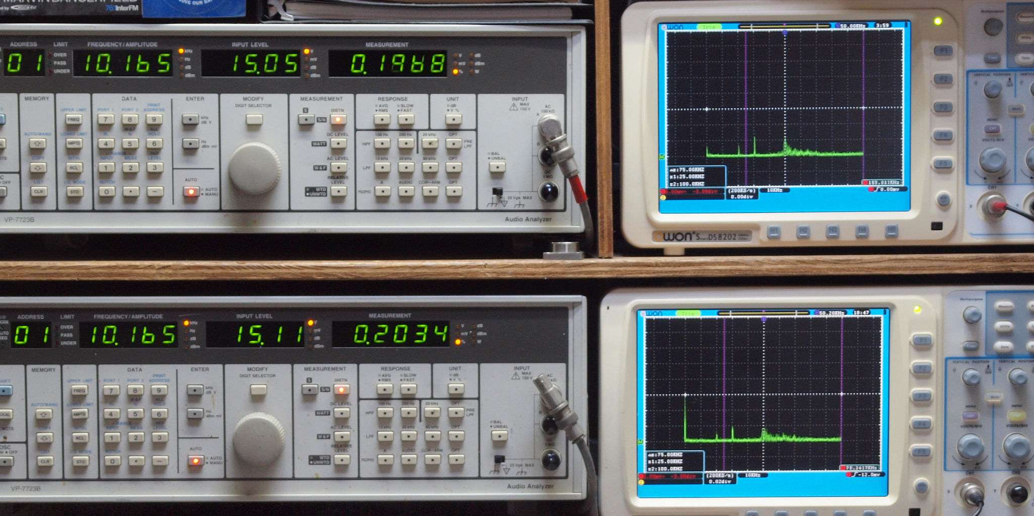 よって、ダイアル設定出力レベルより低くなります。測定機器の仕様や整備の様子はこちら、「VP−7723B」「VP−7201A」。 FFT画面の見方はこちら。