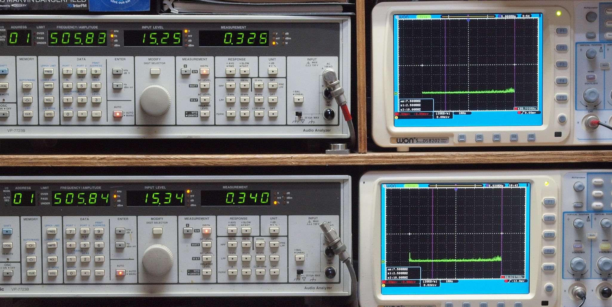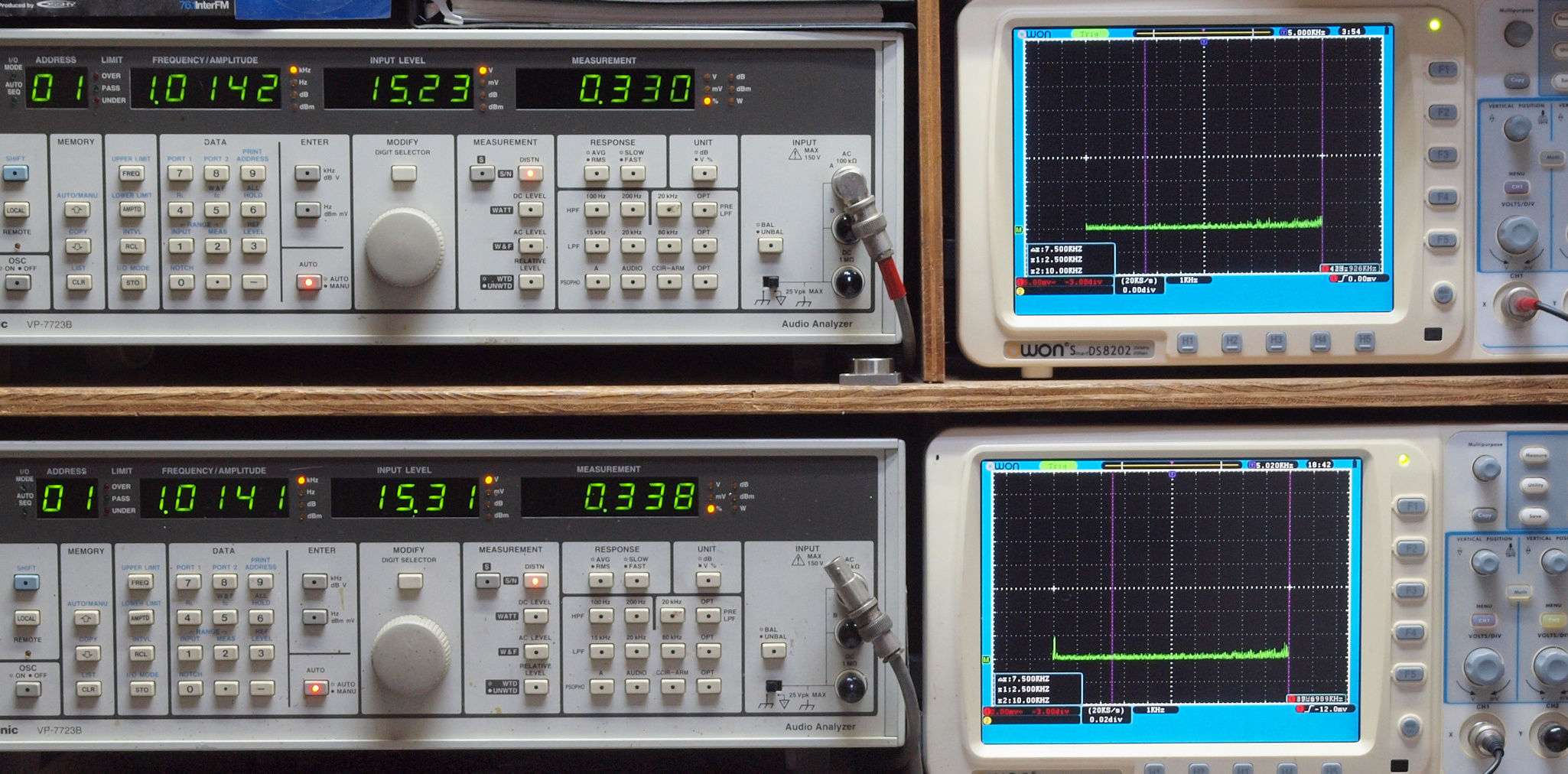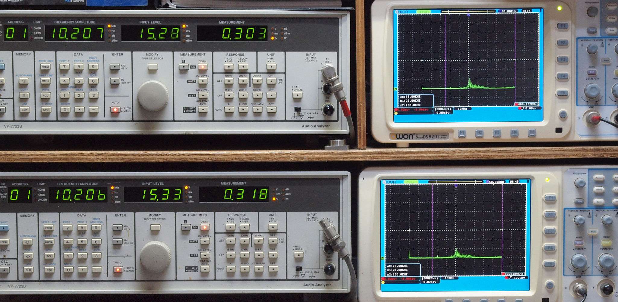 よって、ダイアル設定出力レベルより低くなります。測定機器の仕様や整備の様子はこちら、「VP−7723B」「VP−7201A」。 FFT画面の見方はこちら。