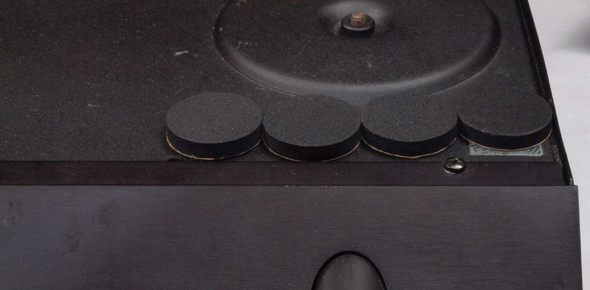 CD2. 修理後 電源トランス下絶縁ゴムが小さいので、厚紙を重ねる。