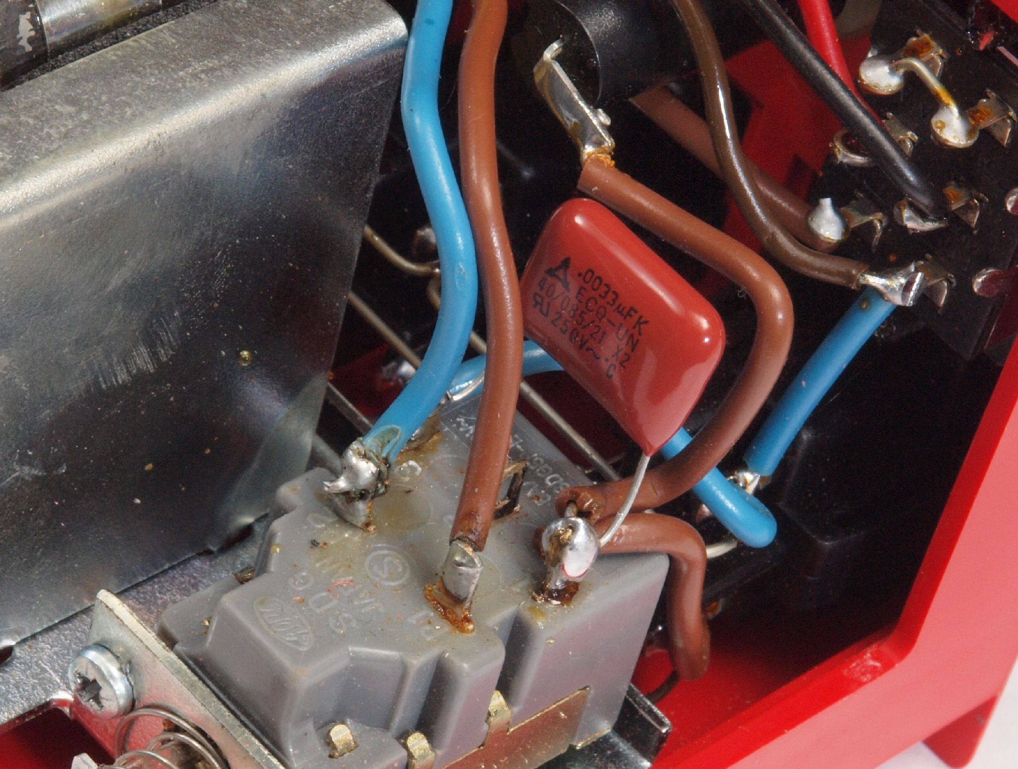 | CD2. 修理中 電源トランス部点検、 フイルムコンデンサーがヒビ割れている。 | ||||||||||||||||||||||||||||||||||||||||||||||||||||