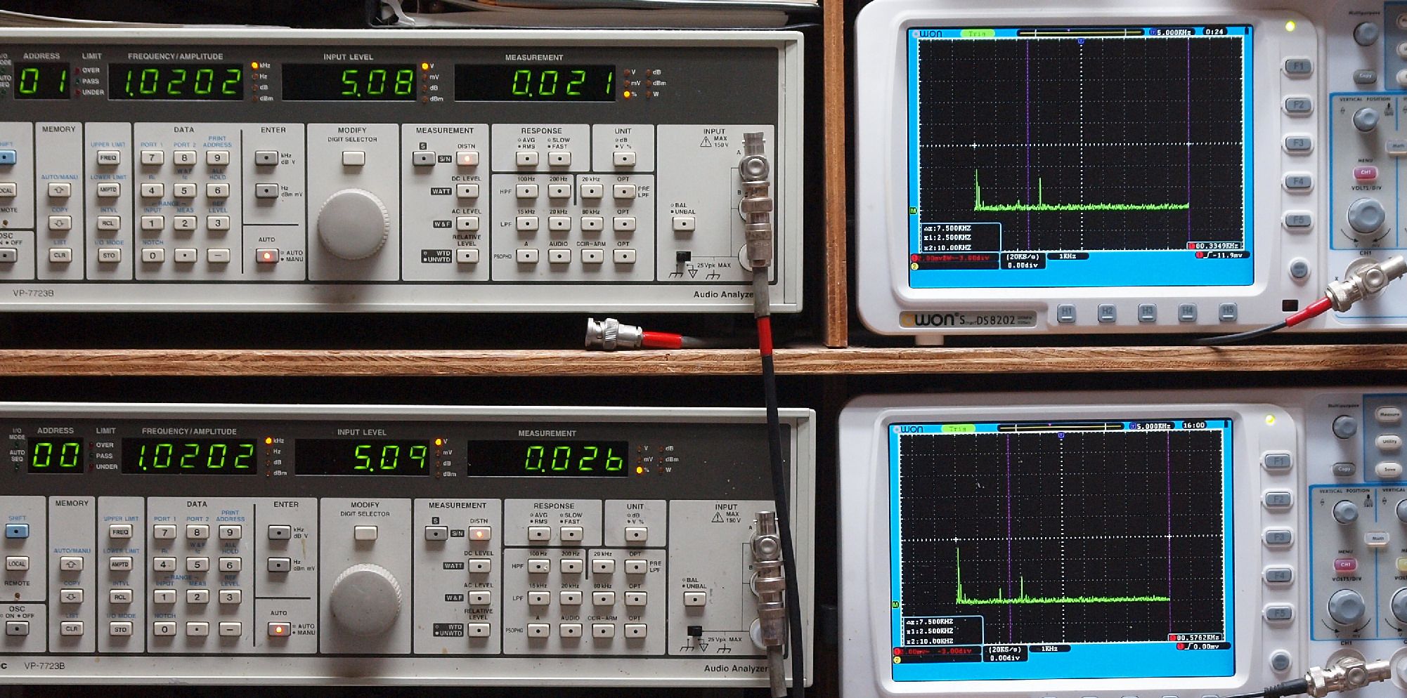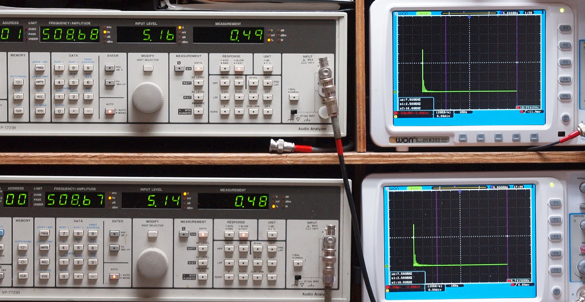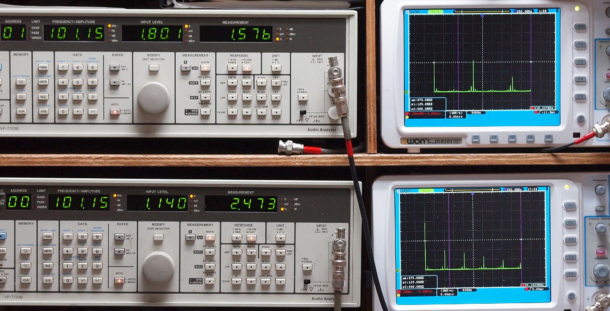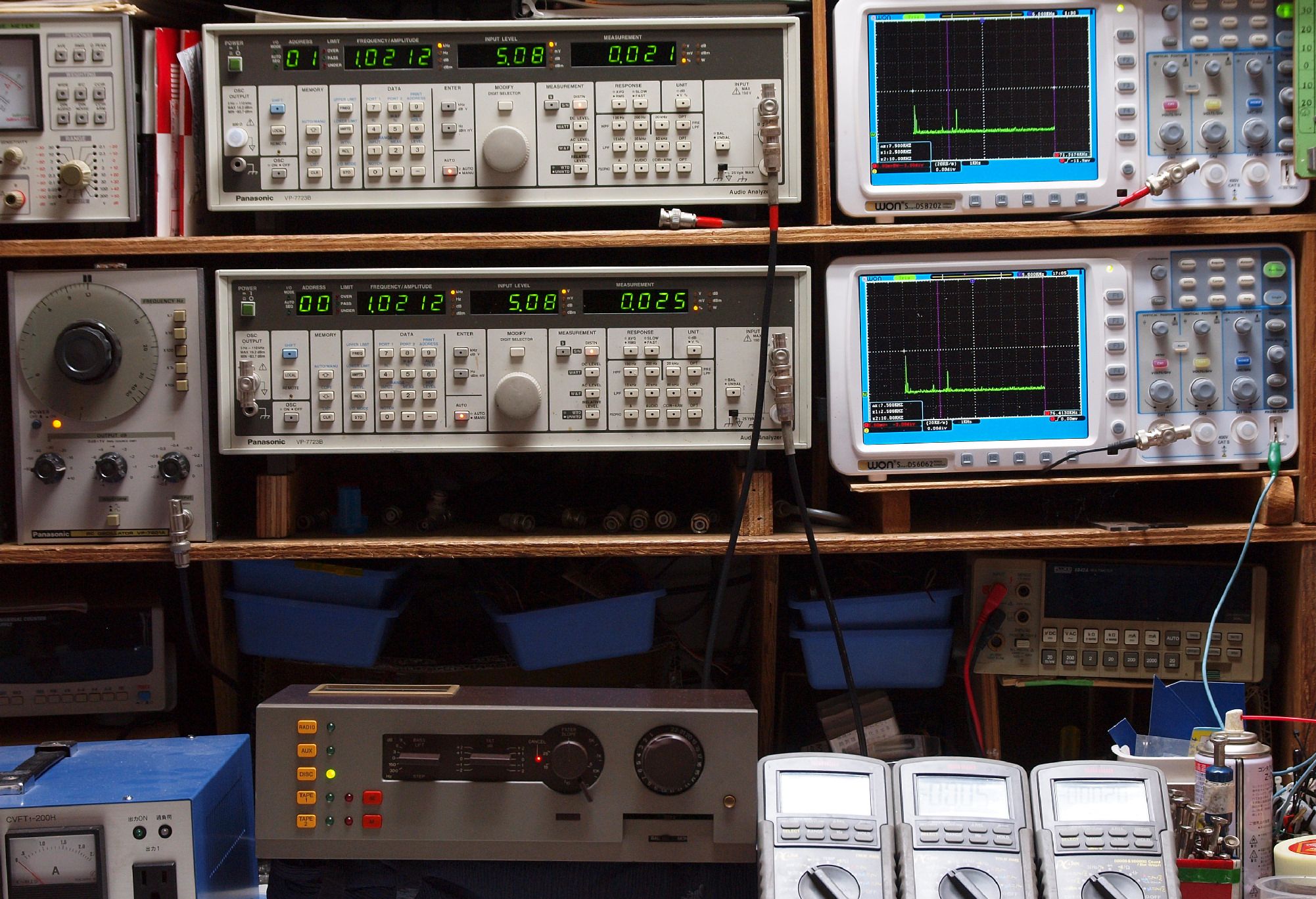 | F. 上位測定機器での調整・測定 F0. 下のオーディオアナライザーVP−7732Aで自動測定。 |