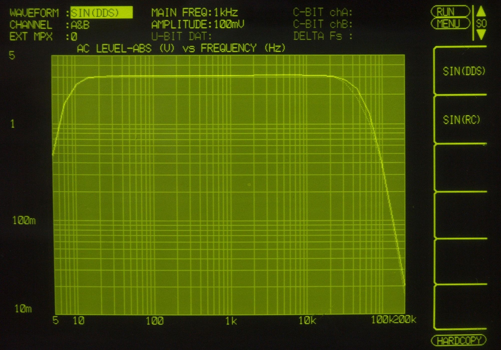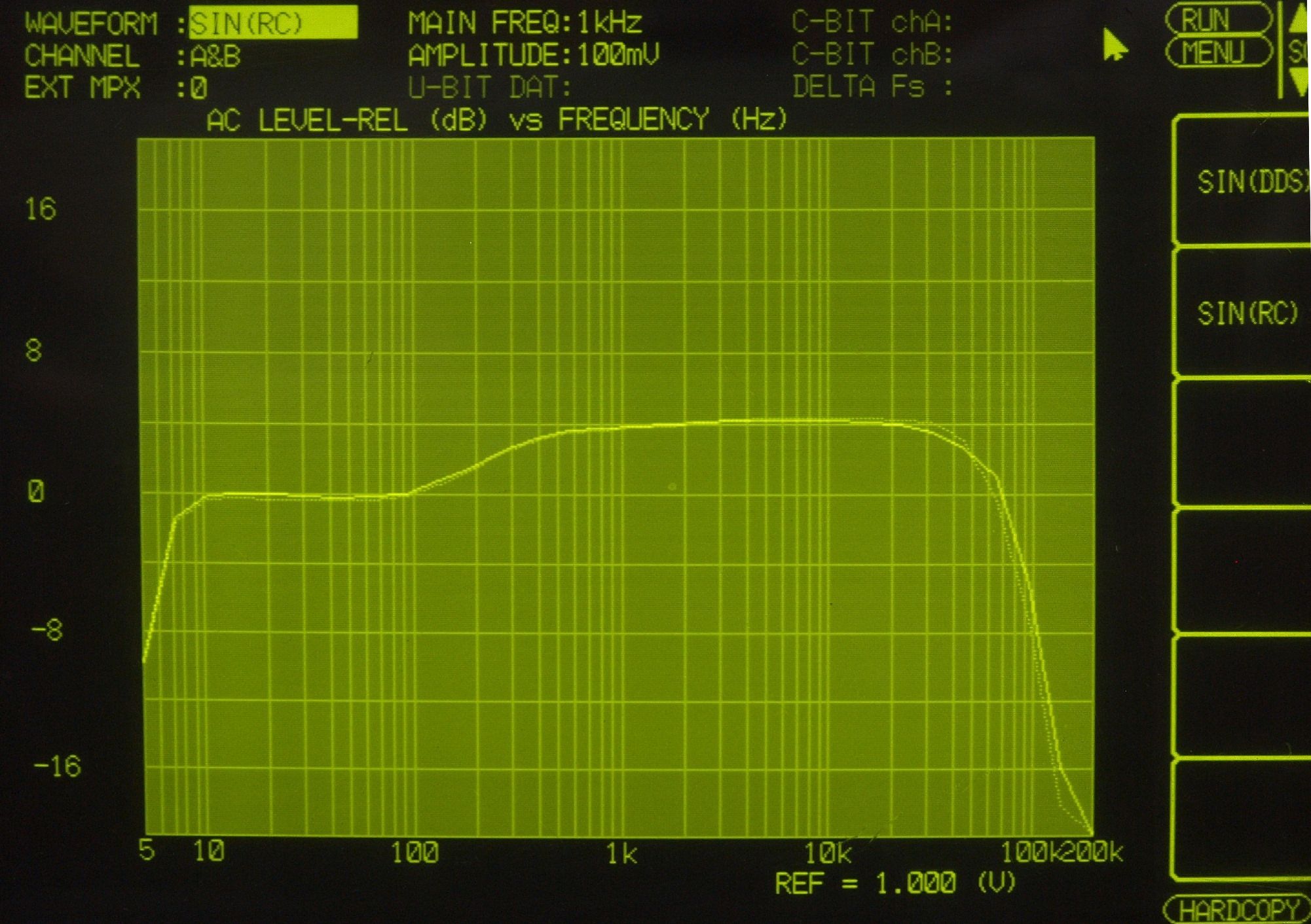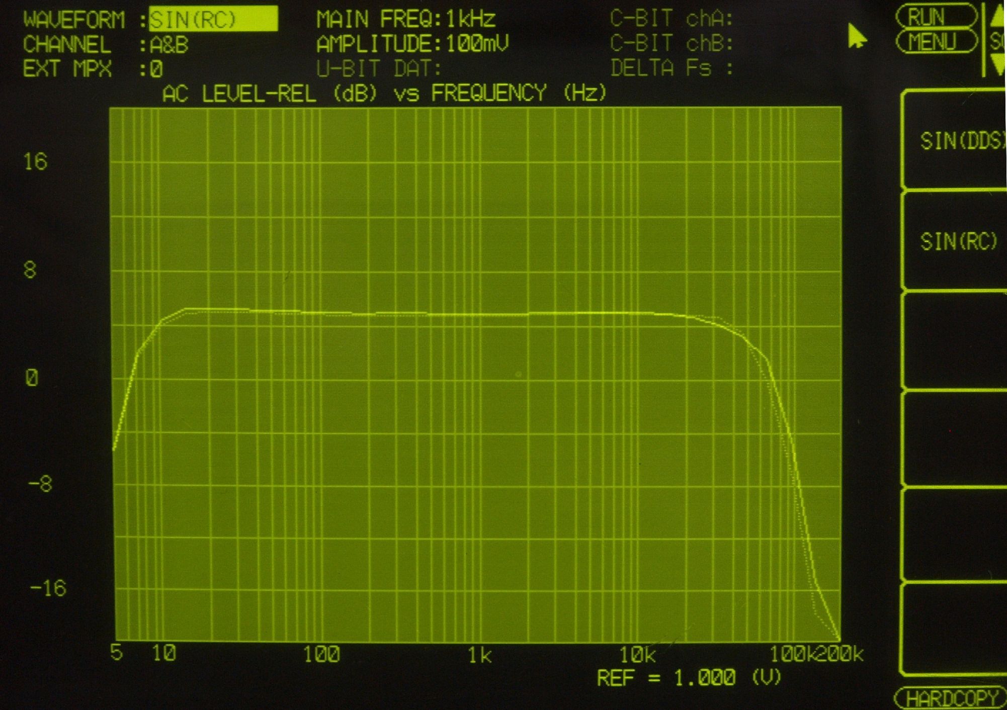 | F9. 入出力特性測定(Radio入力)。 100mVを入力。 Filter=7KHZ Slope=25。 VRはMax位置。 | ||||||||||||||||||||||||||||||||||||||||||||||||||||