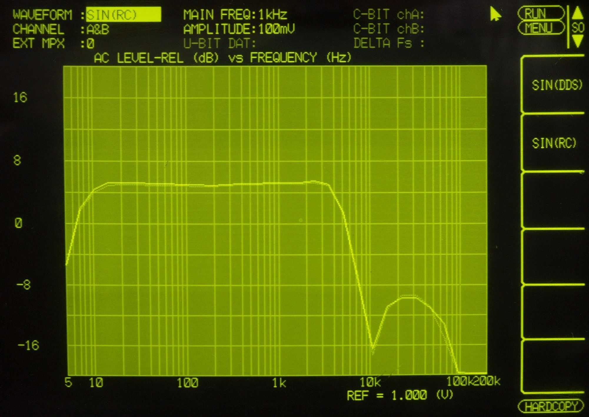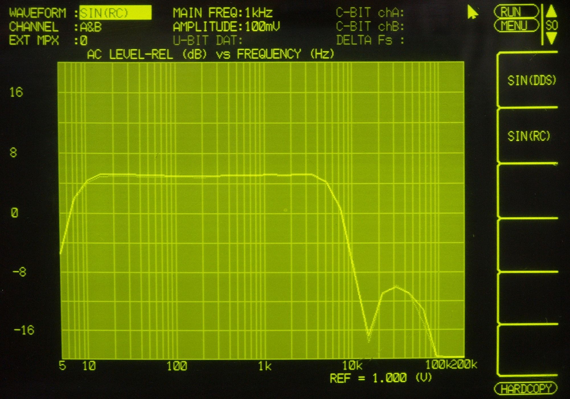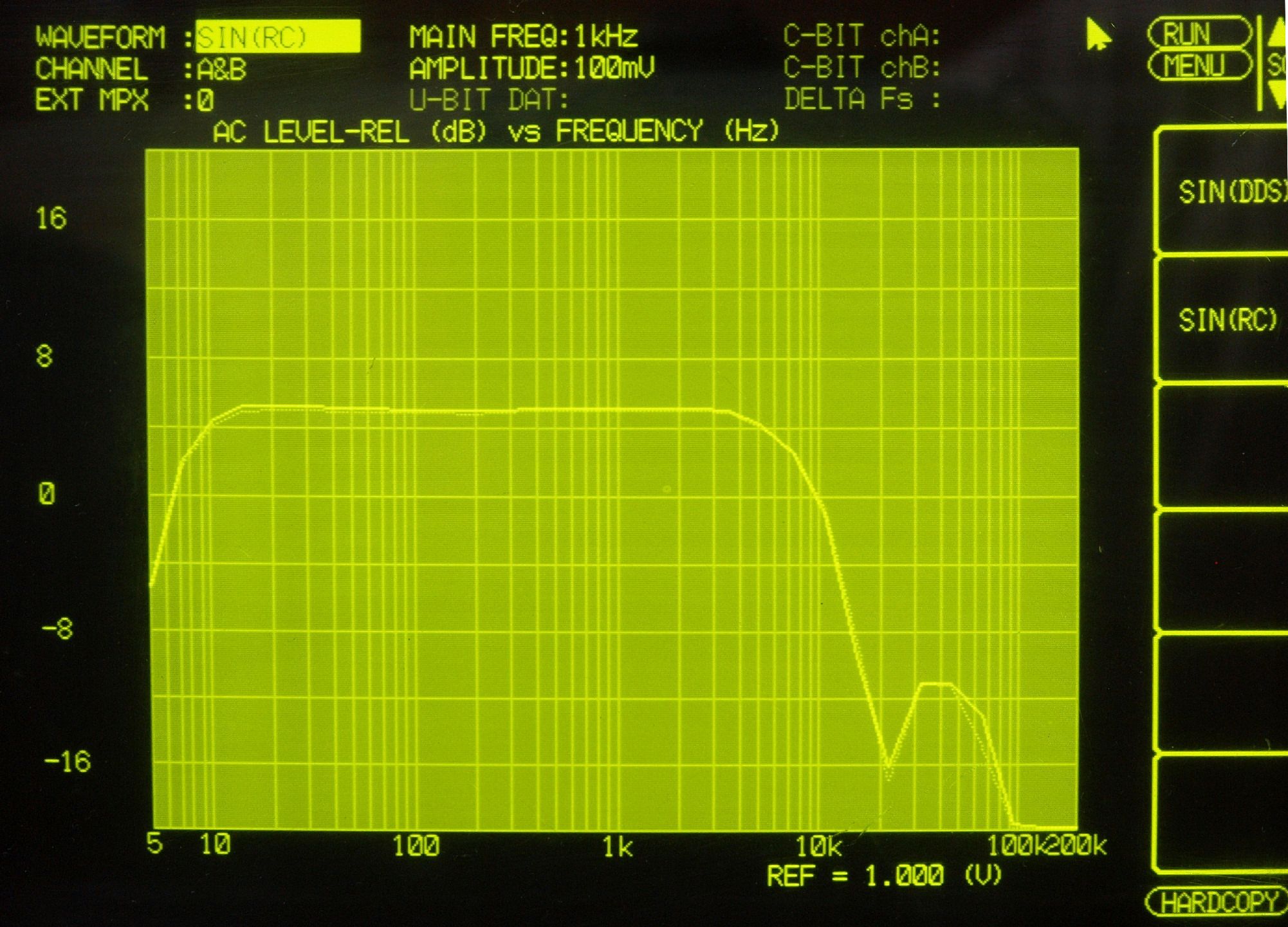 | F8. 入出力特性測定(Radio入力)。 100mVを入力。 Filter=10KHZ Slope=25。 VRはMax位置。 | ||||||||||||||||||||||||||||||||||||||||||||||||||||