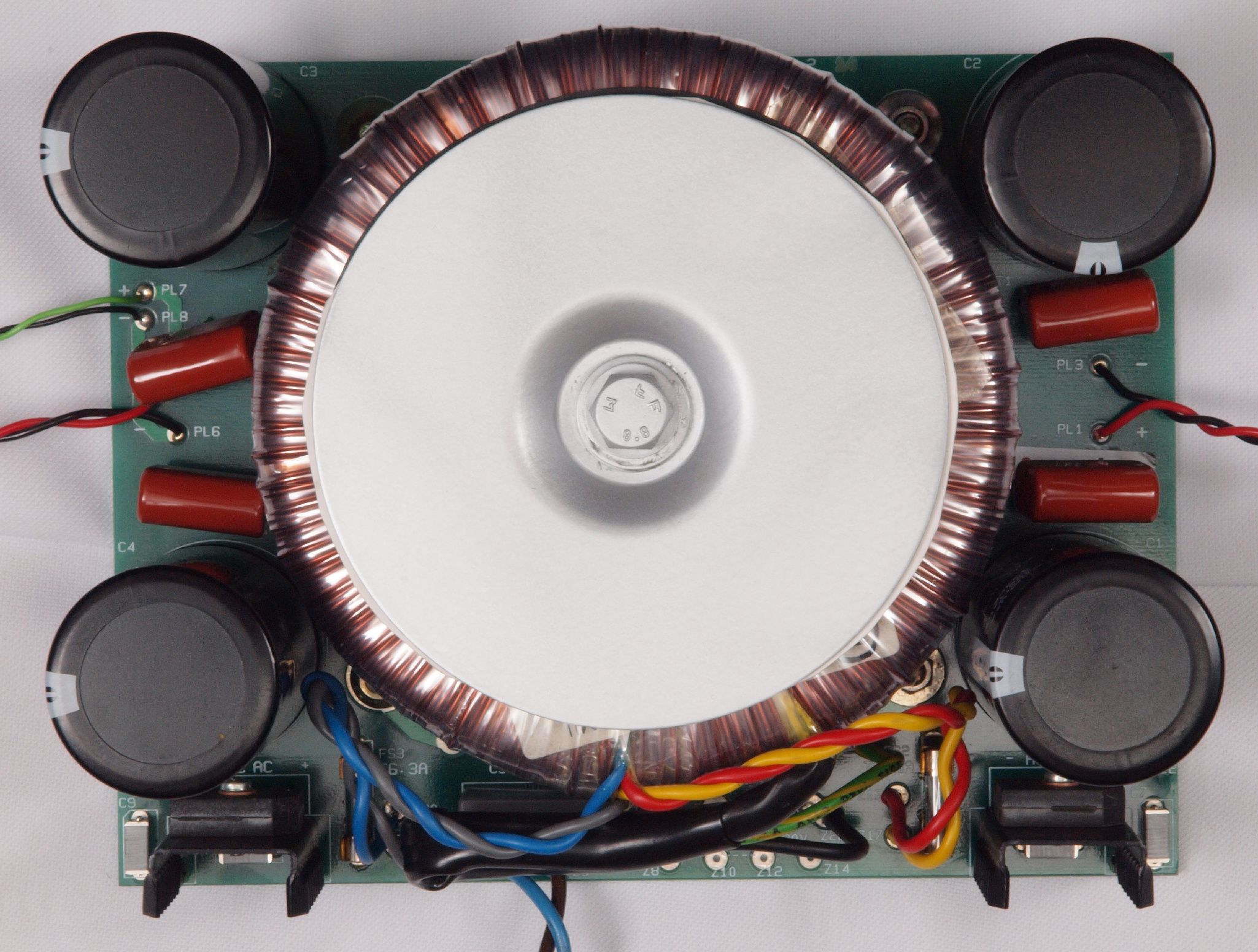| C32. 修理後 電源基板。 電解コンデンサー4個交換、フイルムコンデンサー4個追加。 | ||||||||||||||||||||||||||||