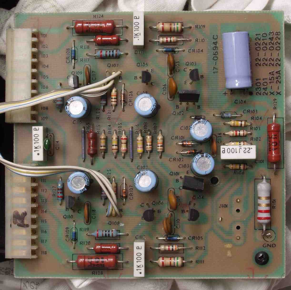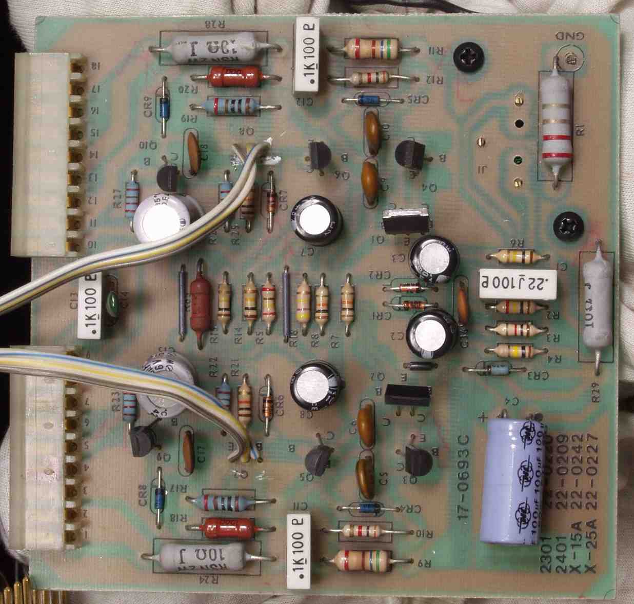 C3D. 修理後 R側ドライブ基板 電解コンデンサー7個、複合TR(トランジスター)2個交換
