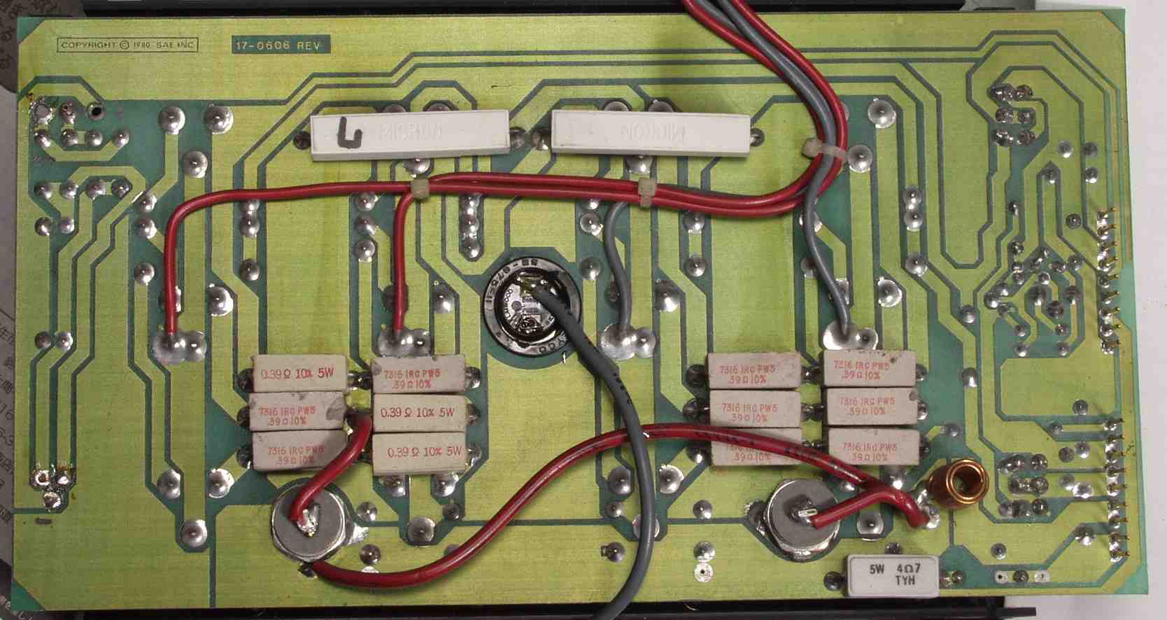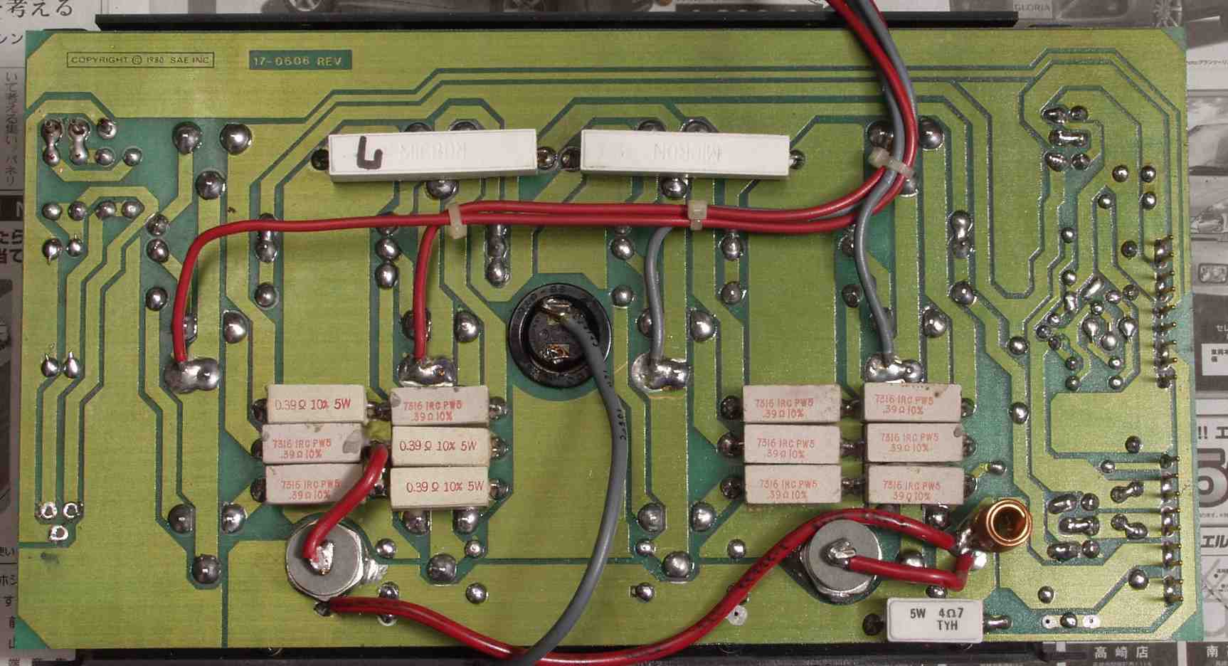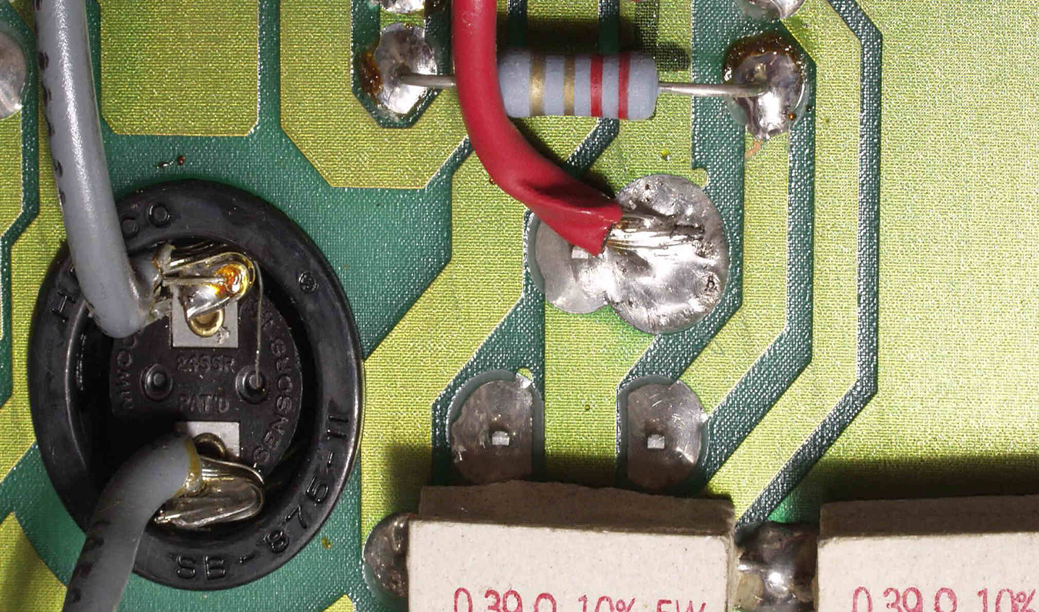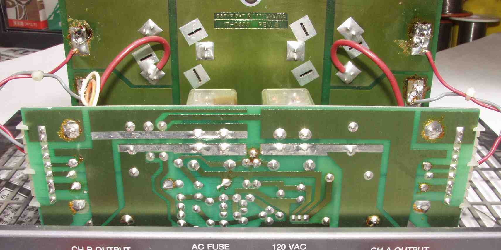 C3A1. 修理前 R側終段基板 ハンダが雑、ひげが出ている