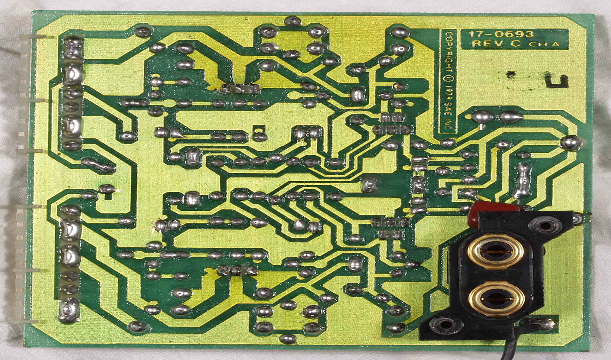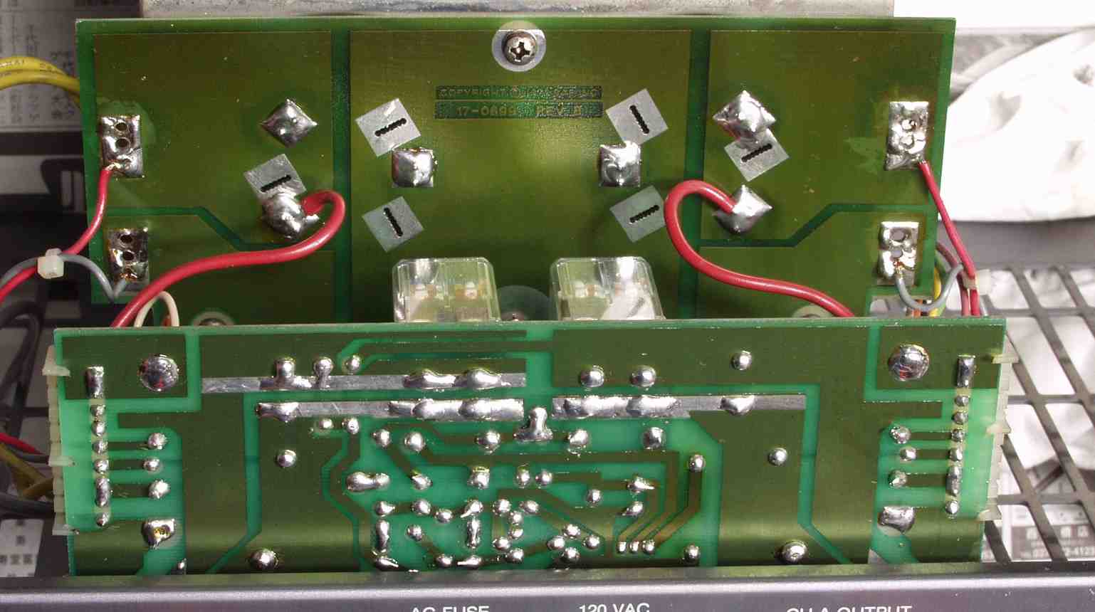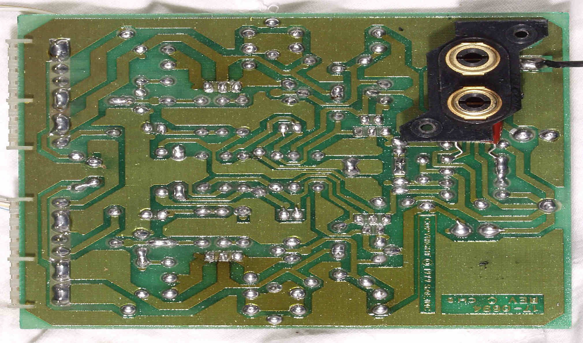 C2E. 修理(ハンダ補正)後 SP接続・プロテクト基板裏+電源電解コンデンサー基板裏