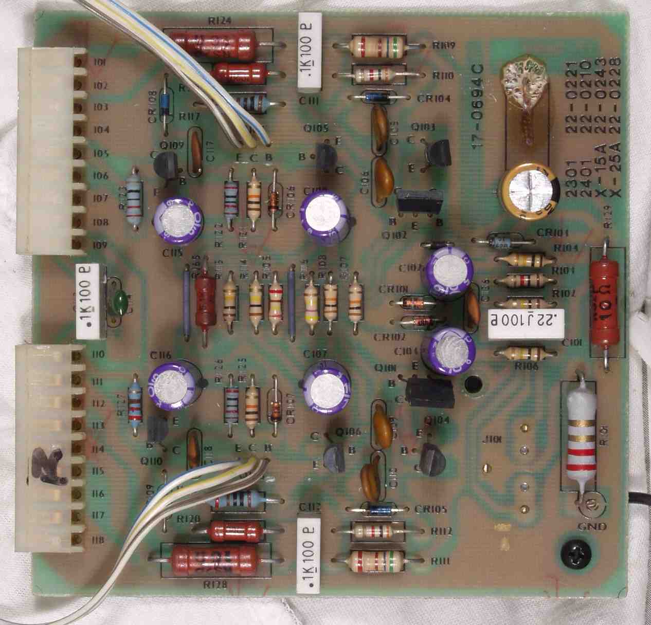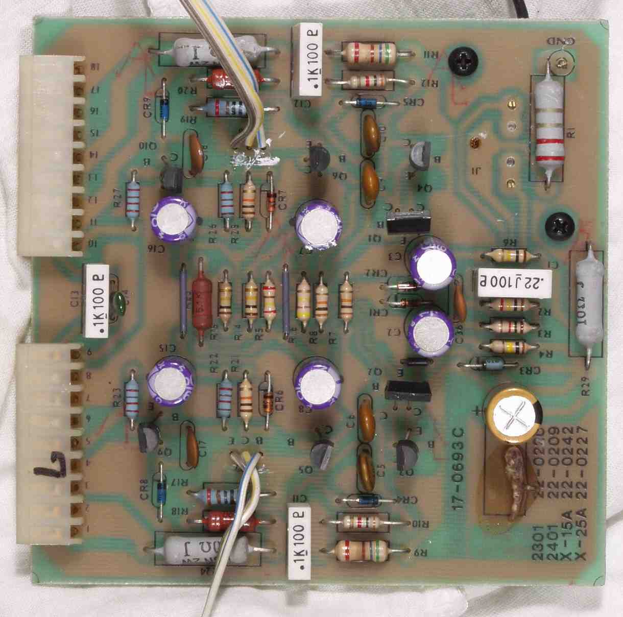 C4D. 修理後 L側ドライブ基板 電解コンデンサー7個、複合TR(トランジスター)2個交換