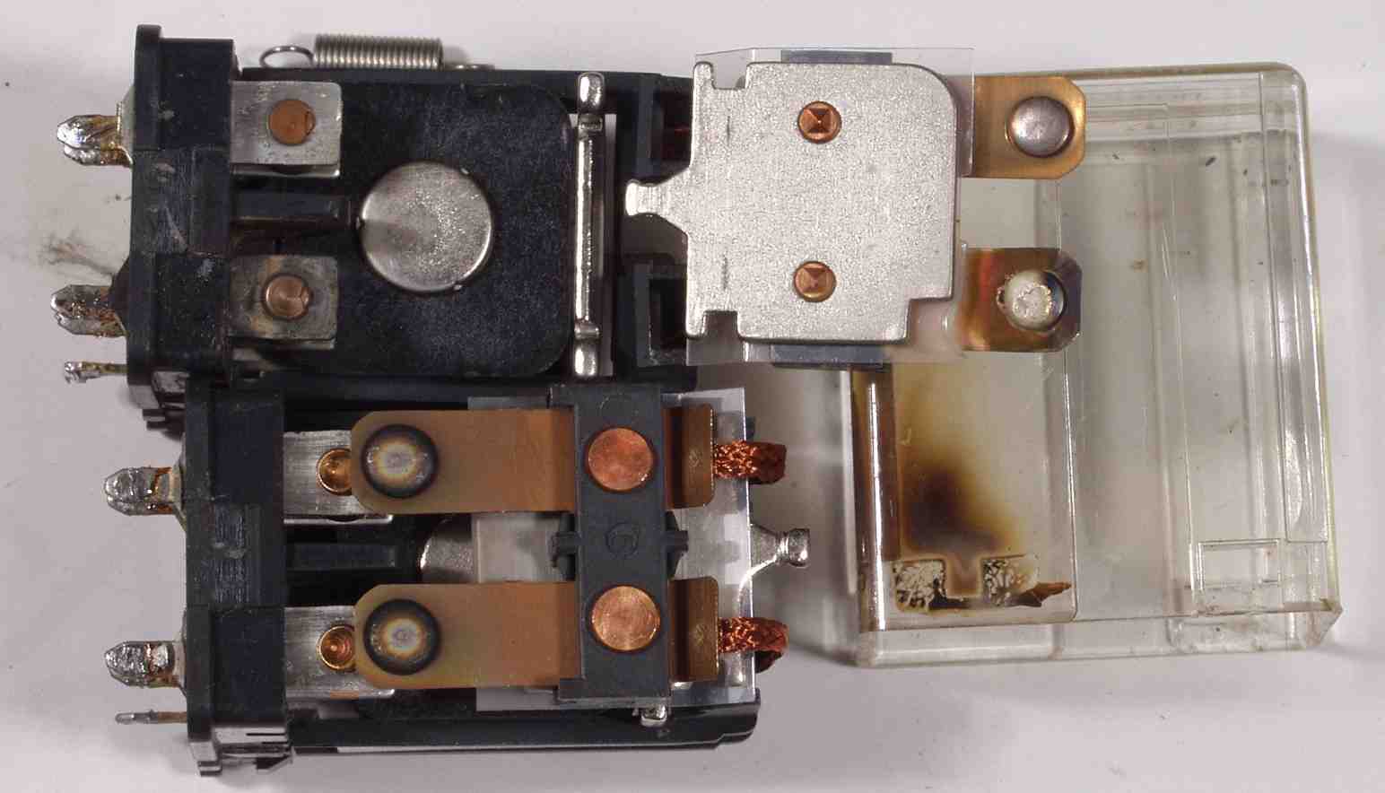 C5A. SP接続リレーを解体する。 接点だけでなく、可動片まで熱で劣化しているのが解る