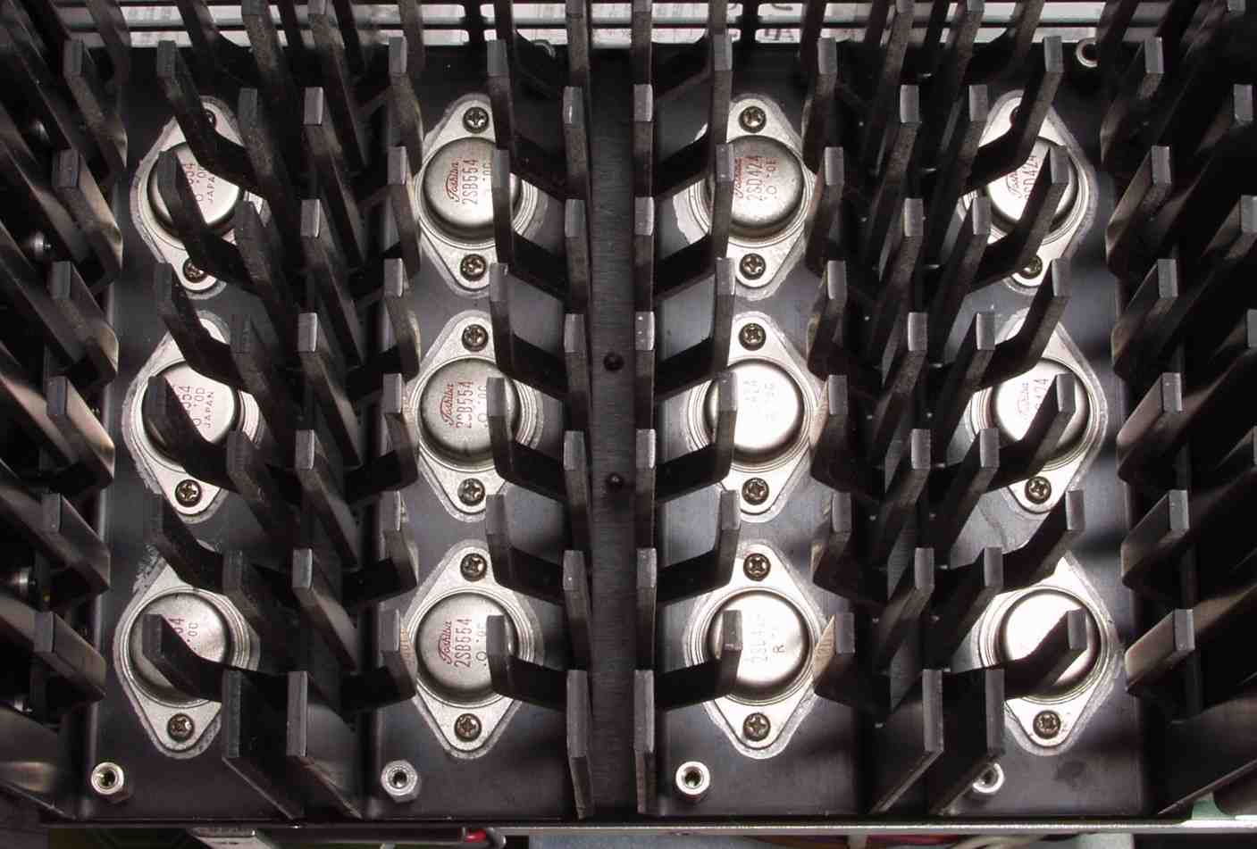 A3. 点検中 終段TR(トランジスター)は全て東芝製品で片側6パラ・プシュで12個使用 よって左右で24個
