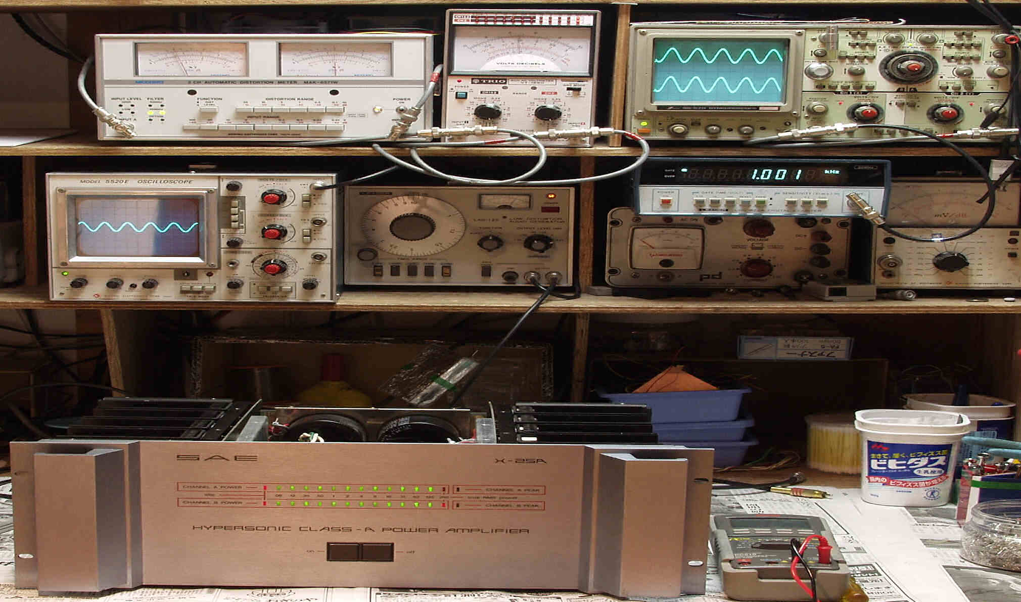 上左=SP出力の歪み率測定 左メ−タ−=L出力、右メ−タ−=R出力