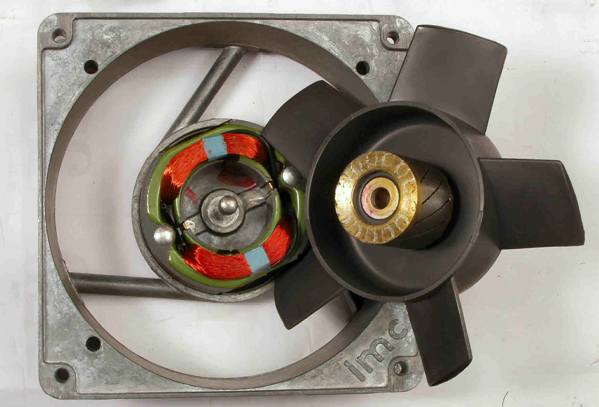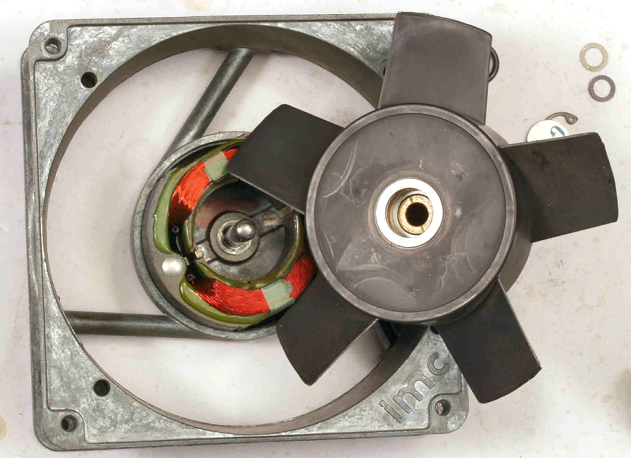 A14. 点検中 前パネルを取る、大型のインダクションモーターの冷却フアン。 よって「ON/OFF」制御