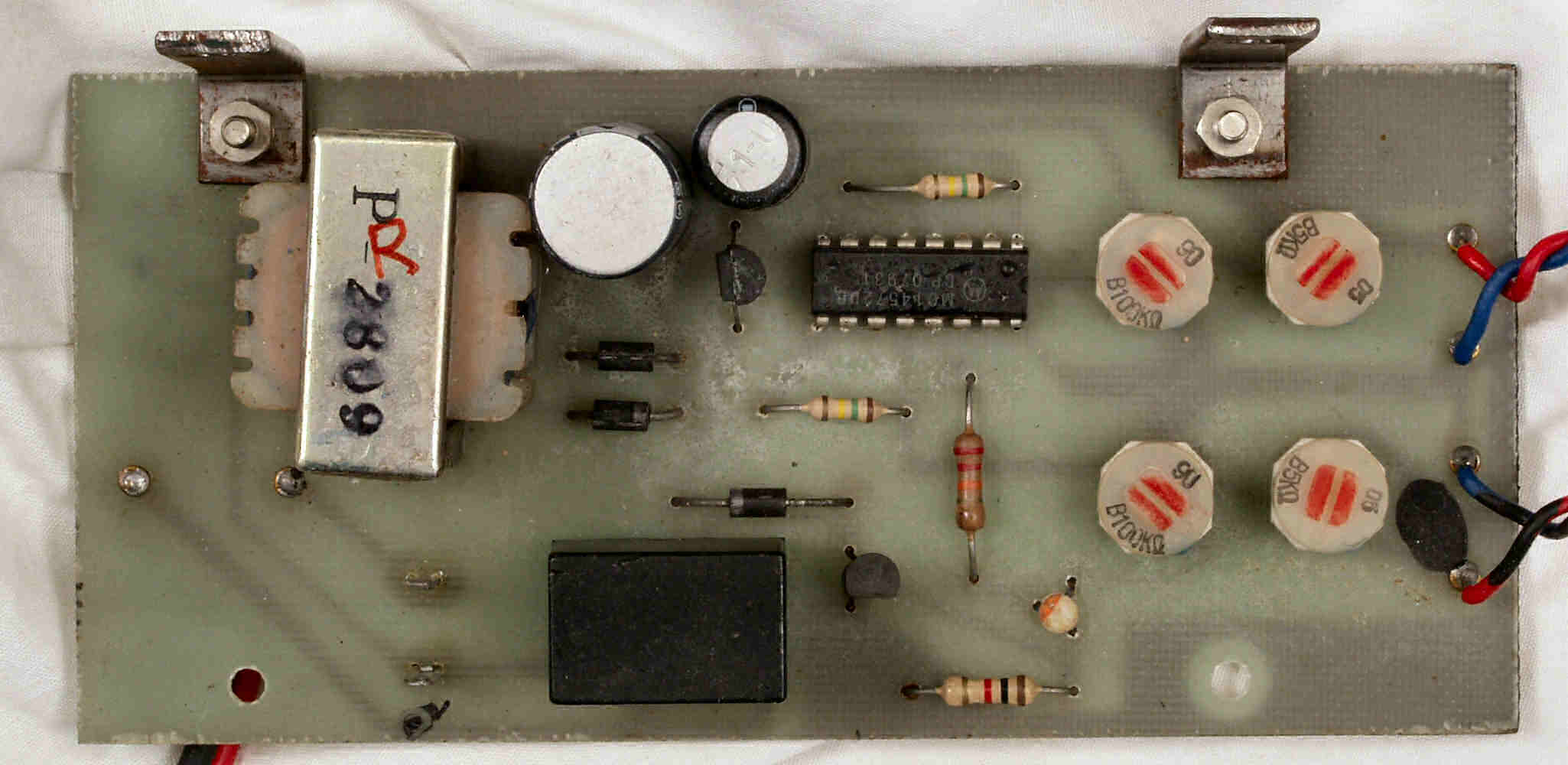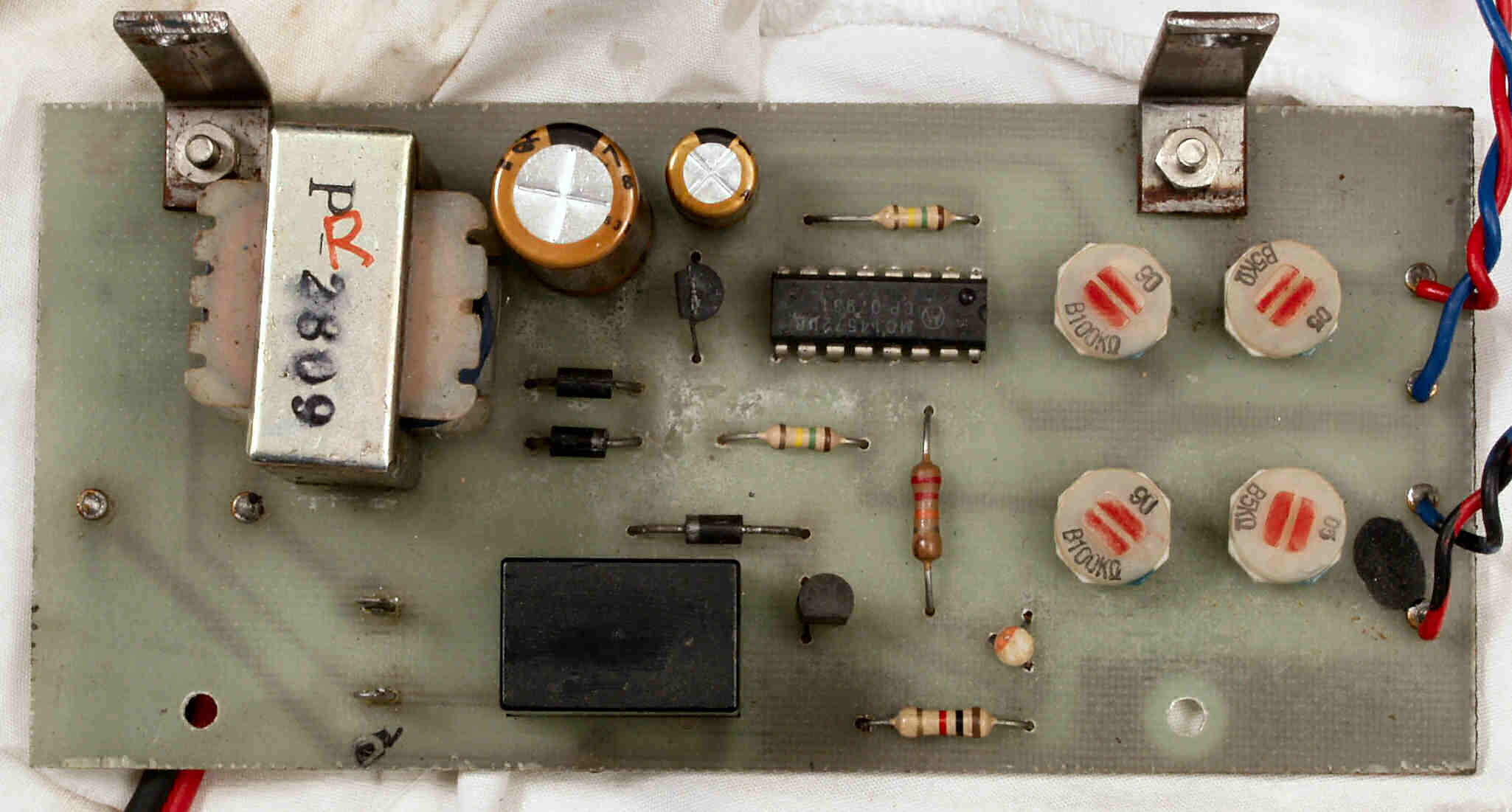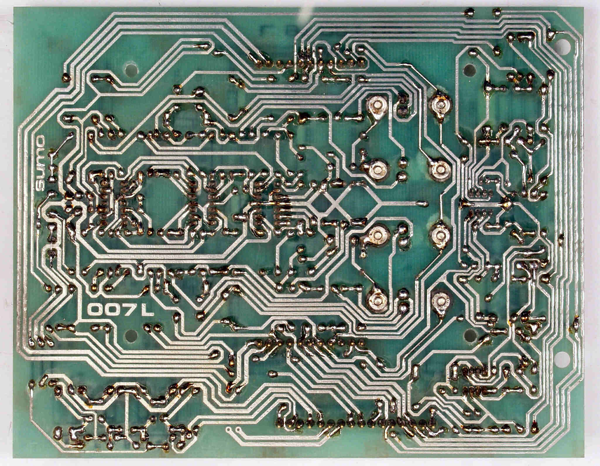 C68. 修理(半田補正)後 L「−」側−終段TR(トランジスター)基板裏、 半固定VR1個交換