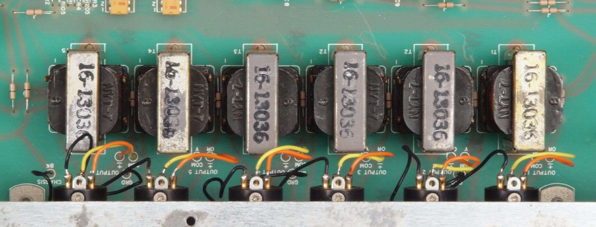 A19. 点検中 天板を取り、上から見る。出力にはマッチィングトランスが使用されている。