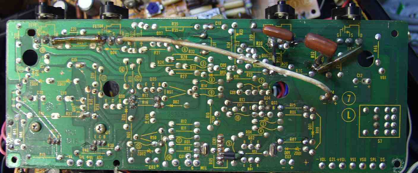 C2D. 修理(半田補正)後 Lドライブ基板裏 全ての半田をやり修す
