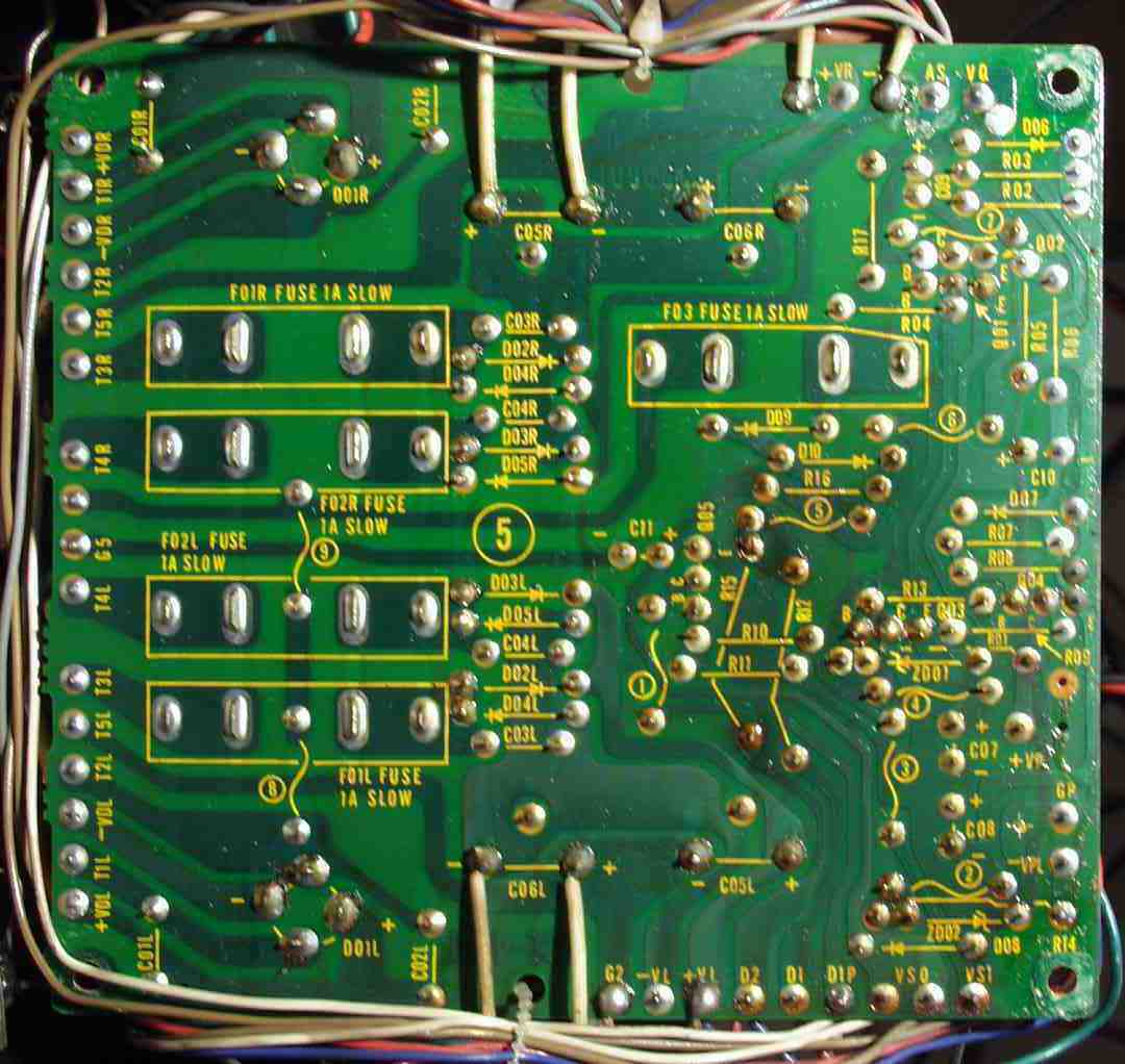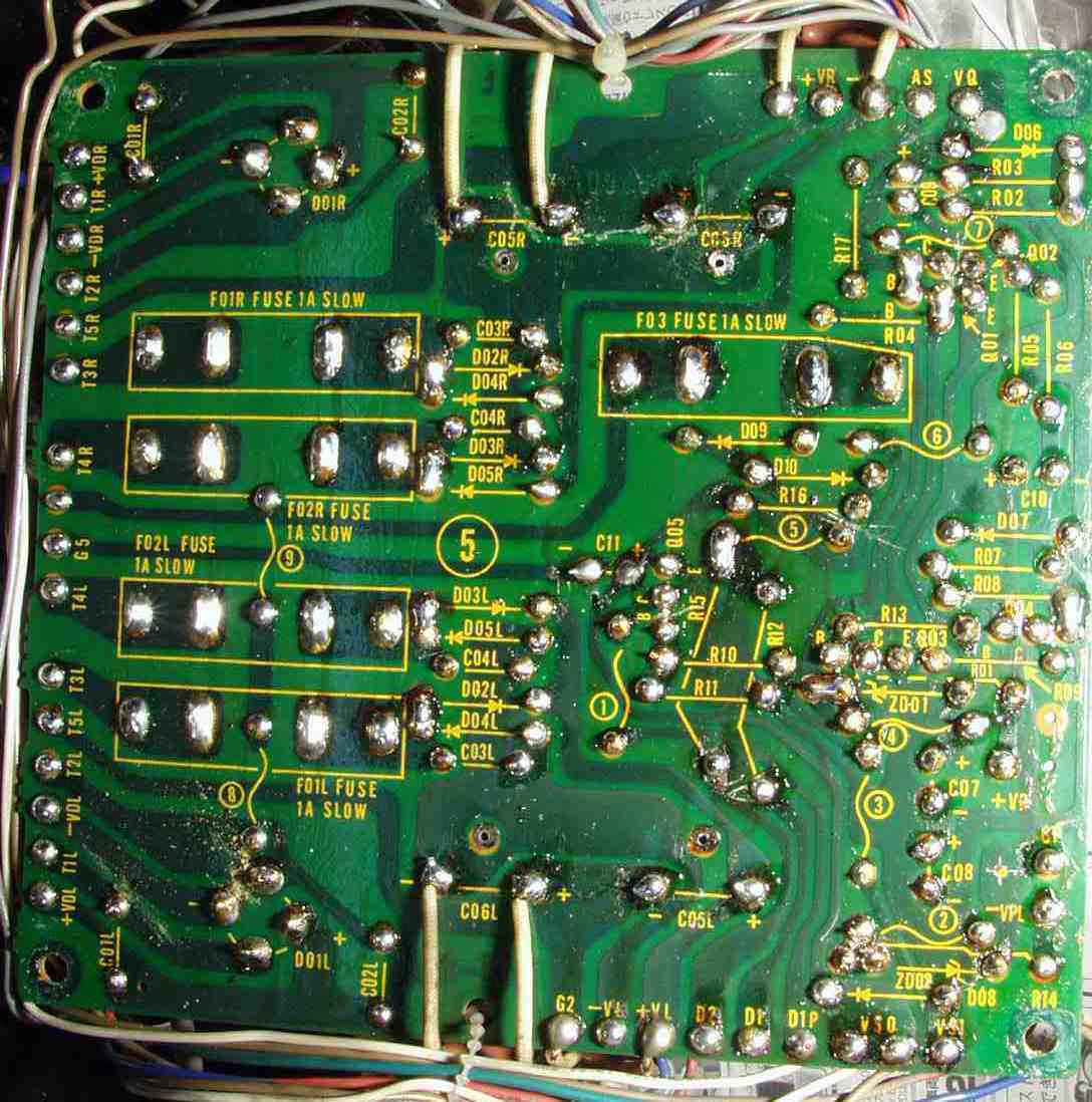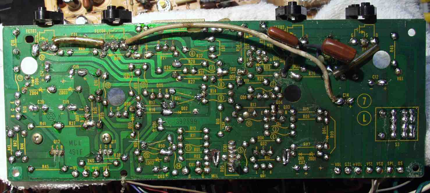 C4D. 修理(半田補正)後 電源基盤裏  全ての半田をやり修す