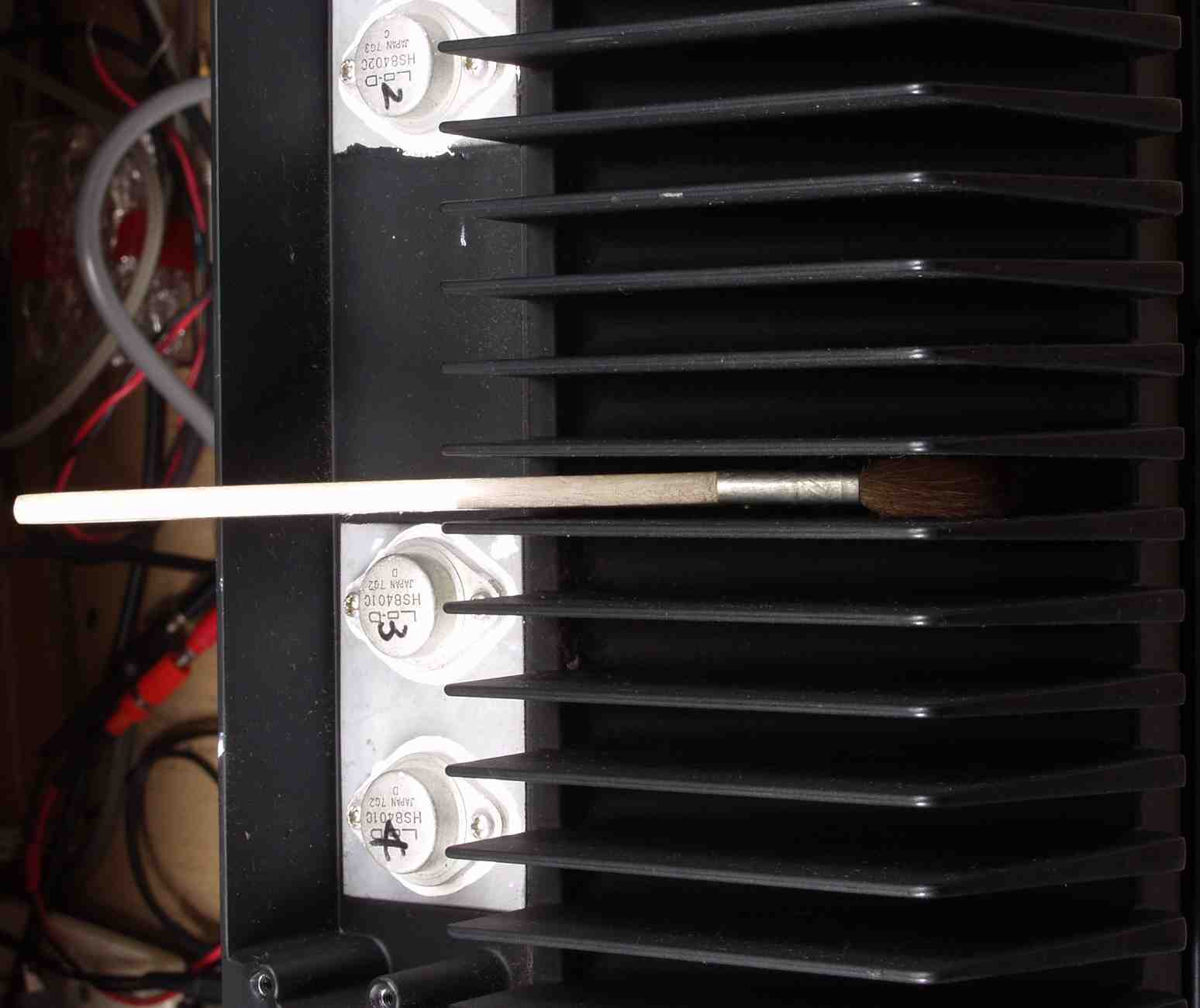 | A4A. 修理前点検 ヒートシンクの埃、真ん中2本以外は下記の刷毛で取った |
