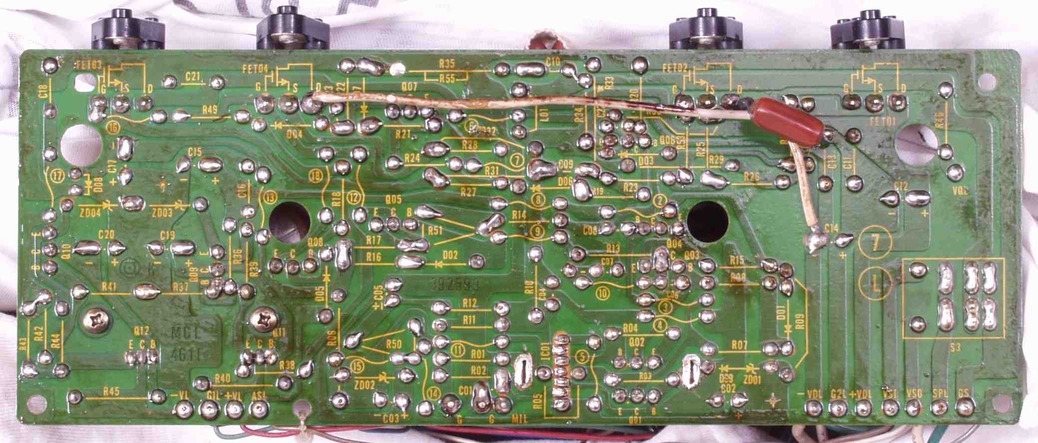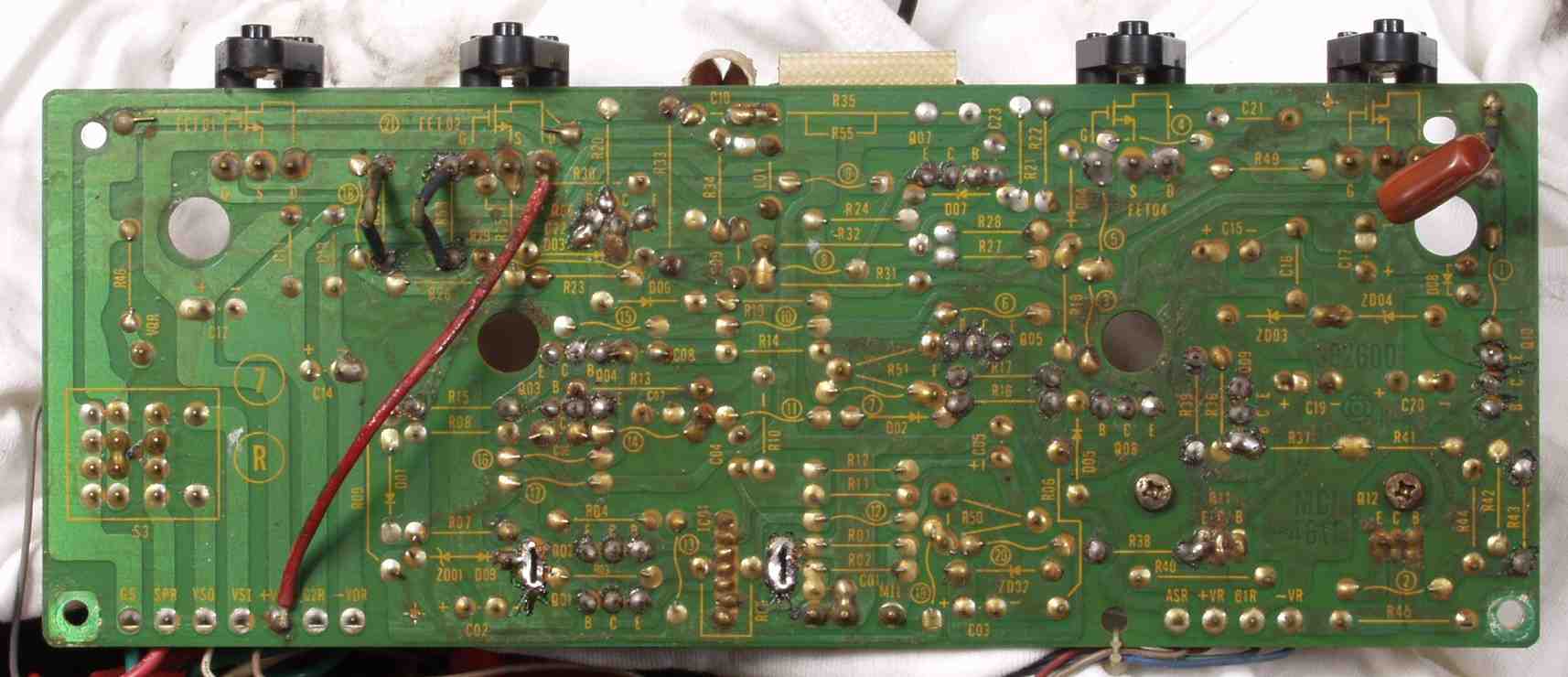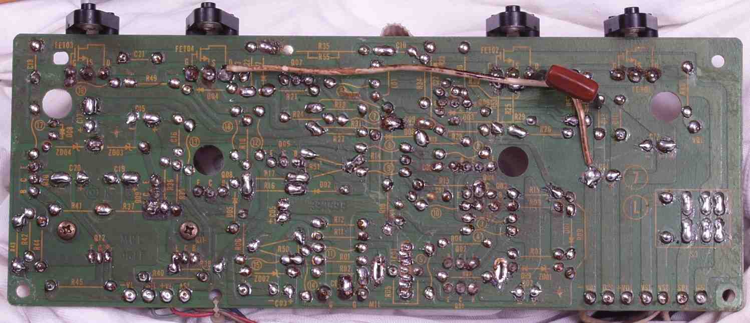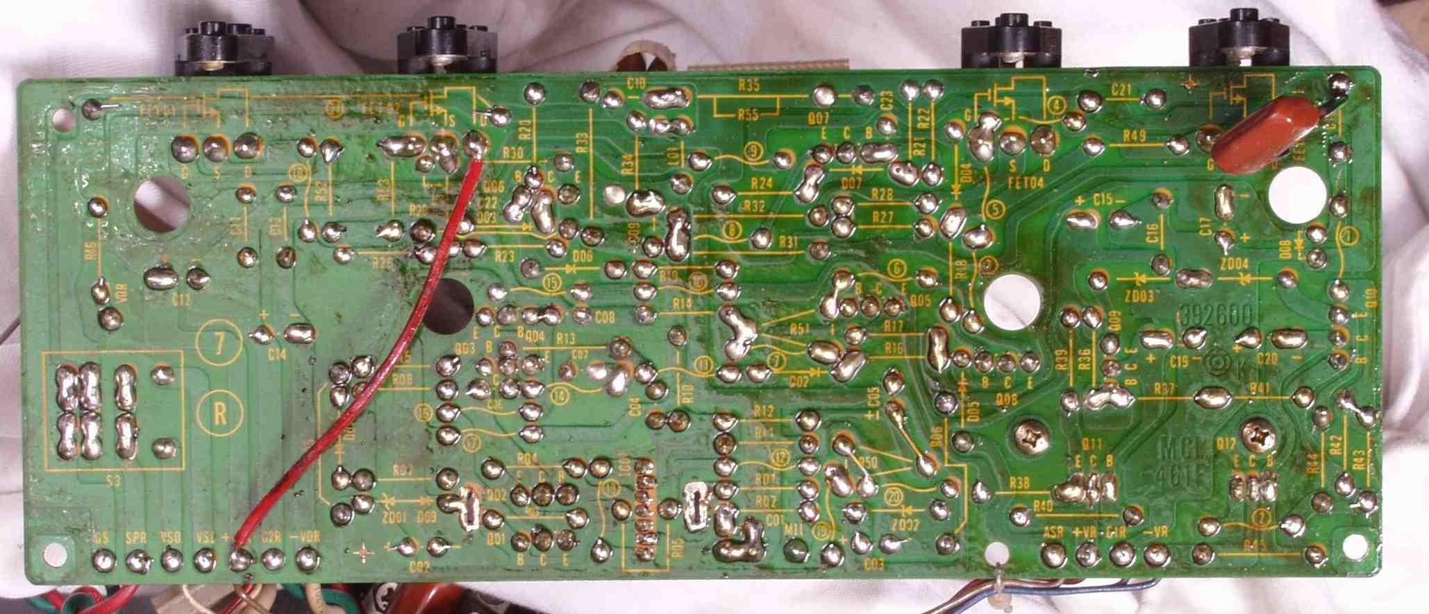 | C2D. 修理(半田補正)後 Rドライブ基板裏 全ての半田をやり修す |