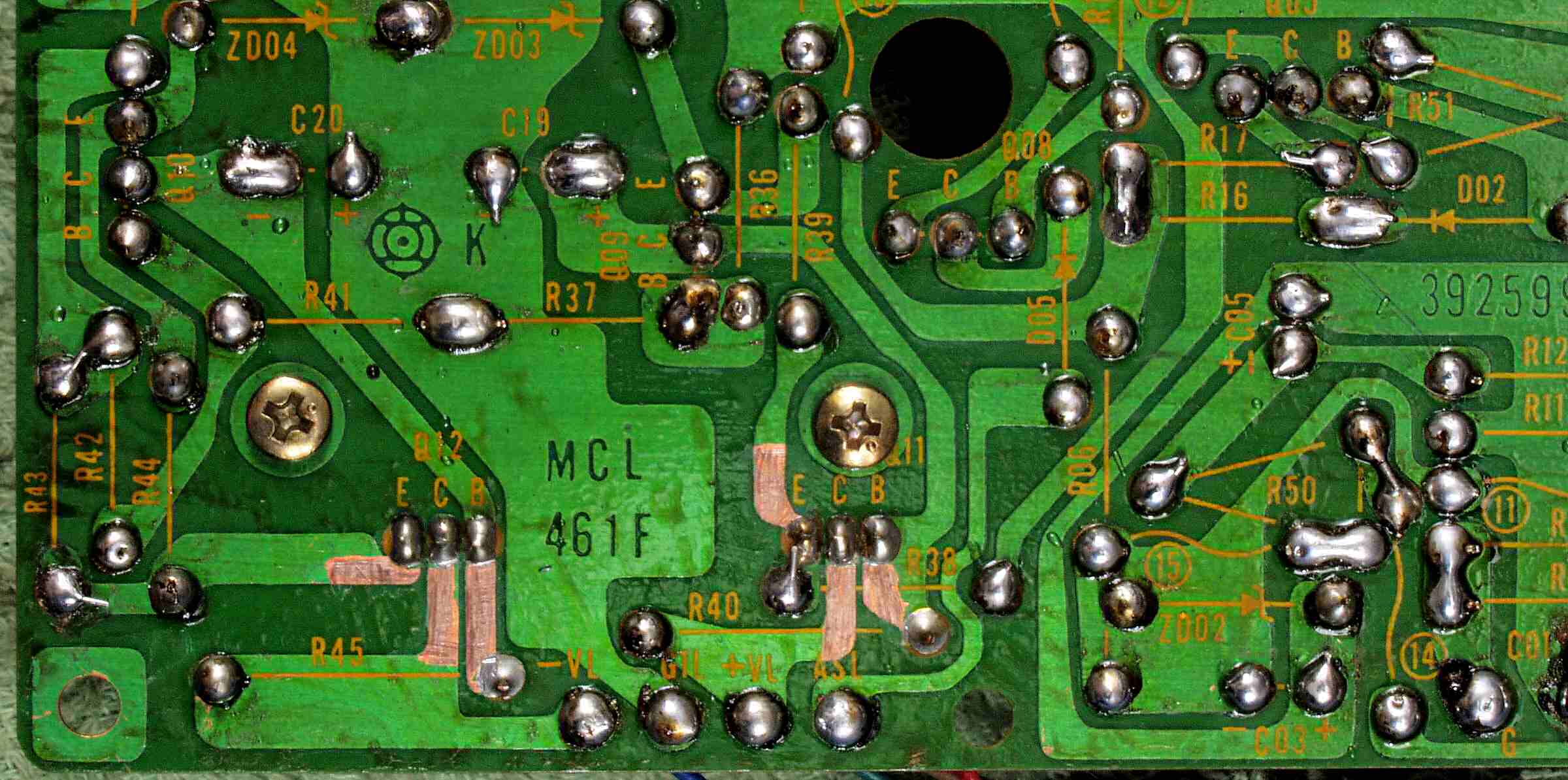 | C24. 修理(半田補正)後 L側ドライブ基板裏 半田を全部やり直す。 普通はこれで完成。 |