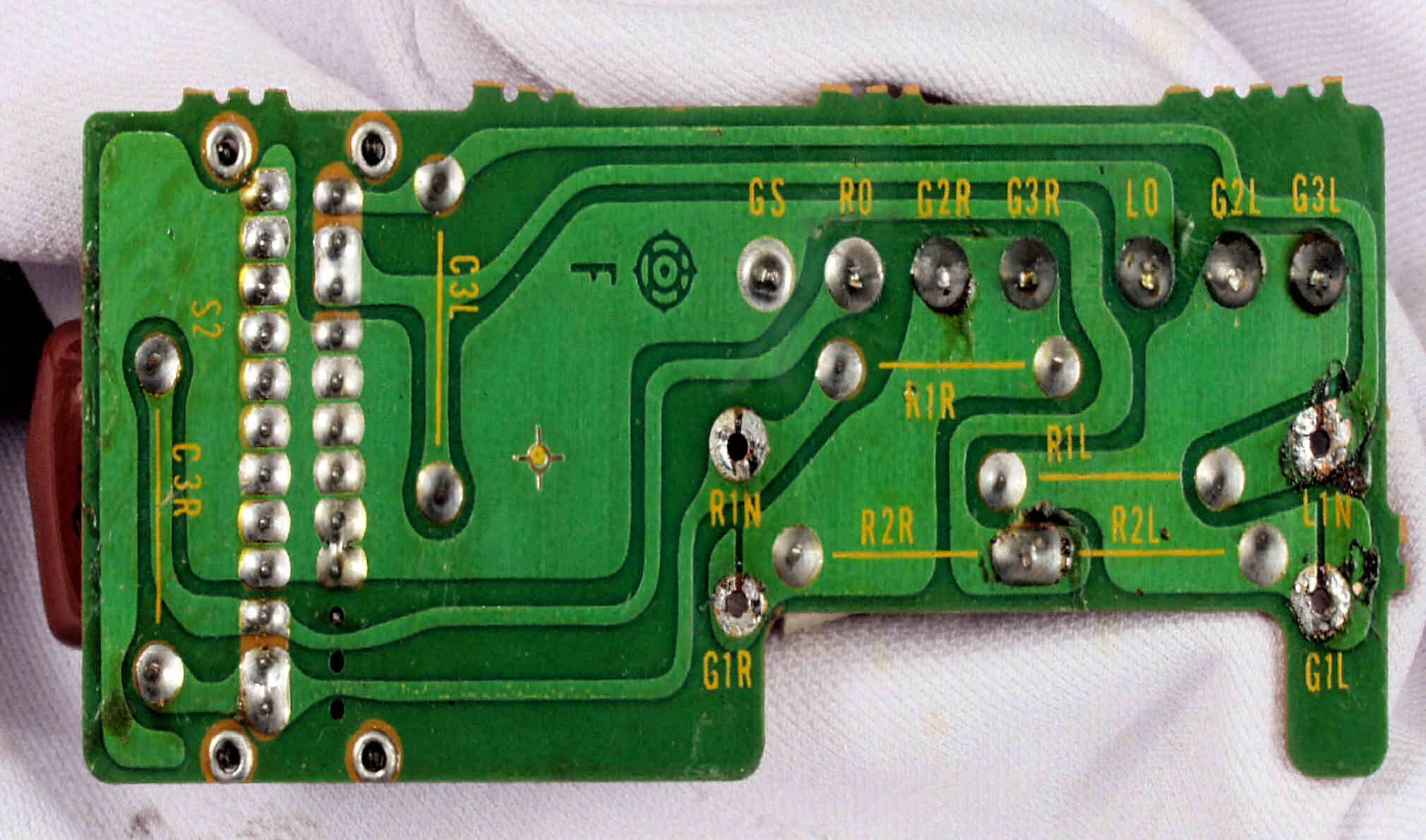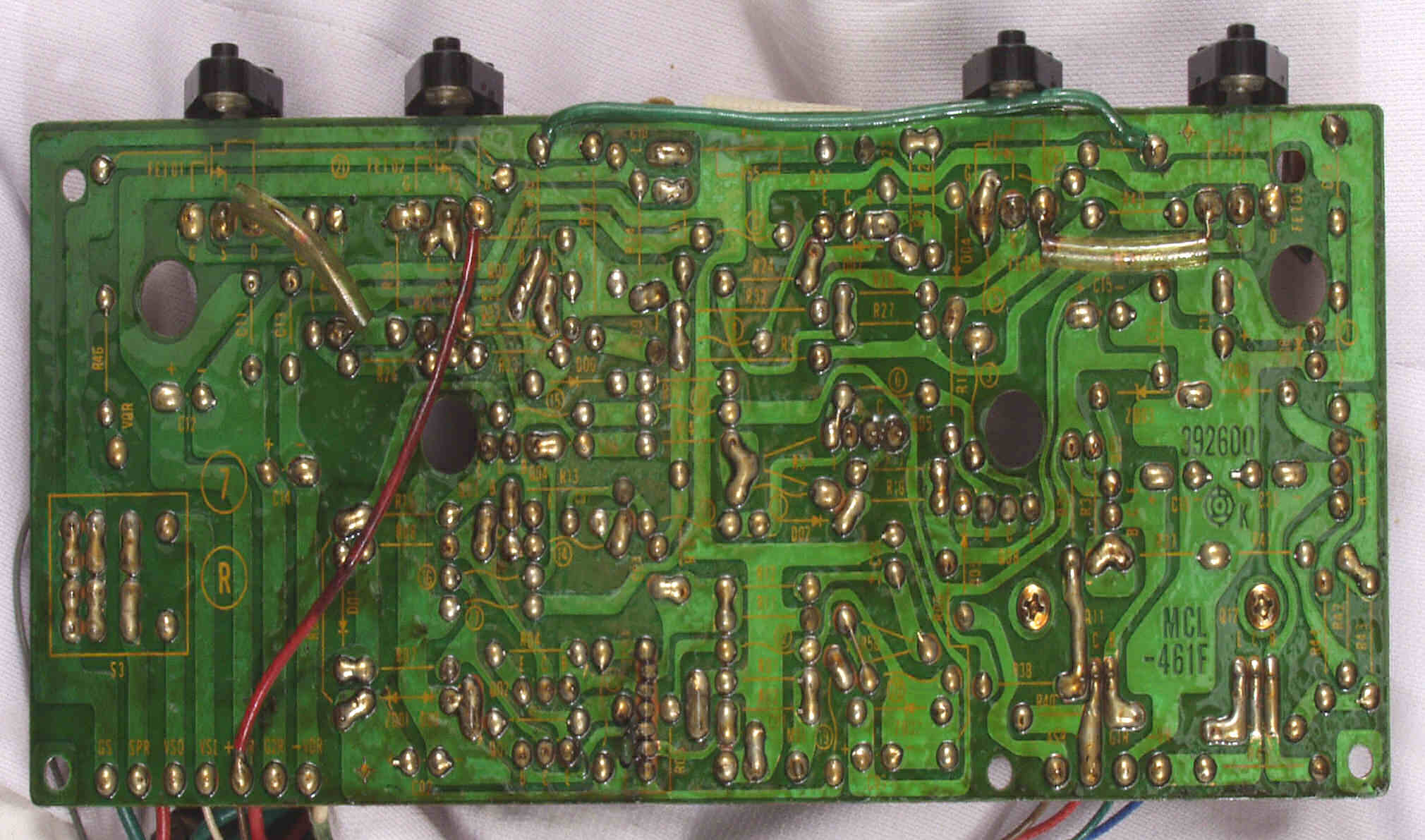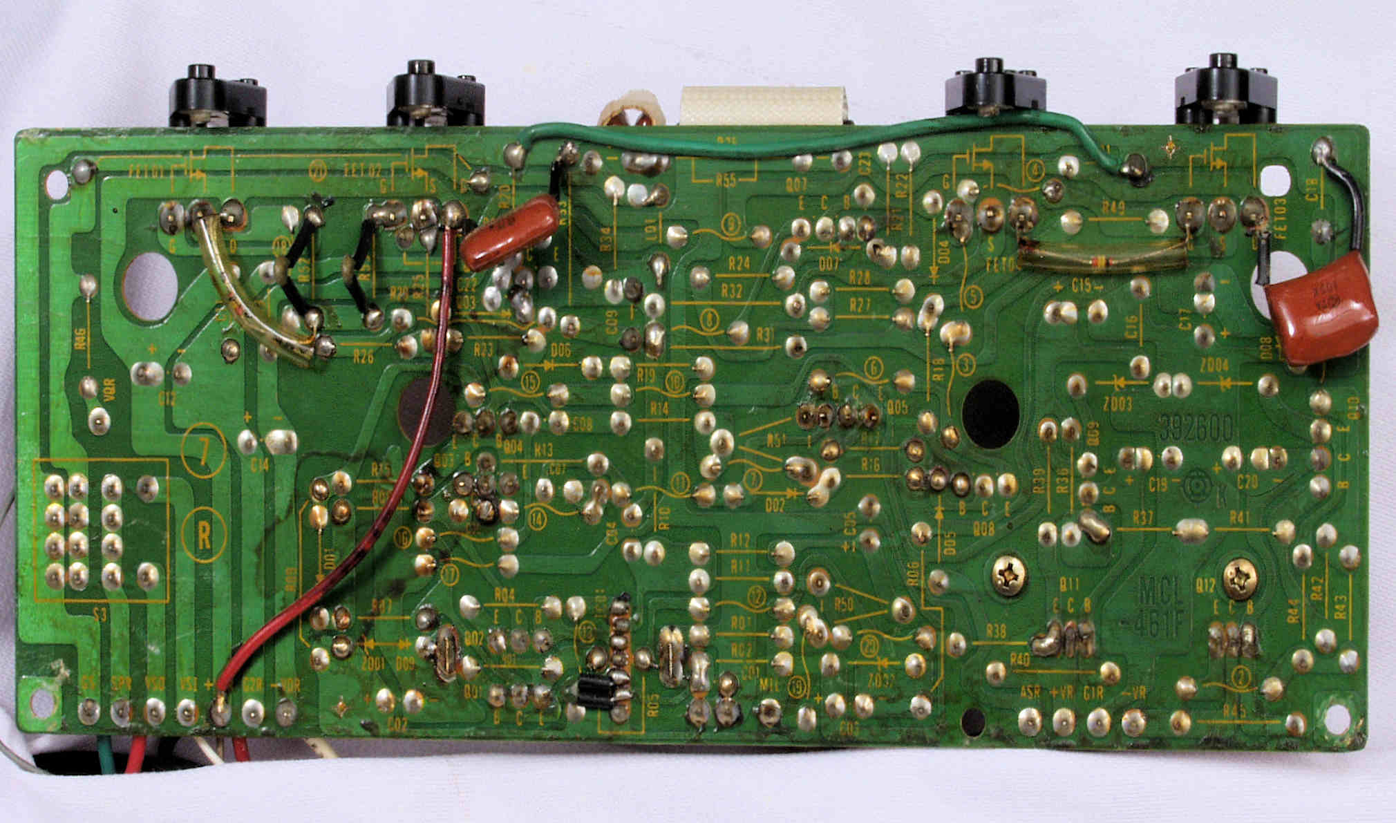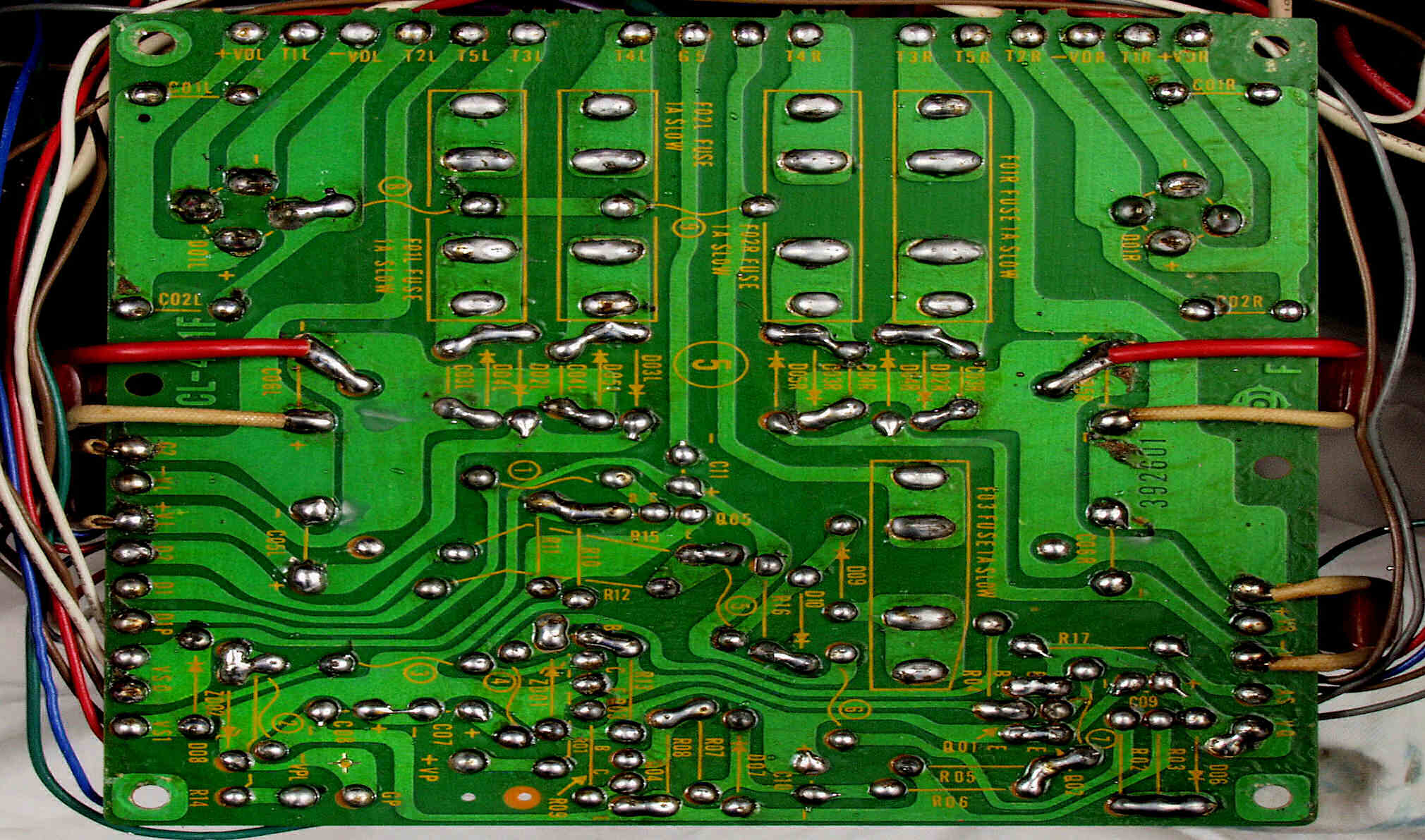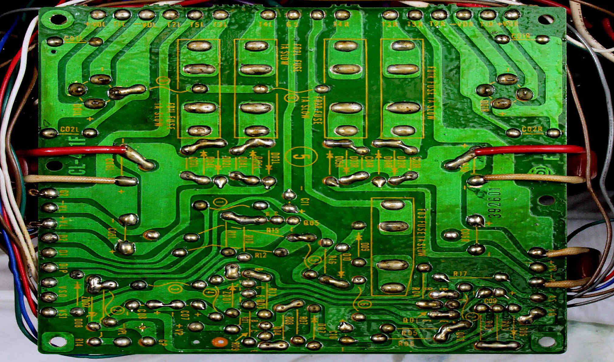 | C14. 修理(半田補正)後 R側ドライブ基板裏 半田を全部やり直す。 普通はこれで完成。 |