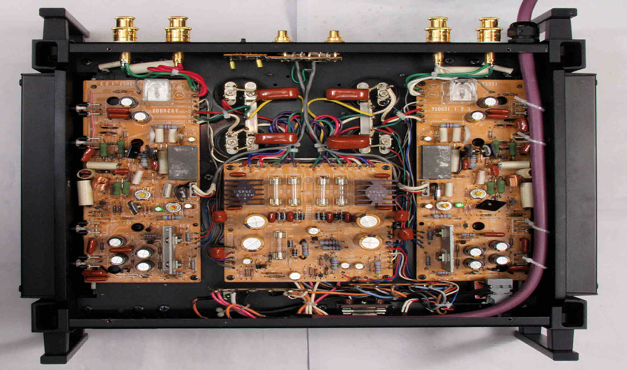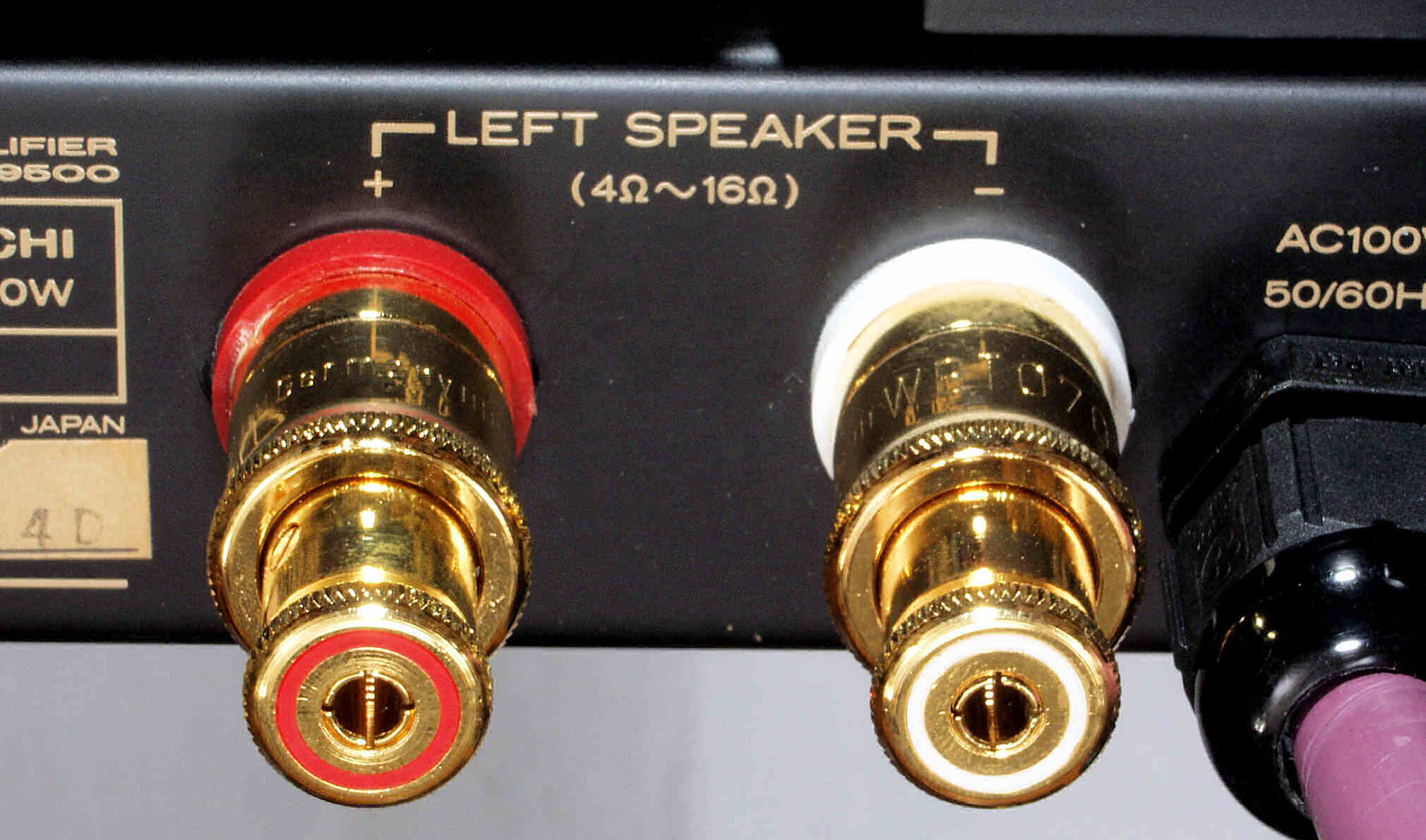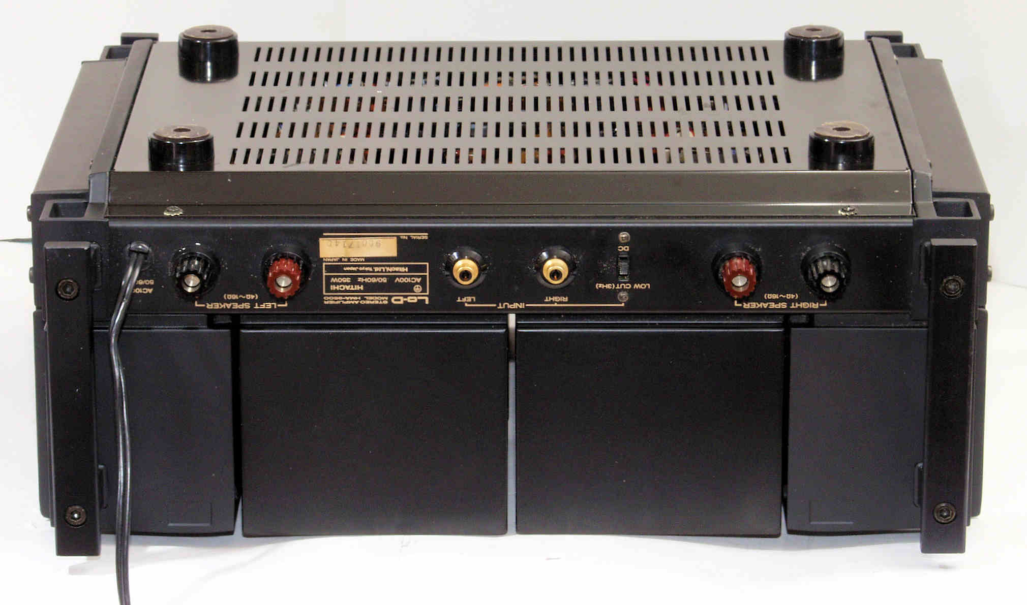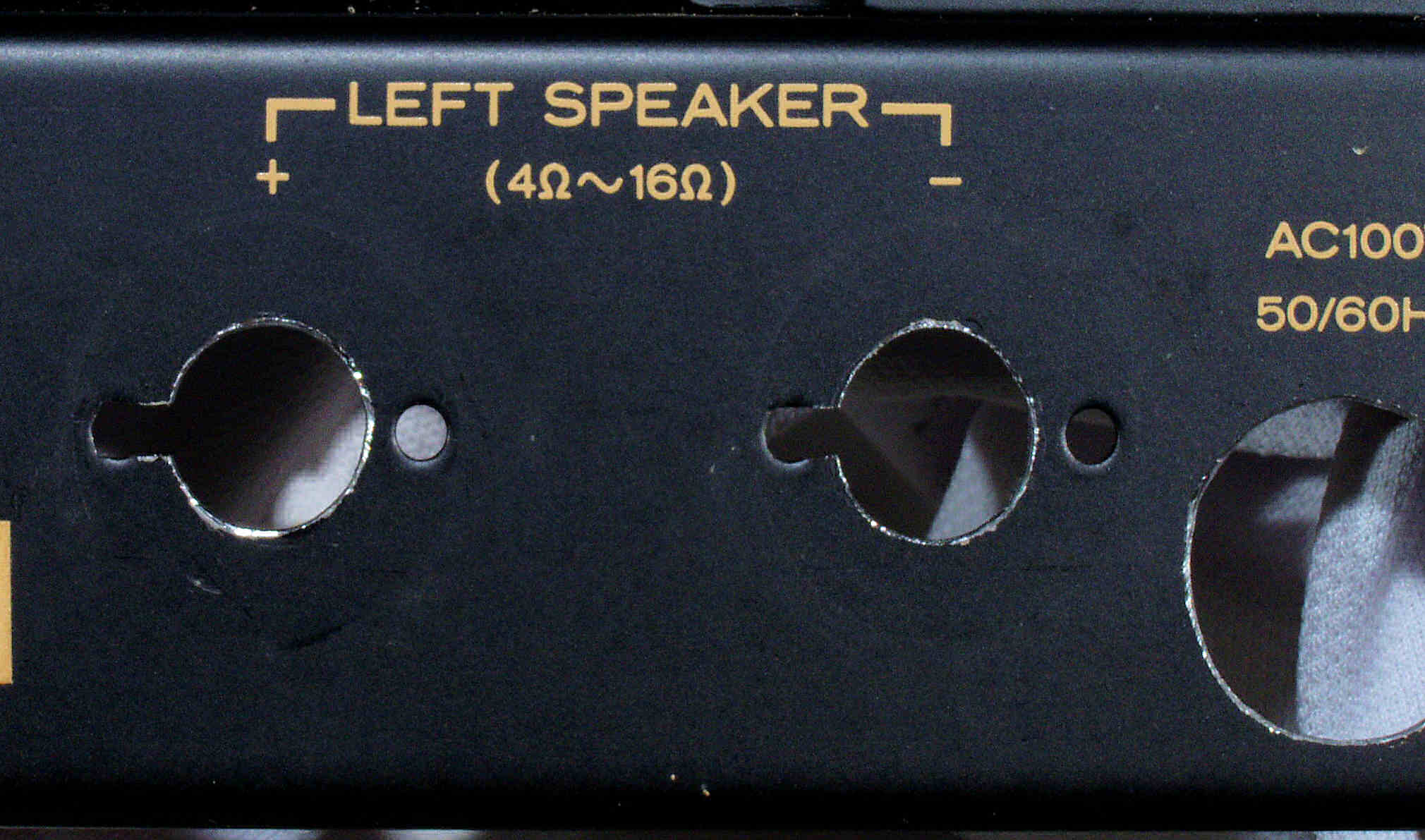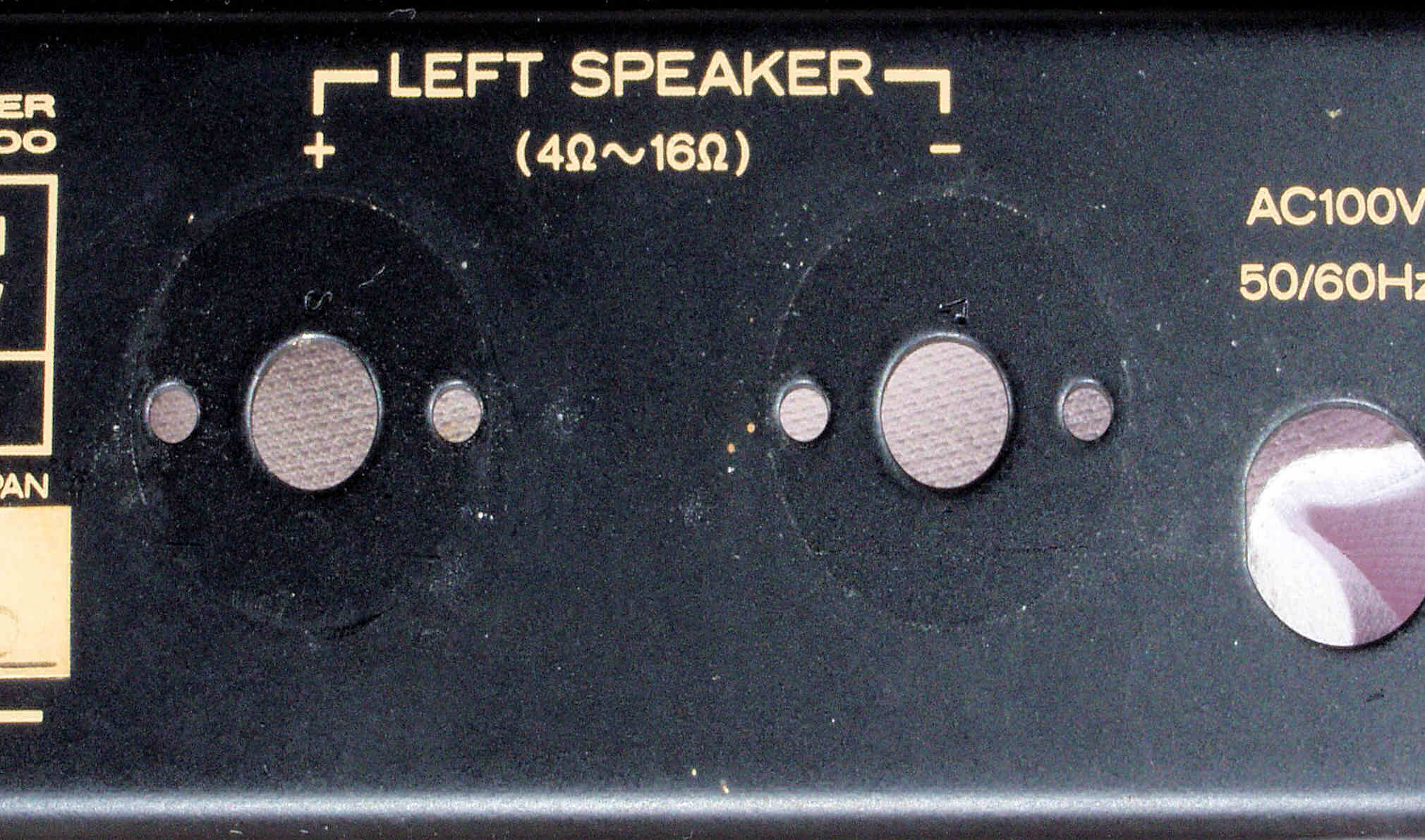 | 注意 このAMPはアースラインが浮いています。 AMPのシャーシにSPの線(アース側)や入力のRCAプラグのアース側も接続してはいけません。 RL−SPのアース線も接続(共通)してもいけません。 本機の様に、電源コードがシールド(アース)付きの場合、シールド(アース)は本体かプラグのどちらかで外す事。 又、DC(directconnection)入力が可能ですが、絶対に使用しないこと=ここ参照 |