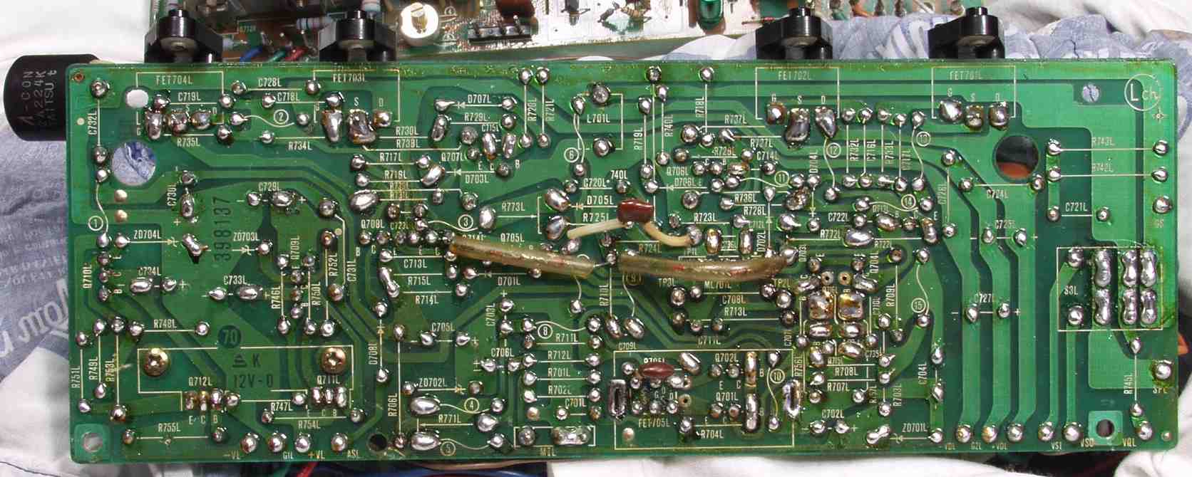 | C2D. 修理(半田補正)後 Lドライブ基板裏 半田を全部やり直す 普通はこれで完成 |